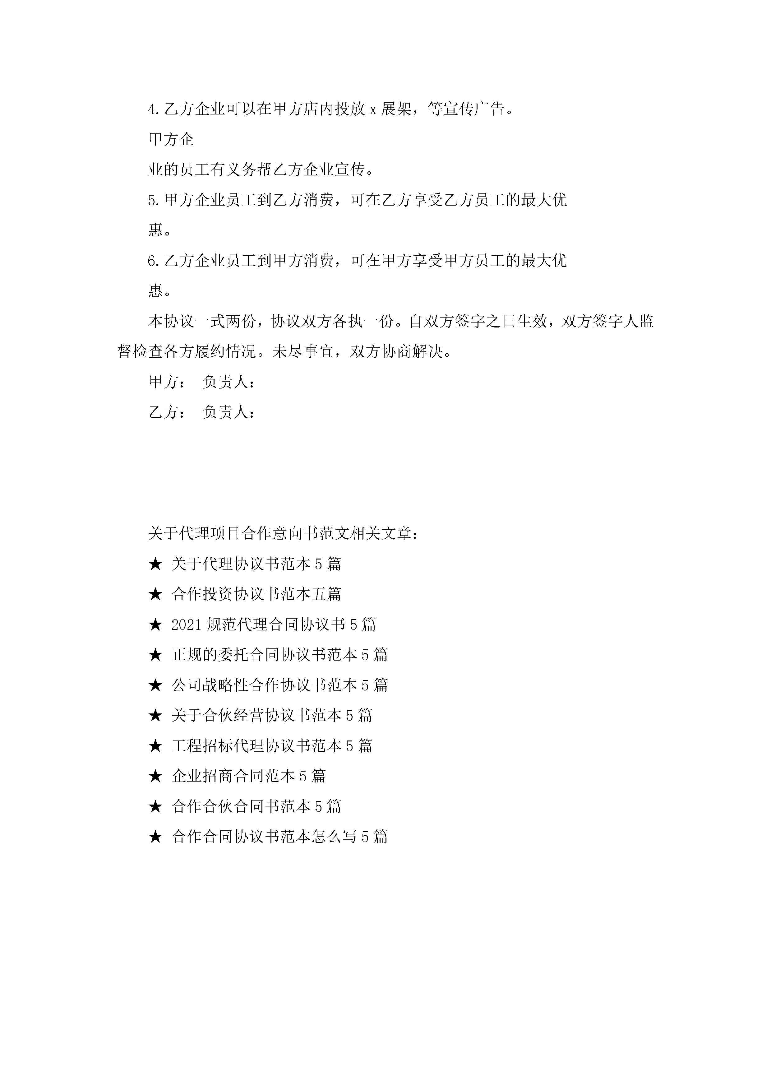 关于代理项目合作意向书范文5篇jugei3月22日 16:23发布关注315 关于代理项目合作意向书范文5篇此内容为付费资源,请付费后查看¥10.9 单篇文档限时特惠¥15个人会员开通企业会员开通立即下载无需登陆!可直接快捷下载单个模板付费资源© 版权声明THE ENDWord模板# 实用文档# 实用模板# 信函模板# 意向书 如有问题,可点击最底部“联系我们”联系客服 分享QQ空间微博QQ好友海报分享复制链接收藏