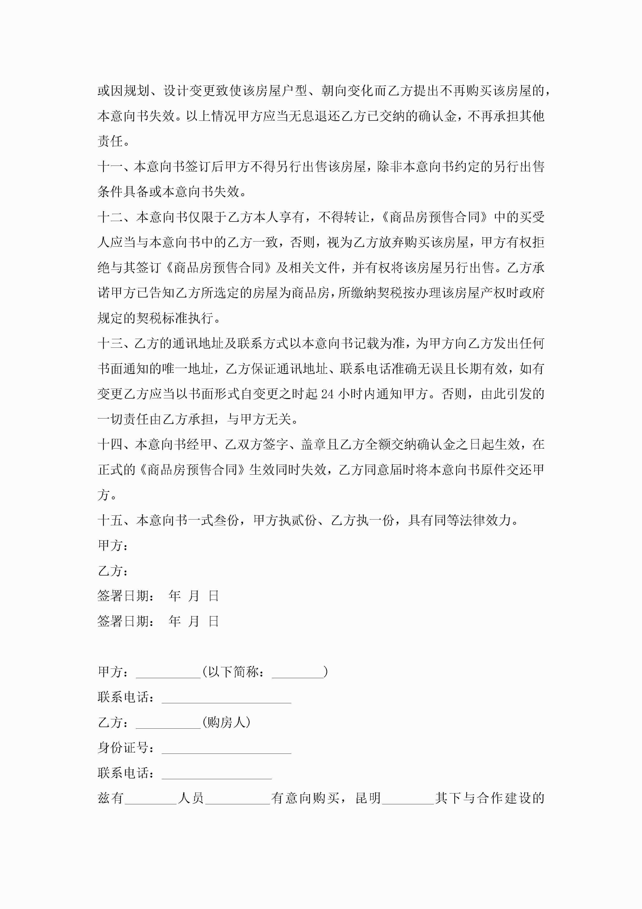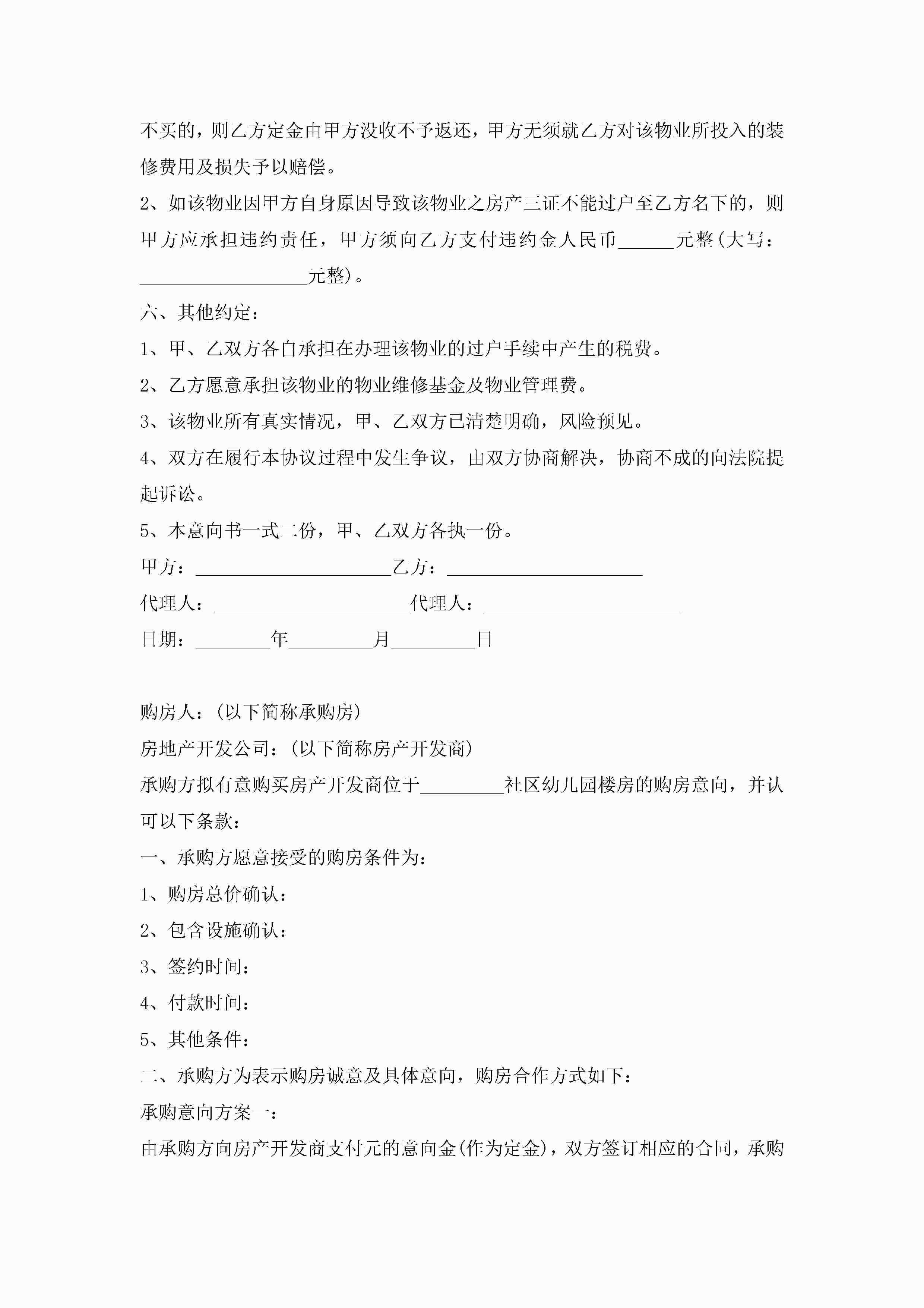 买房意向书模板大全5篇jugei3月22日 16:23发布关注215 买房意向书模板大全5篇此内容为付费资源,请付费后查看¥10.9 单篇文档限时特惠¥15个人会员开通企业会员开通立即下载无需登陆!可直接快捷下载单个模板付费资源© 版权声明THE ENDWord模板# 实用文档# 实用模板# 信函模板# 意向书 如有问题,可点击最底部“联系我们”联系客服 分享QQ空间微博QQ好友海报分享复制链接收藏