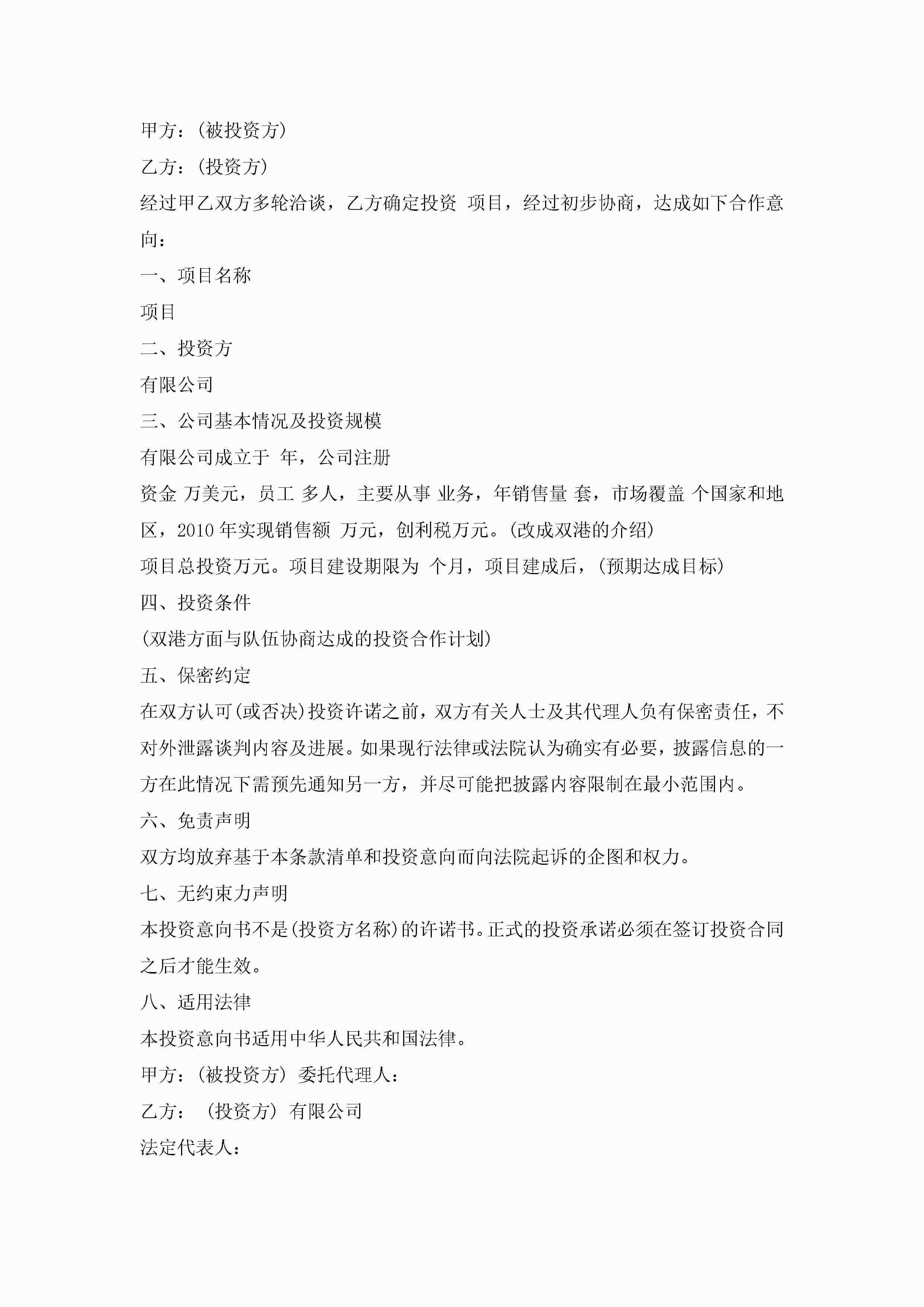项目投资意向书范文5篇jugei3月22日 16:23发布关注330 项目投资意向书范文5篇此内容为付费资源,请付费后查看¥10.9 单篇文档限时特惠¥15个人会员开通企业会员开通立即下载无需登陆!可直接快捷下载单个模板付费资源© 版权声明THE ENDWord模板# 实用文档# 实用模板# 信函模板# 意向书 如有问题,可点击最底部“联系我们”联系客服 分享QQ空间微博QQ好友海报分享复制链接收藏