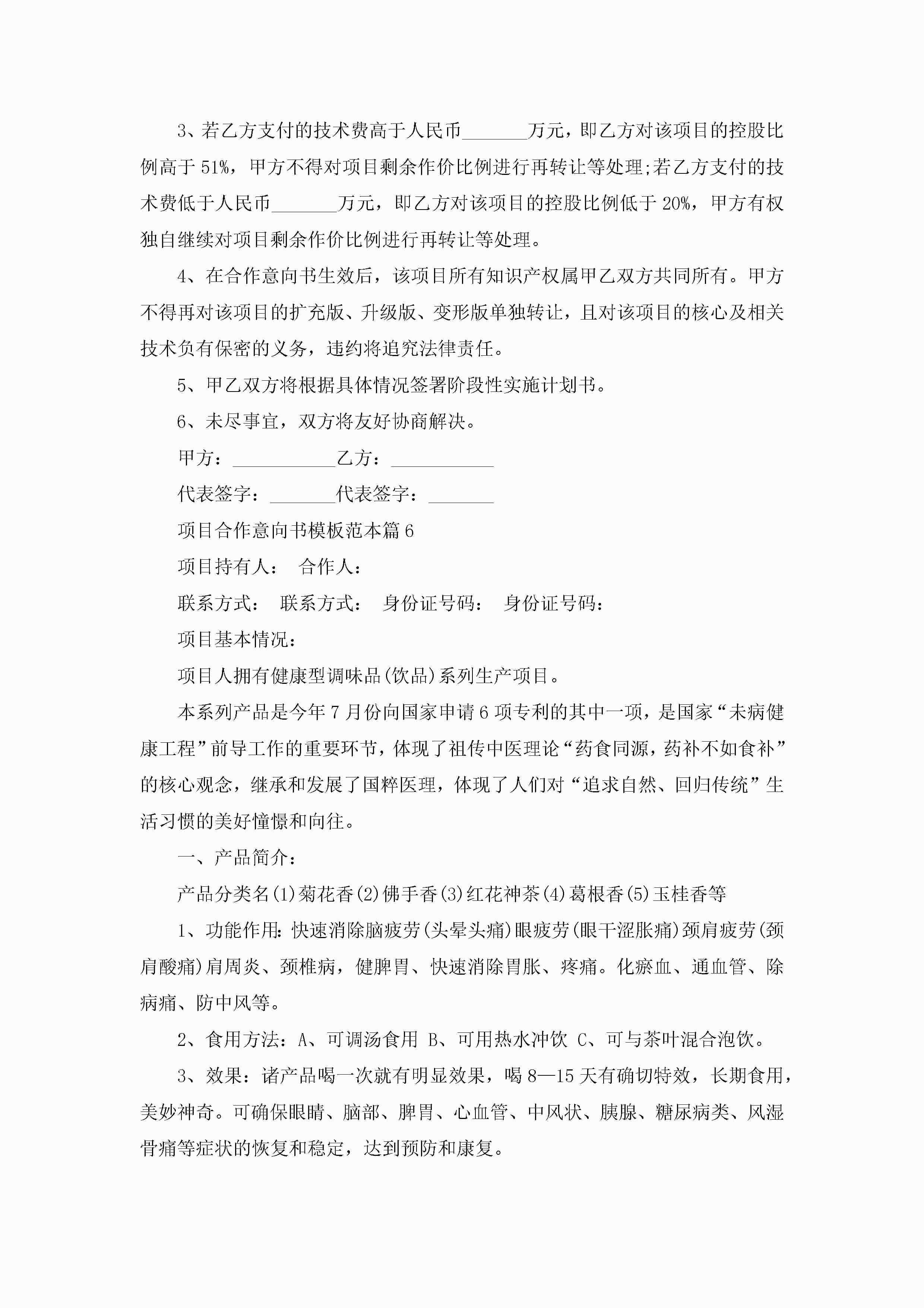 项目合作意向书模板范本(精选10篇)jugei3月22日 16:23发布关注467 项目合作意向书模板范本(精选10篇)此内容为付费资源,请付费后查看¥10.9 单篇文档限时特惠¥15个人会员开通企业会员开通立即下载无需登陆!可直接快捷下载单个模板付费资源© 版权声明THE ENDWord模板# 实用文档# 实用模板# 信函模板# 意向书 如有问题,可点击最底部“联系我们”联系客服 分享QQ空间微博QQ好友海报分享复制链接收藏