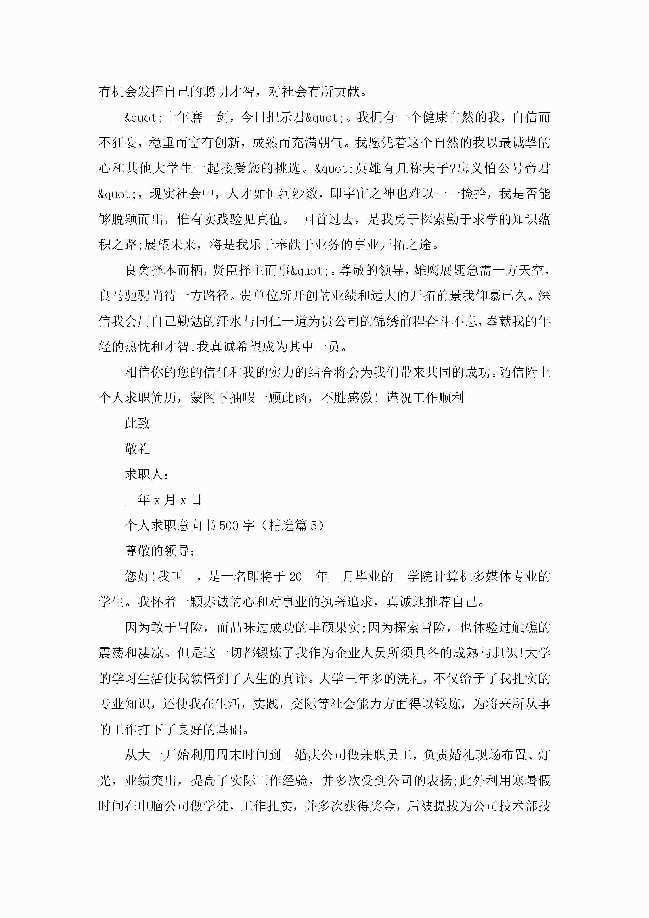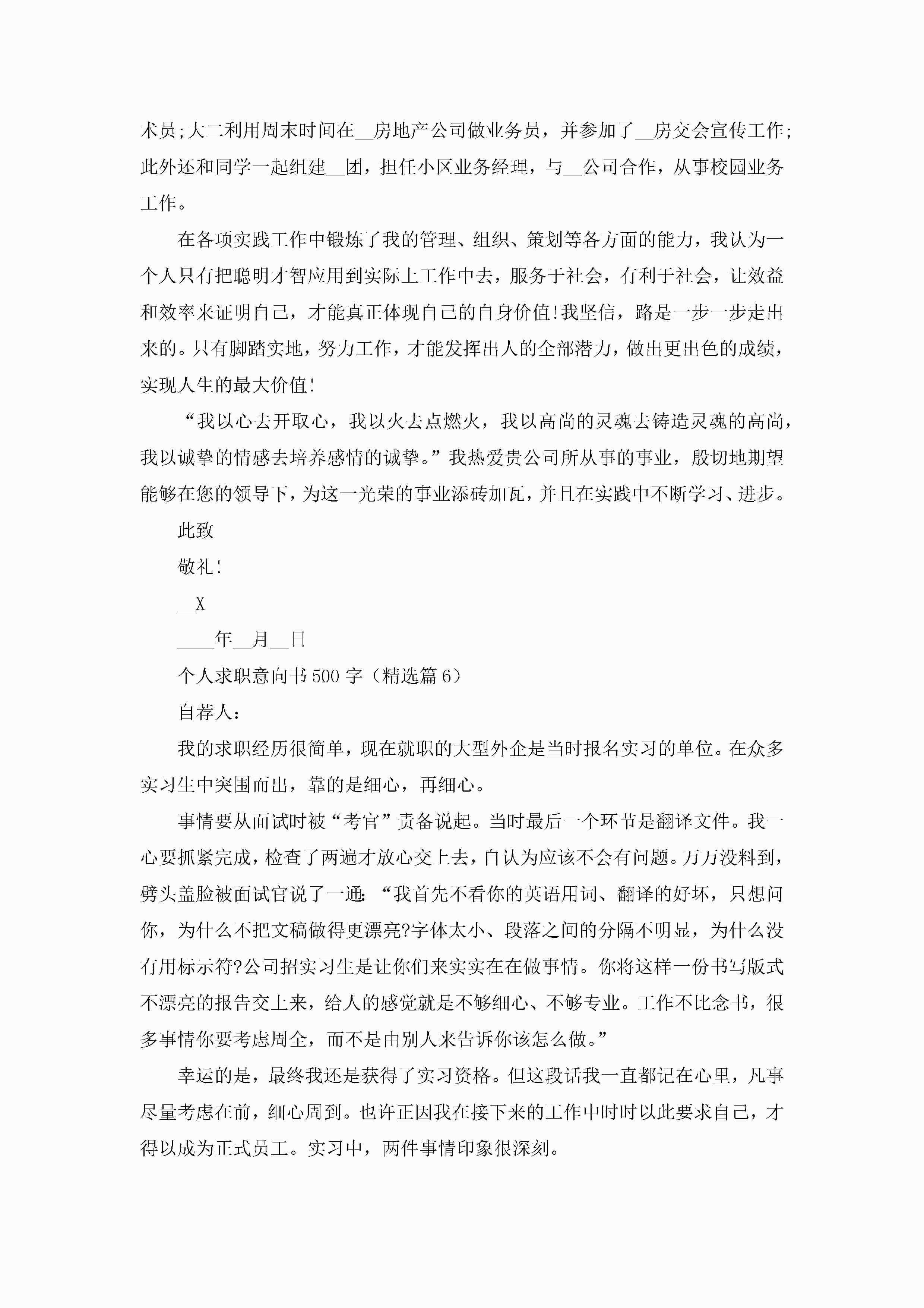 个人求职意向书范文500字【7篇】jugei3月22日 16:23发布关注394 个人求职意向书范文500字【7篇】此内容为付费资源,请付费后查看¥10.9 单篇文档限时特惠¥15个人会员开通企业会员开通立即下载无需登陆!可直接快捷下载单个模板付费资源© 版权声明THE ENDWord模板# 实用文档# 实用模板# 信函模板# 意向书 如有问题,可点击最底部“联系我们”联系客服 分享QQ空间微博QQ好友海报分享复制链接收藏
