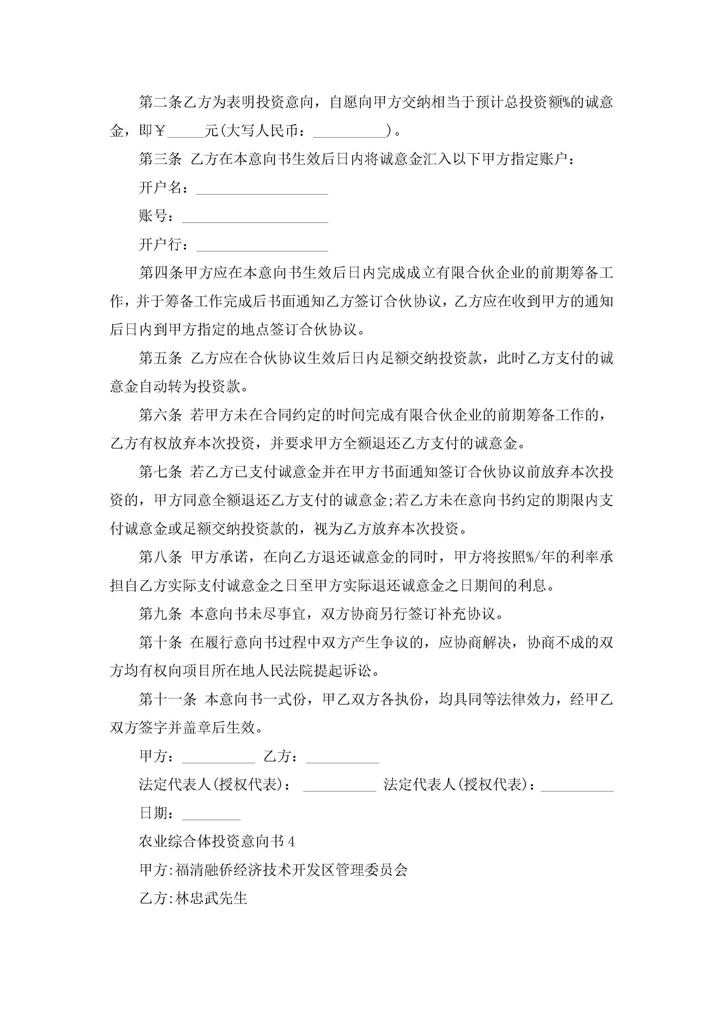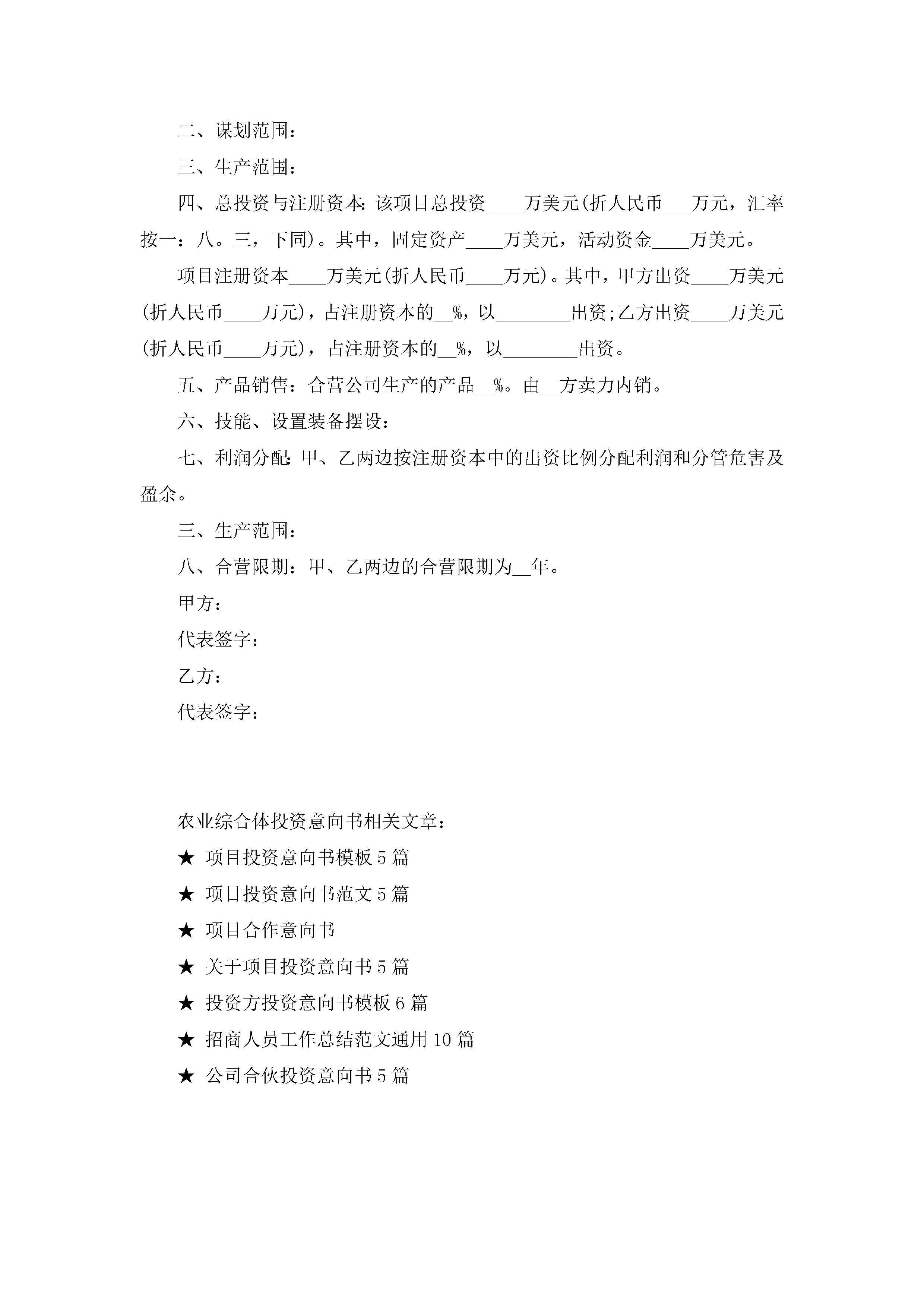 农业综合体投资意向书6篇jugei3月22日 16:23发布关注240 农业综合体投资意向书6篇此内容为付费资源,请付费后查看¥10.9 单篇文档限时特惠¥15个人会员开通企业会员开通立即下载无需登陆!可直接快捷下载单个模板付费资源© 版权声明THE ENDWord模板# 实用文档# 实用模板# 信函模板# 意向书 如有问题,可点击最底部“联系我们”联系客服 分享QQ空间微博QQ好友海报分享复制链接收藏