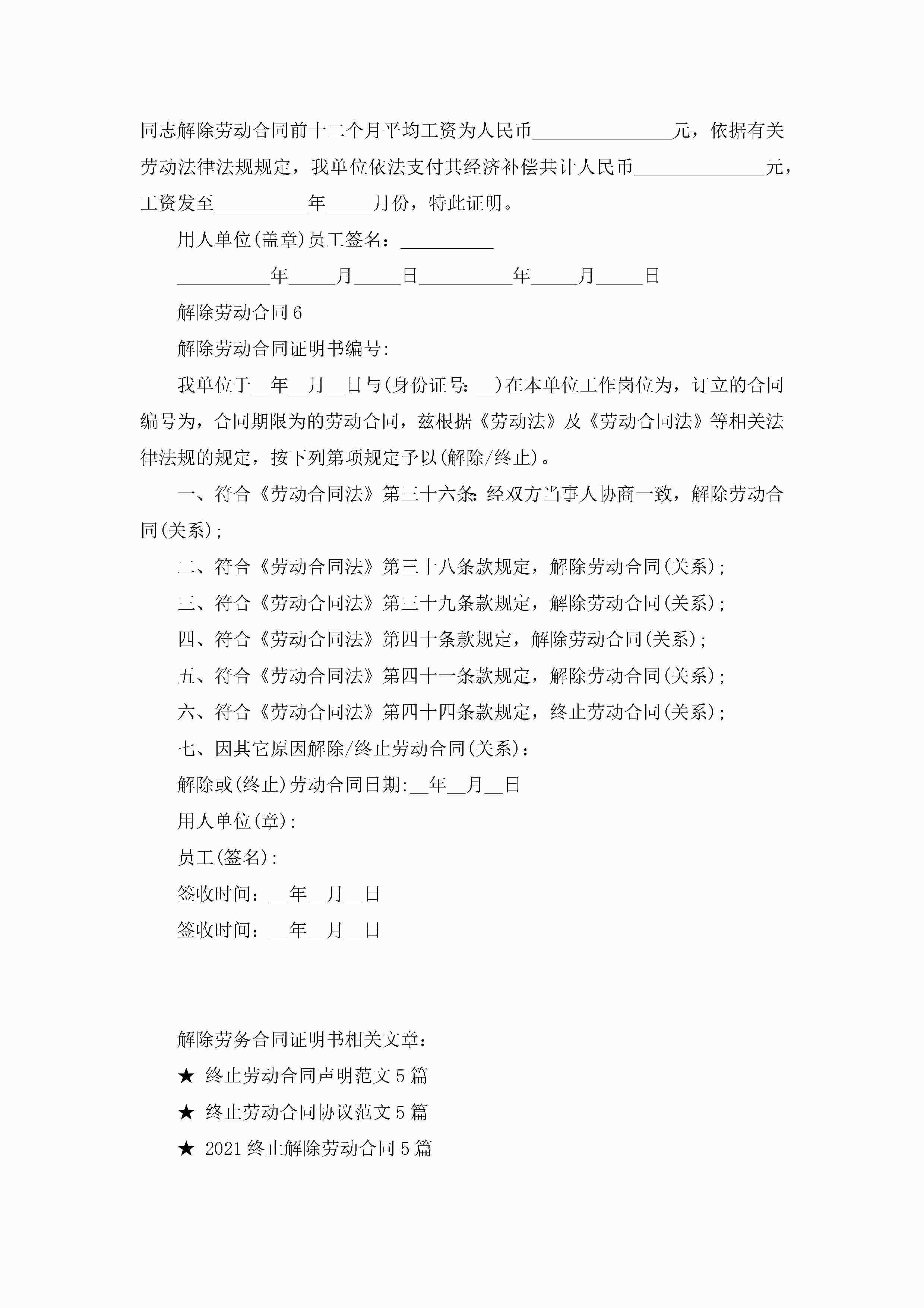 解除劳务合同证明书6篇(实用)jugei3月22日 16:23发布关注315 解除劳务合同证明书6篇(实用)此内容为付费资源,请付费后查看¥10.9 单篇文档限时特惠¥15个人会员开通企业会员开通立即下载无需登陆!可直接快捷下载单个模板付费资源© 版权声明THE ENDWord模板# 实用文档# 实用模板# 信函模板# 证明书 如有问题,可点击最底部“联系我们”联系客服 分享QQ空间微博QQ好友海报分享复制链接收藏