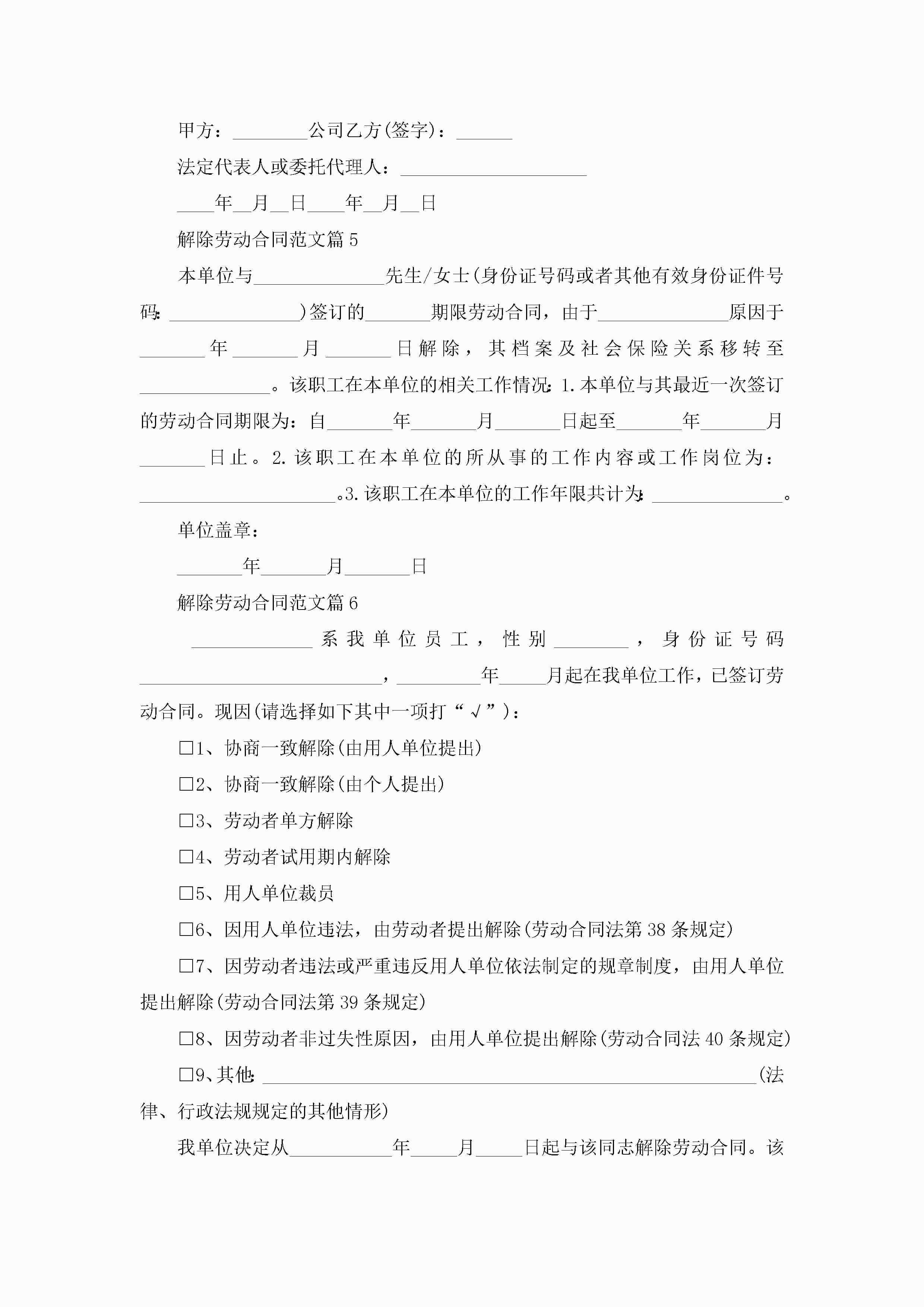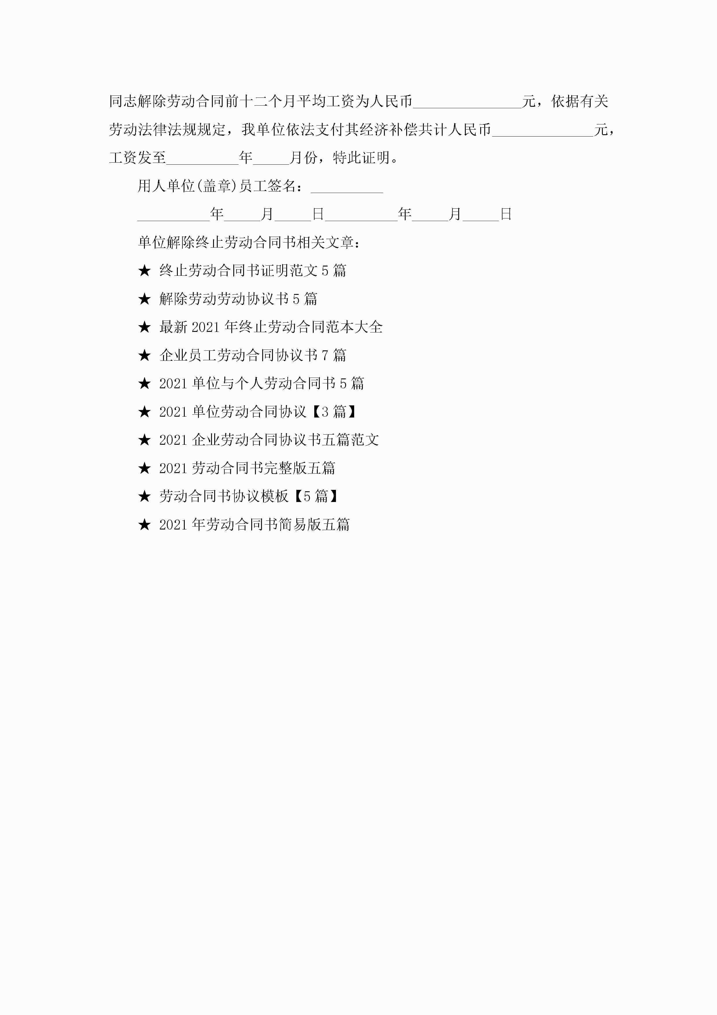 单位解除终止劳动合同书范本jugei3月22日 16:23发布关注313 单位解除终止劳动合同书范本此内容为付费资源,请付费后查看¥10.9 单篇文档限时特惠¥15个人会员开通企业会员开通立即下载无需登陆!可直接快捷下载单个模板付费资源© 版权声明THE ENDWord模板# 实用文档# 实用模板# 信函模板# 证明书 如有问题,可点击最底部“联系我们”联系客服 分享QQ空间微博QQ好友海报分享复制链接收藏
