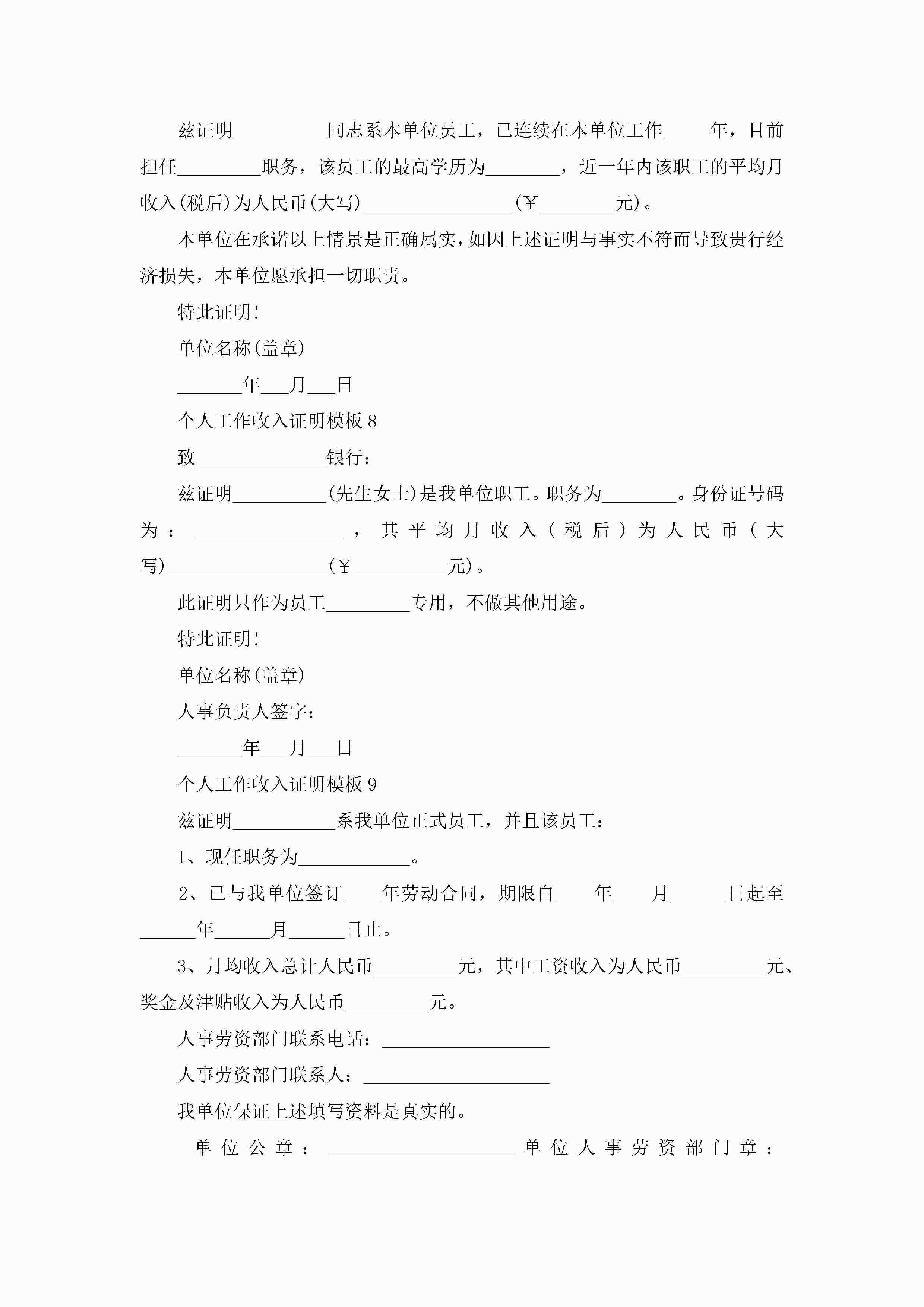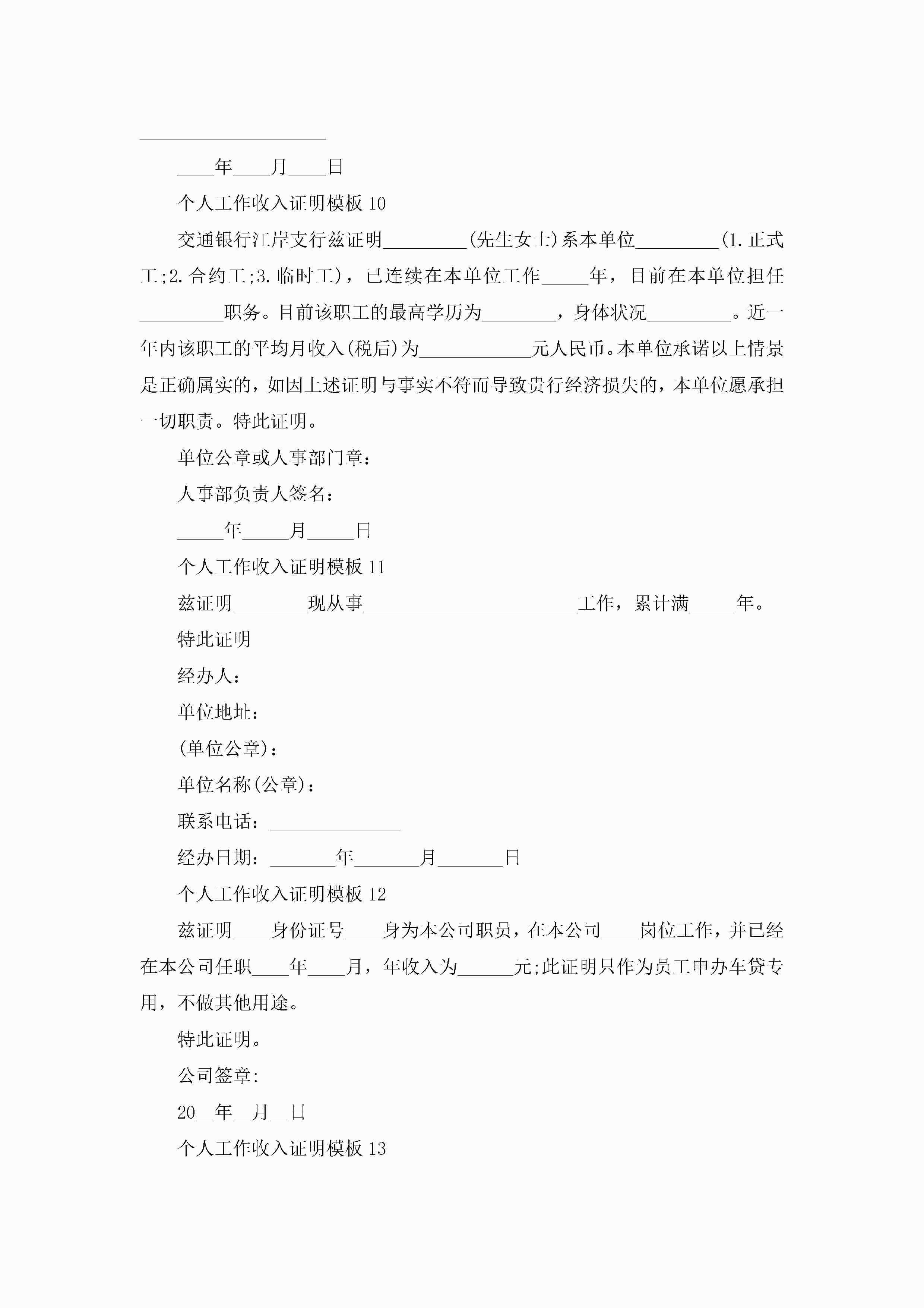 个人工作收入证明模板13篇jugei3月22日 16:23发布关注198 个人工作收入证明模板13篇此内容为付费资源,请付费后查看¥10.9 单篇文档限时特惠¥15个人会员开通企业会员开通立即下载无需登陆!可直接快捷下载单个模板付费资源© 版权声明THE ENDWord模板# 实用文档# 实用模板# 信函模板# 证明书 如有问题,可点击最底部“联系我们”联系客服 分享QQ空间微博QQ好友海报分享复制链接收藏