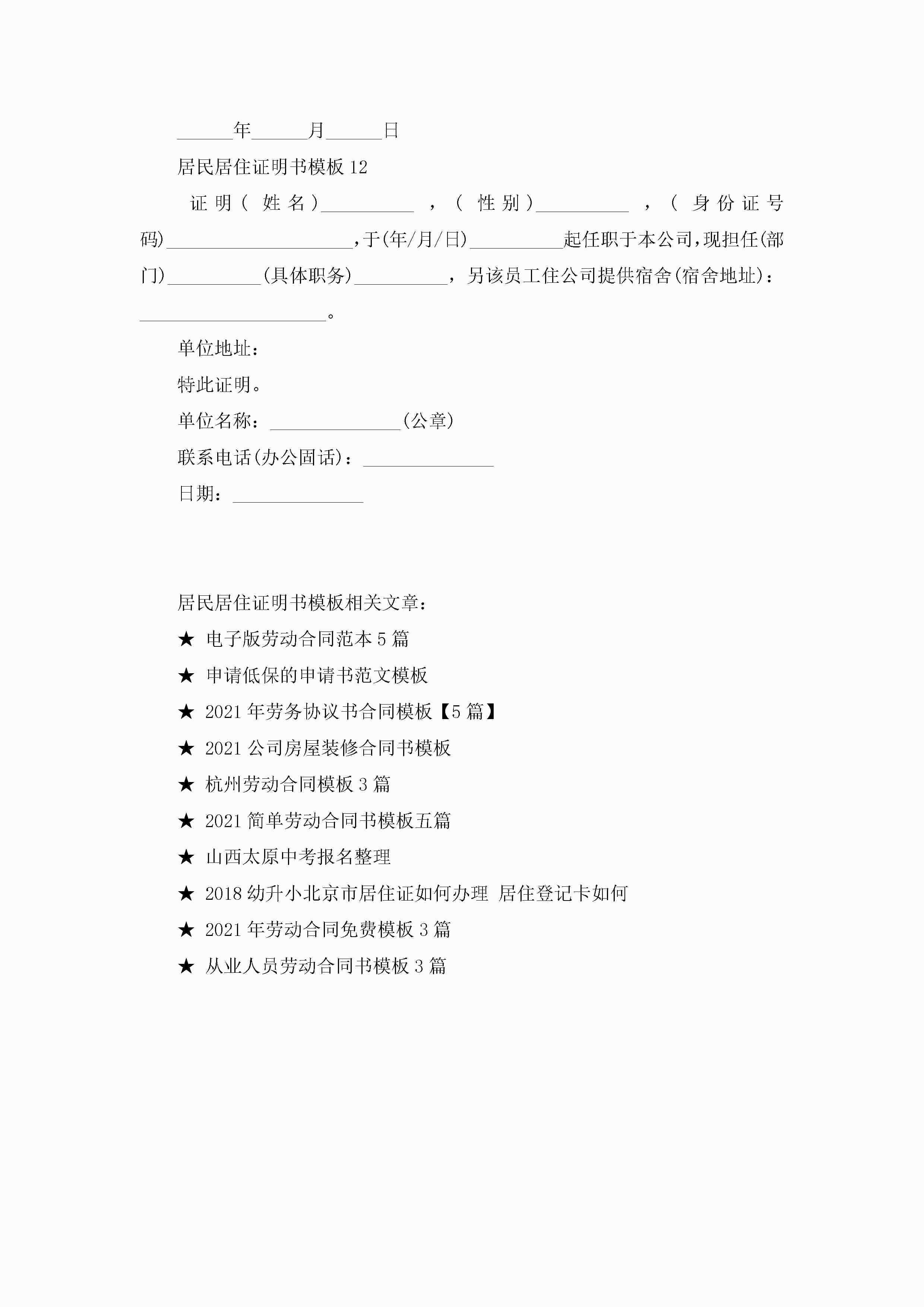 居民居住证明书模板9篇jugei3月22日 16:23发布关注212 居民居住证明书模板9篇此内容为付费资源,请付费后查看¥10.9 单篇文档限时特惠¥15个人会员开通企业会员开通立即下载无需登陆!可直接快捷下载单个模板付费资源© 版权声明THE ENDWord模板# 实用文档# 实用模板# 信函模板# 证明书 如有问题,可点击最底部“联系我们”联系客服 分享QQ空间微博QQ好友海报分享复制链接收藏