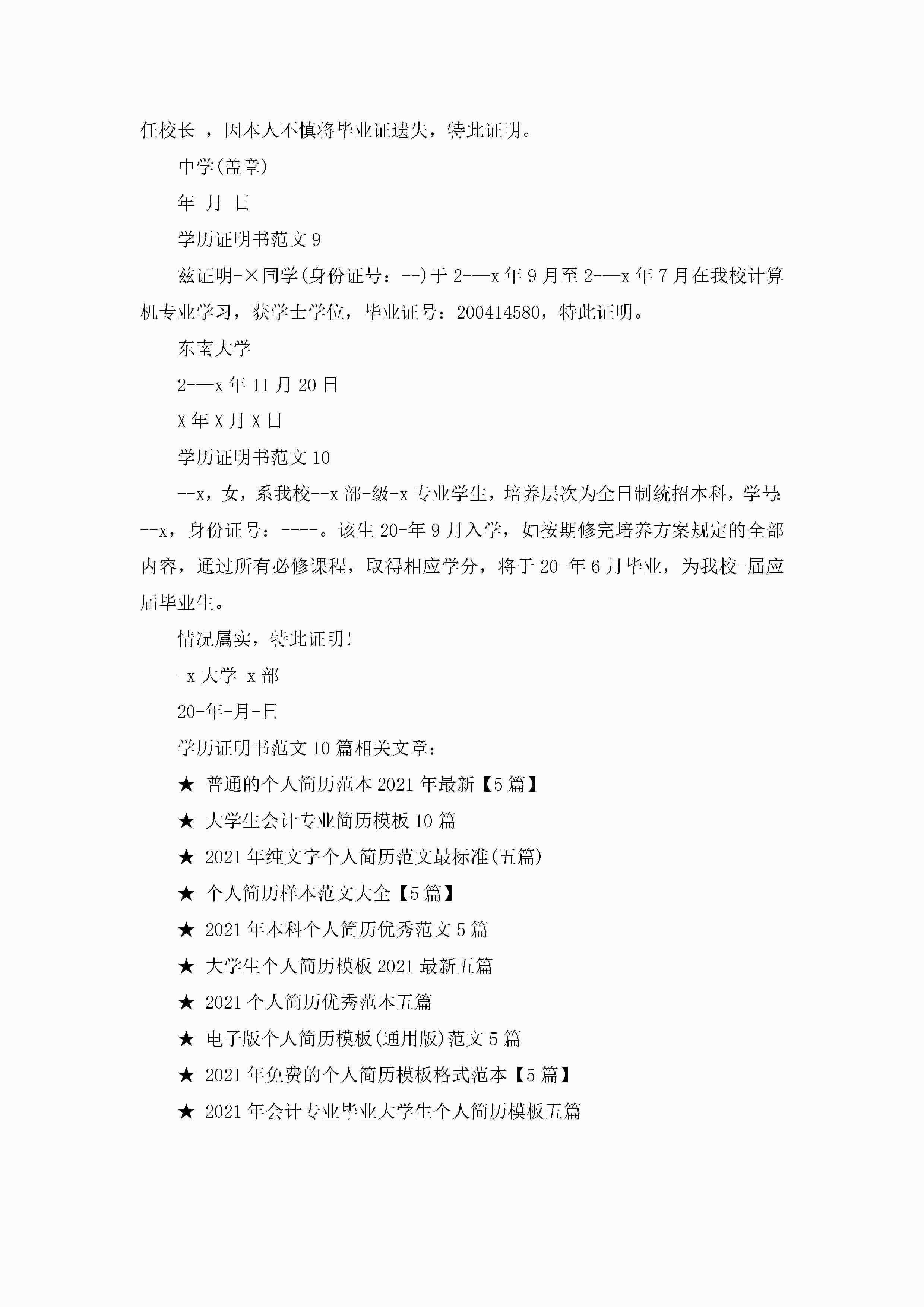 学历证明书范文模板10篇jugei3月22日 16:23发布关注248 学历证明书范文模板10篇此内容为付费资源,请付费后查看¥10.9 单篇文档限时特惠¥15个人会员开通企业会员开通立即下载无需登陆!可直接快捷下载单个模板付费资源© 版权声明THE ENDWord模板# 实用文档# 实用模板# 信函模板# 证明书 如有问题,可点击最底部“联系我们”联系客服 分享QQ空间微博QQ好友海报分享复制链接收藏