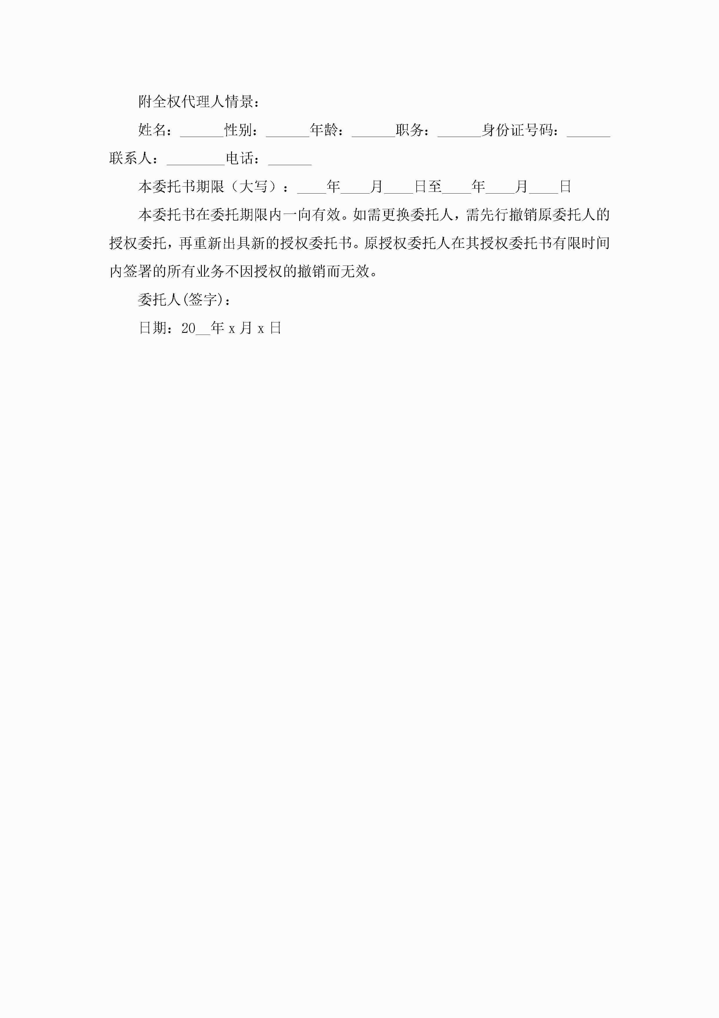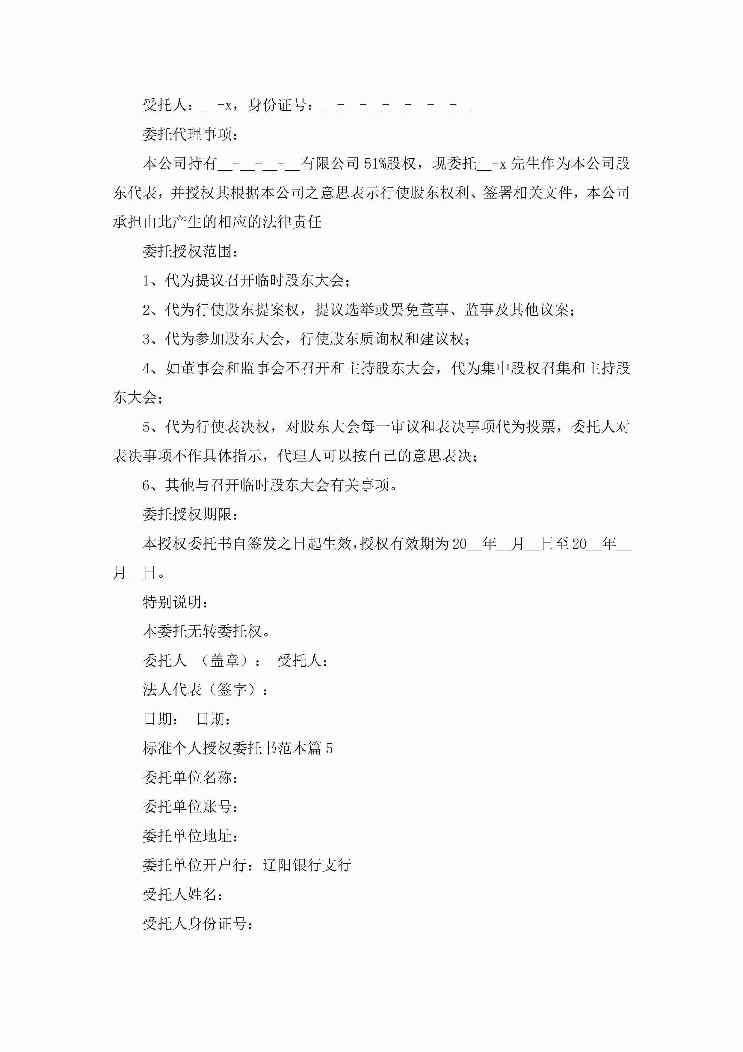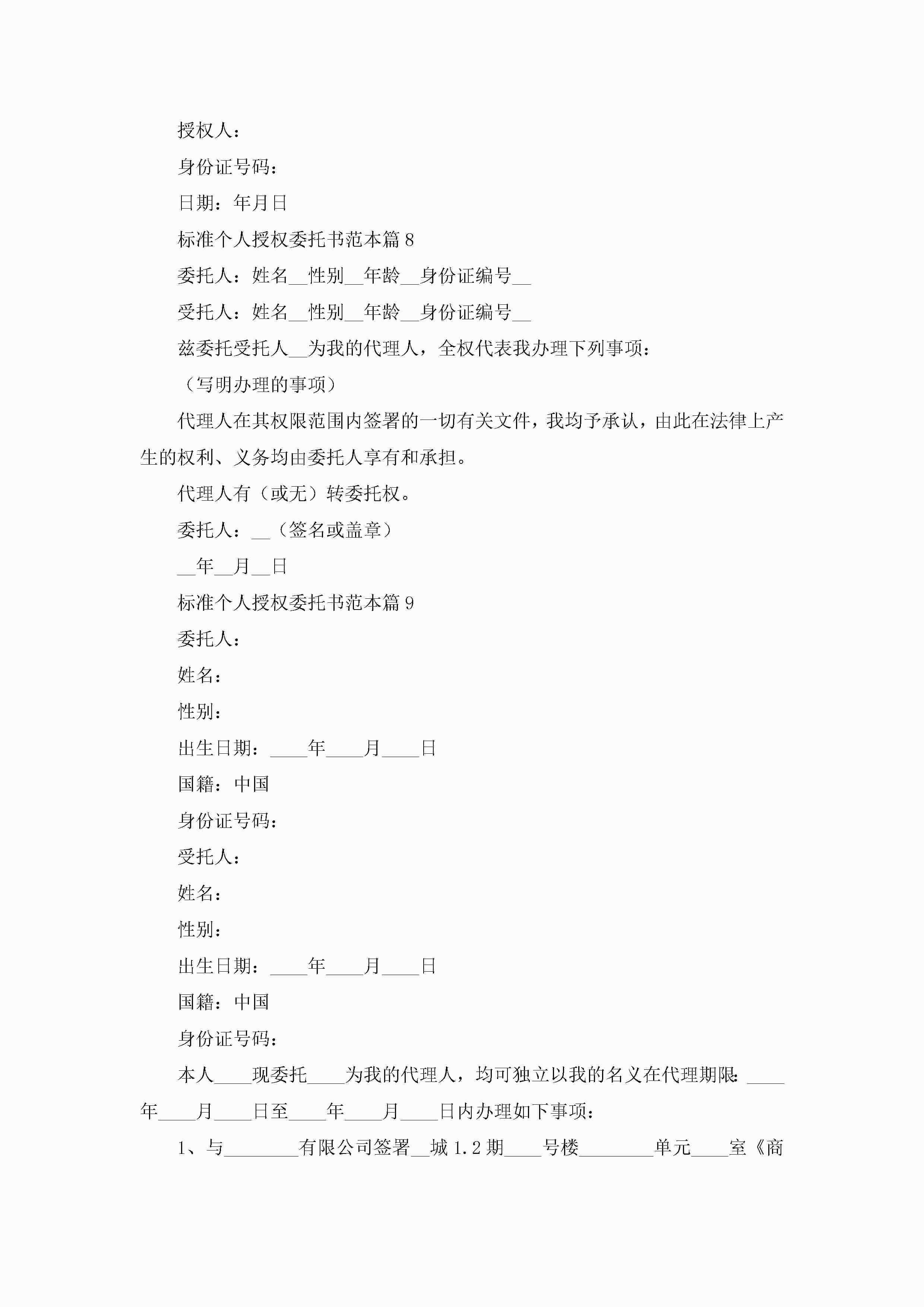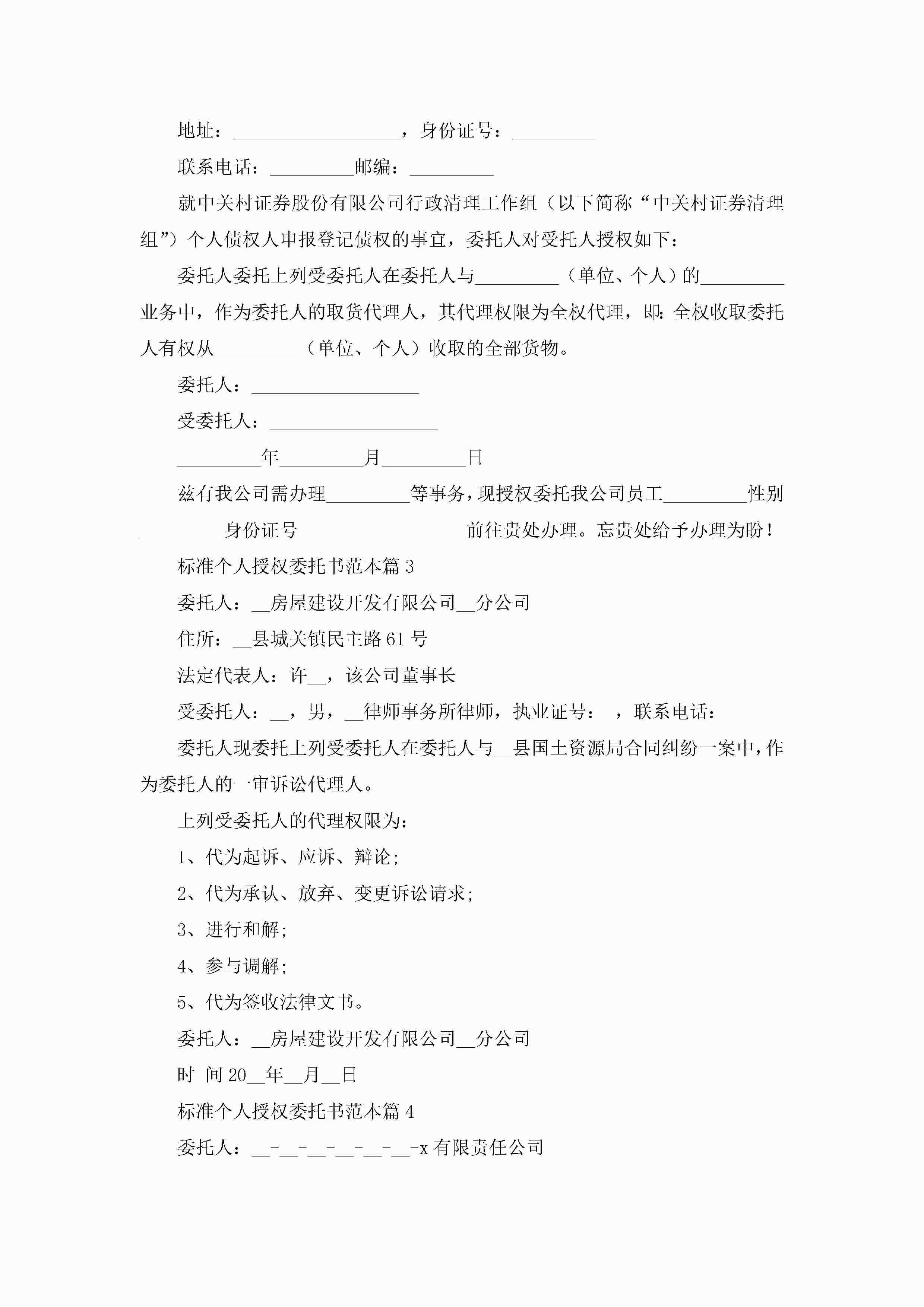 标准个人授权委托书范本(精选10篇)jugei3月22日 16:23发布关注219 标准个人授权委托书范本(精选10篇)此内容为付费资源,请付费后查看¥10.9 单篇文档限时特惠¥15个人会员开通企业会员开通立即下载无需登陆!可直接快捷下载单个模板付费资源© 版权声明THE ENDWord模板# 实用文档# 实用模板# 信函模板# 委托书 如有问题,可点击最底部“联系我们”联系客服 分享QQ空间微博QQ好友海报分享复制链接收藏