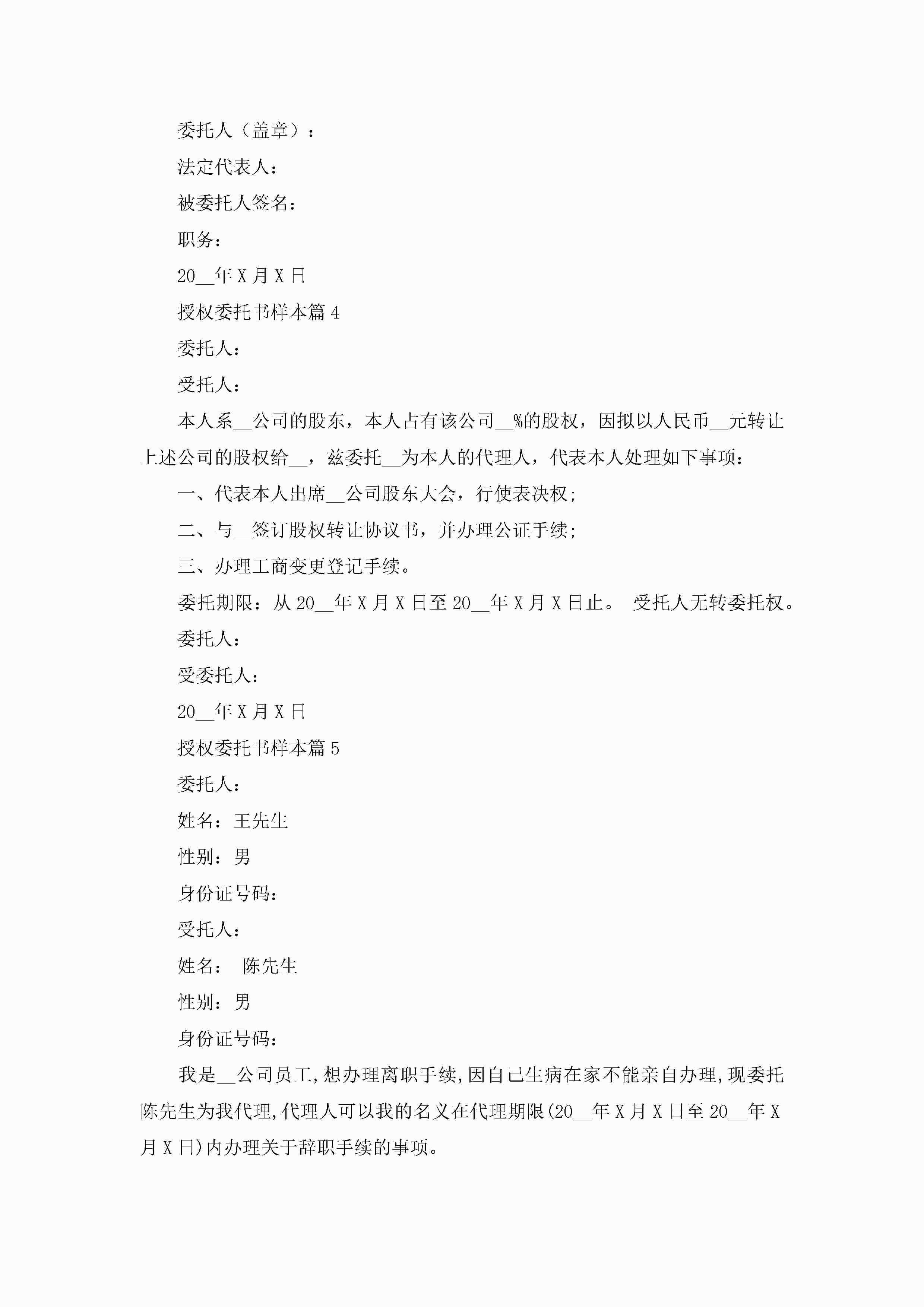 授权委托书样本(精选10篇)jugei3月22日 16:23发布关注276 授权委托书样本(精选10篇)此内容为付费资源,请付费后查看¥10.9 单篇文档限时特惠¥15个人会员开通企业会员开通立即下载无需登陆!可直接快捷下载单个模板付费资源© 版权声明THE ENDWord模板# 实用文档# 实用模板# 信函模板# 委托书 如有问题,可点击最底部“联系我们”联系客服 分享QQ空间微博QQ好友海报分享复制链接收藏