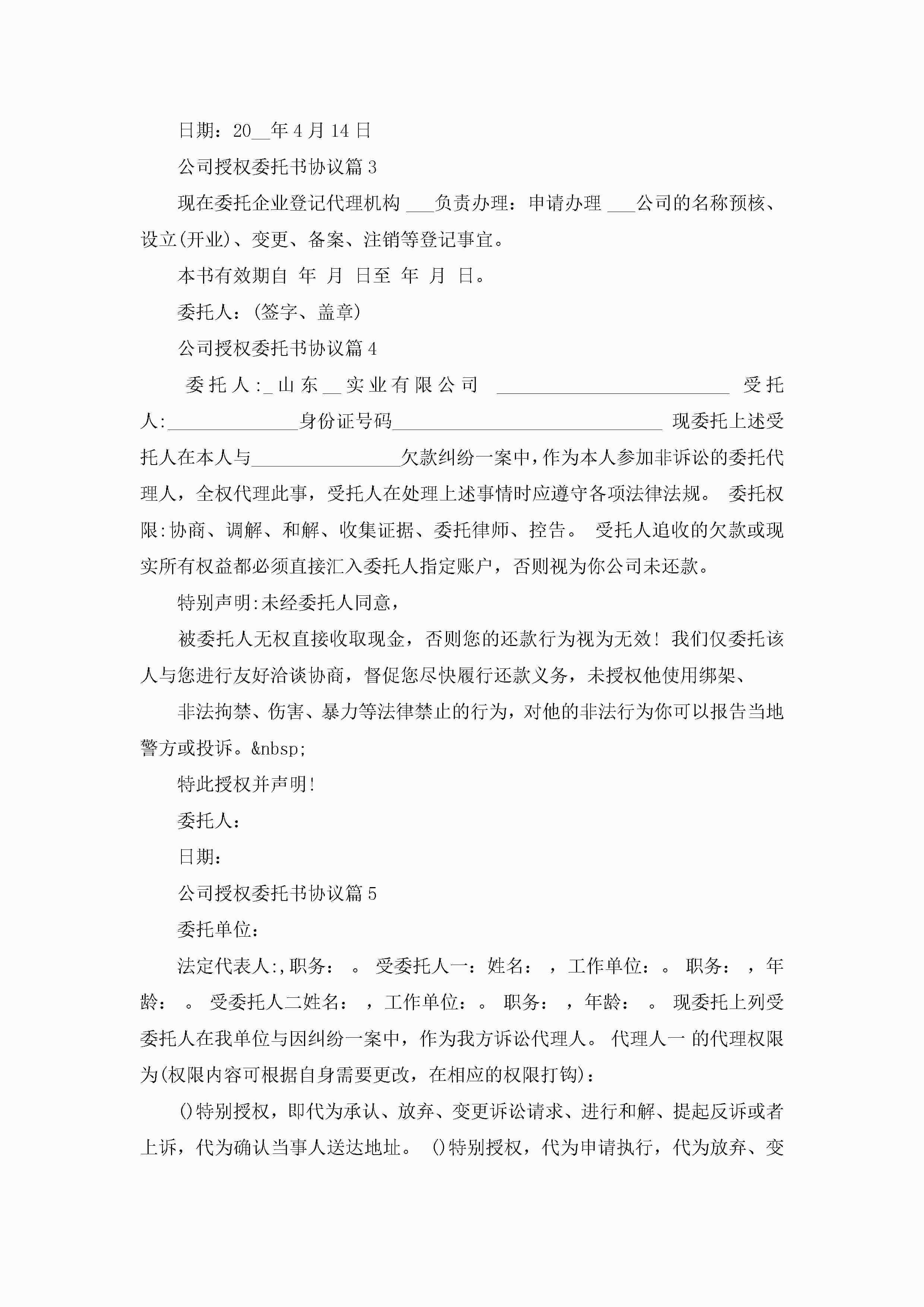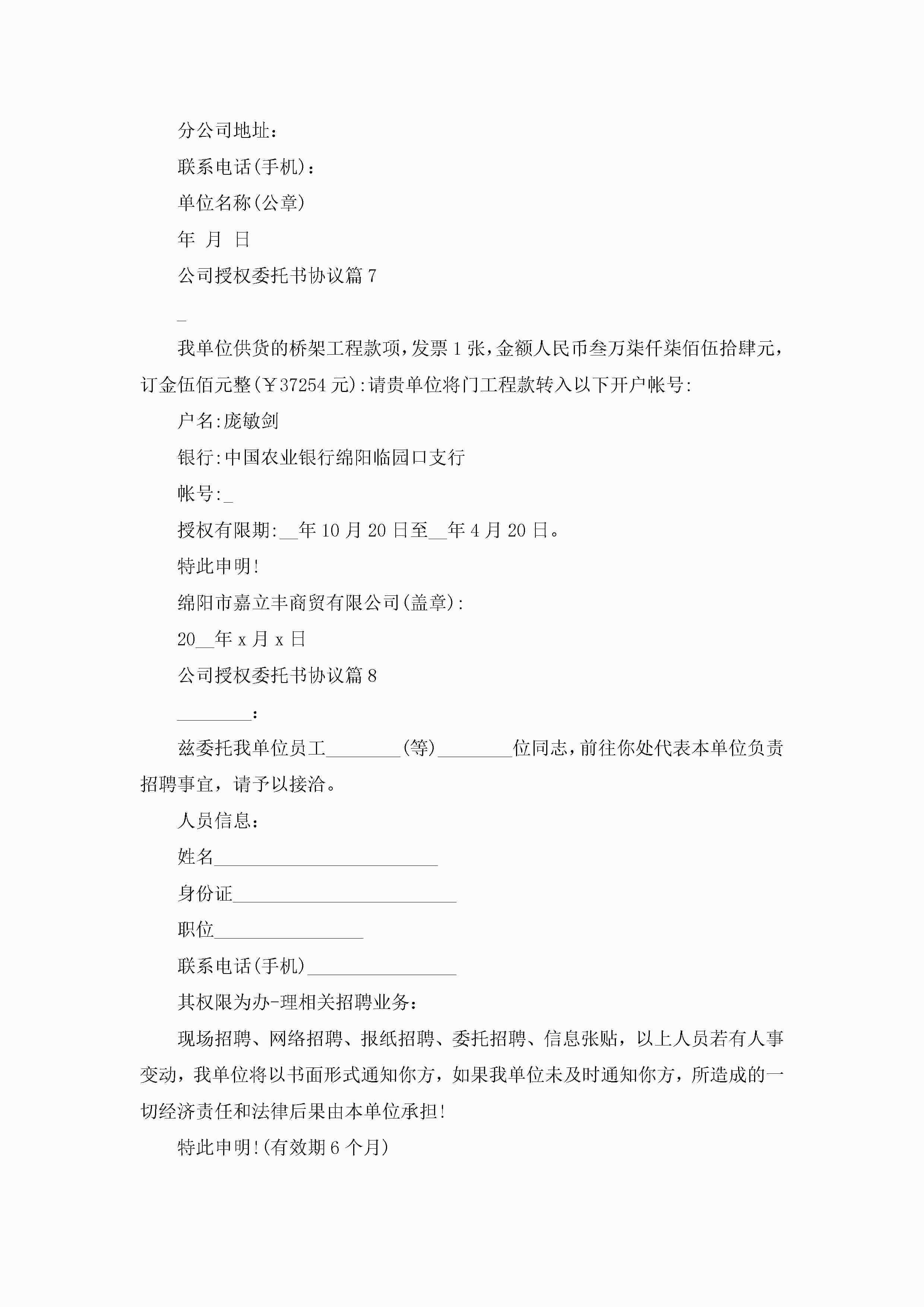 公司授权委托书协议范文10篇jugei3月22日 16:23发布关注394 公司授权委托书协议范文10篇此内容为付费资源,请付费后查看¥10.9 单篇文档限时特惠¥15个人会员开通企业会员开通立即下载无需登陆!可直接快捷下载单个模板付费资源© 版权声明THE ENDWord模板# 实用文档# 信函模板# 委托书# 公司授权委托书协议10篇 如有问题,可点击最底部“联系我们”联系客服 分享QQ空间微博QQ好友海报分享复制链接收藏