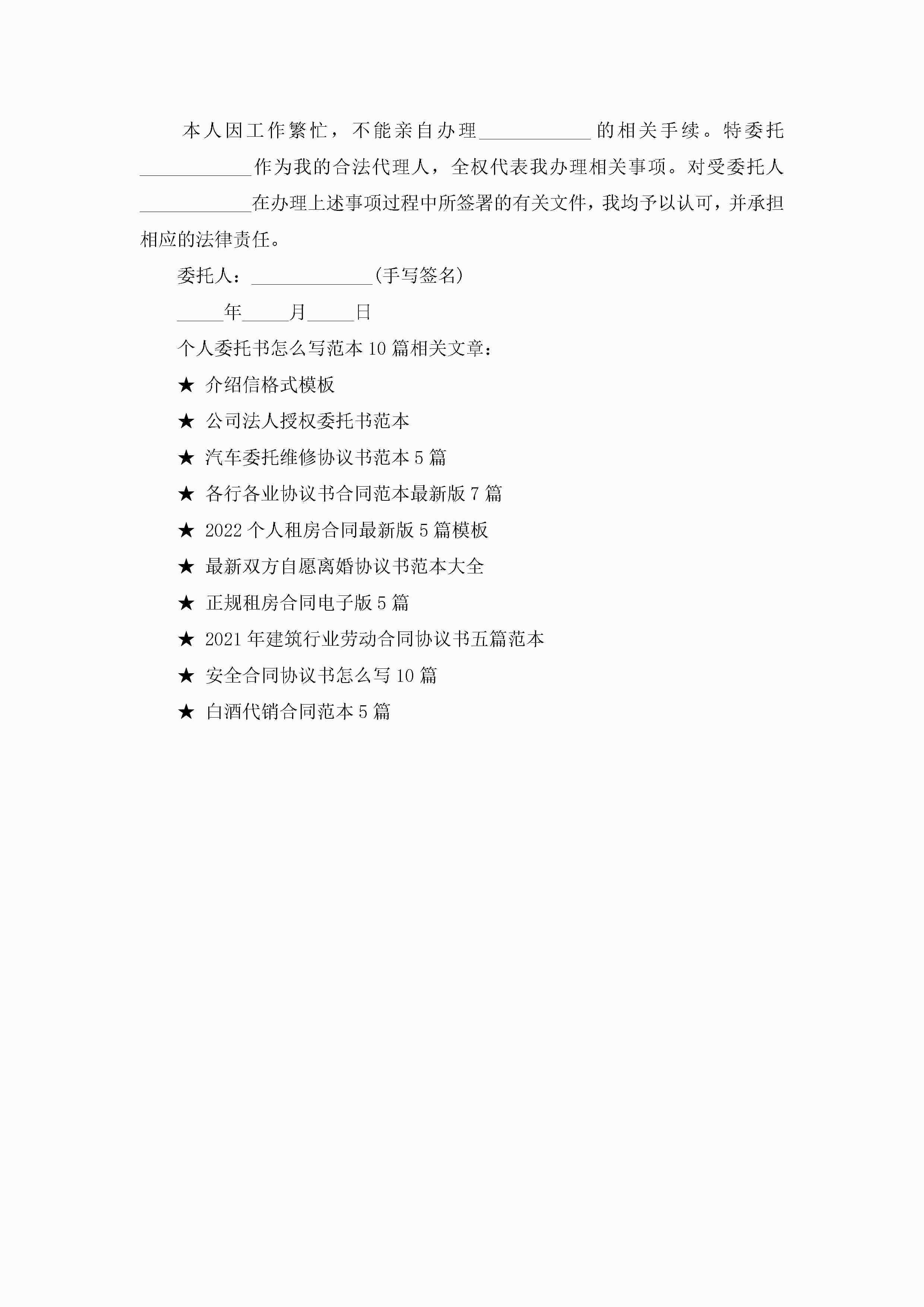 个人委托书怎么写范本10篇精选jugei3月22日 16:23发布关注223 个人委托书怎么写范本10篇精选此内容为付费资源,请付费后查看¥10.9 单篇文档限时特惠¥15个人会员开通企业会员开通立即下载无需登陆!可直接快捷下载单个模板付费资源© 版权声明THE ENDWord模板# 实用文档# 实用模板# 信函模板# 委托书 如有问题,可点击最底部“联系我们”联系客服 分享QQ空间微博QQ好友海报分享复制链接收藏