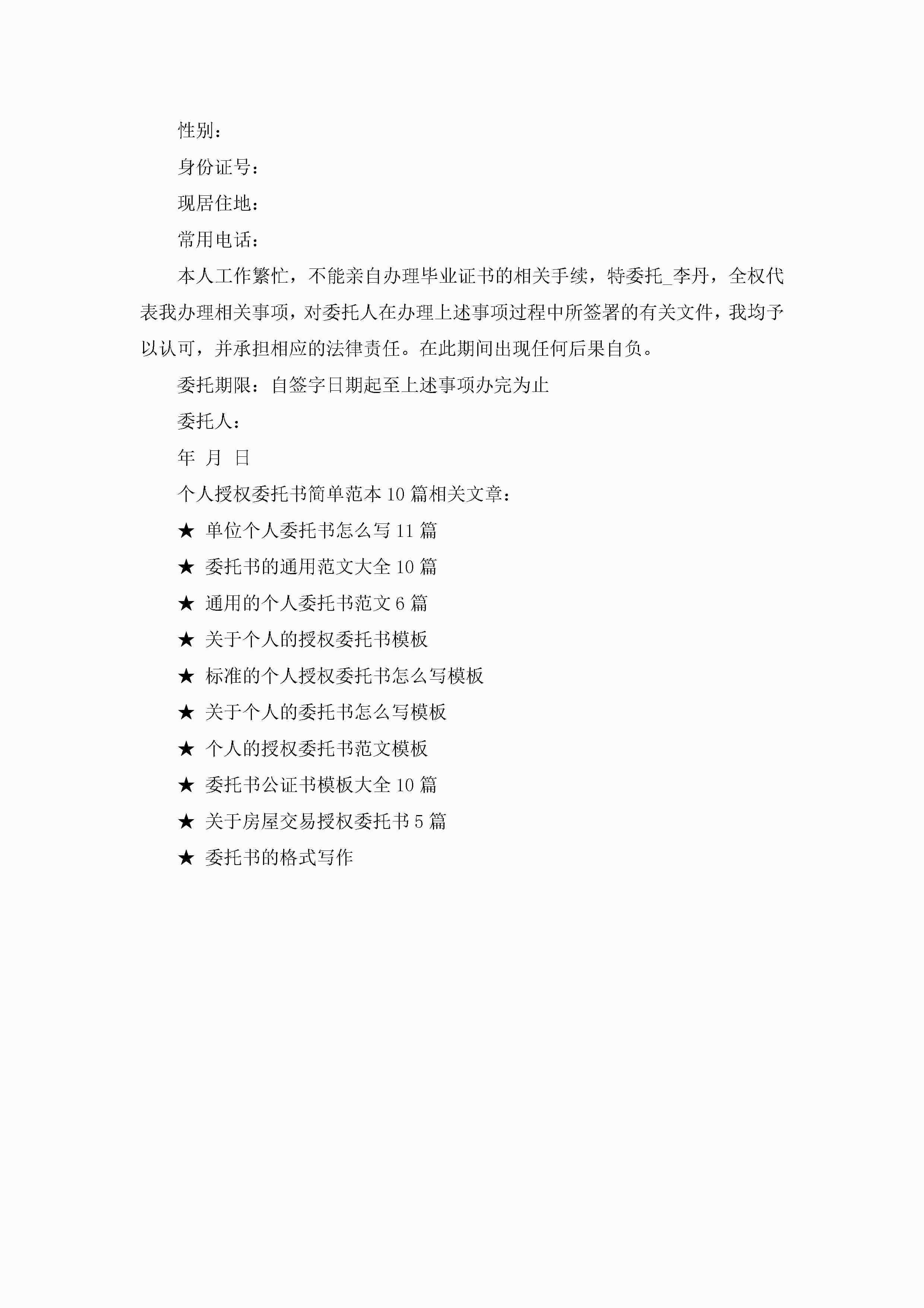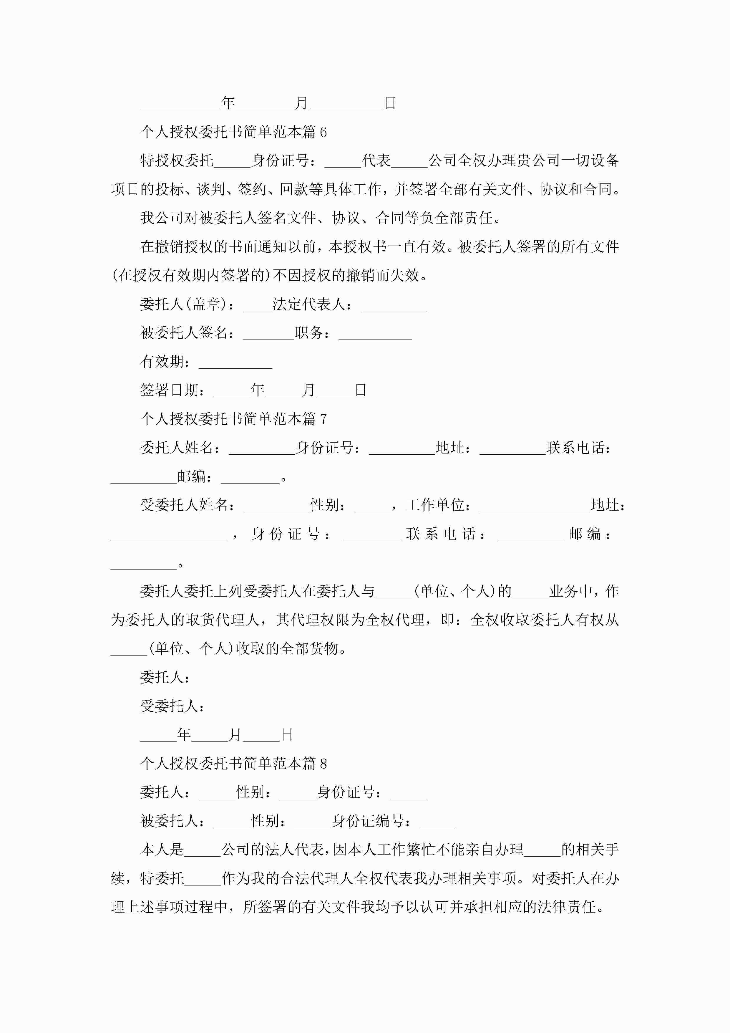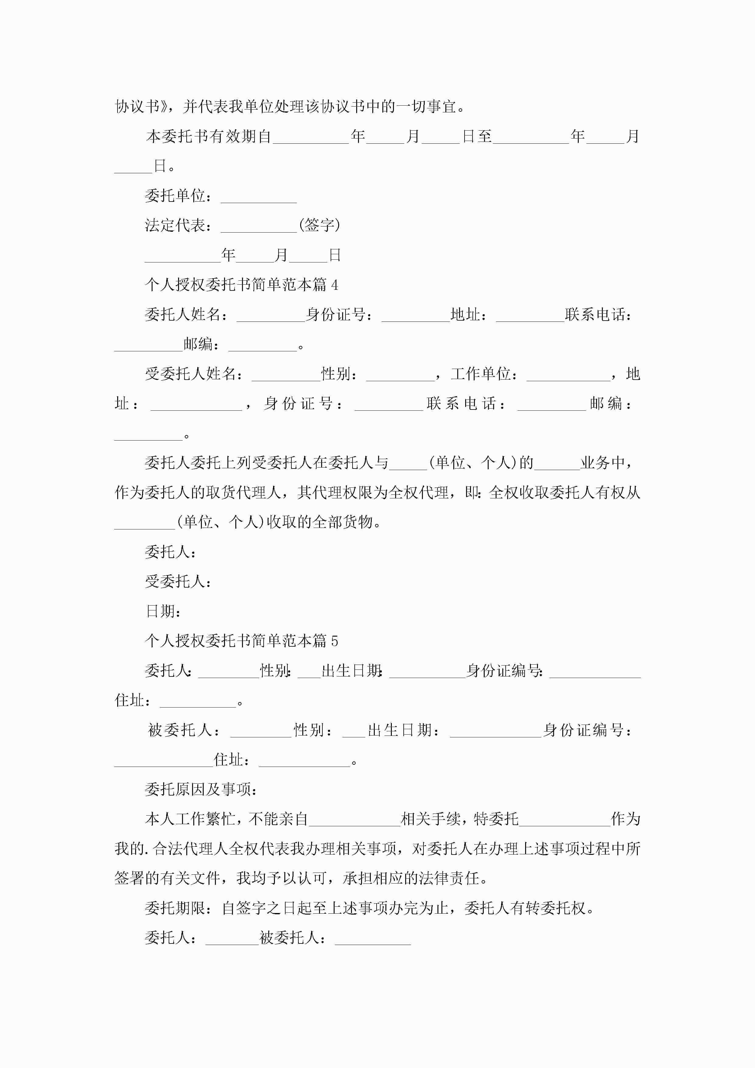 个人授权委托书简单范本10篇精选jugei3月22日 16:23发布关注215 个人授权委托书简单范本10篇精选此内容为付费资源,请付费后查看¥10.9 单篇文档限时特惠¥15个人会员开通企业会员开通立即下载无需登陆!可直接快捷下载单个模板付费资源© 版权声明THE ENDWord模板# 实用文档# 实用模板# 信函模板# 委托书 如有问题,可点击最底部“联系我们”联系客服 分享QQ空间微博QQ好友海报分享复制链接收藏