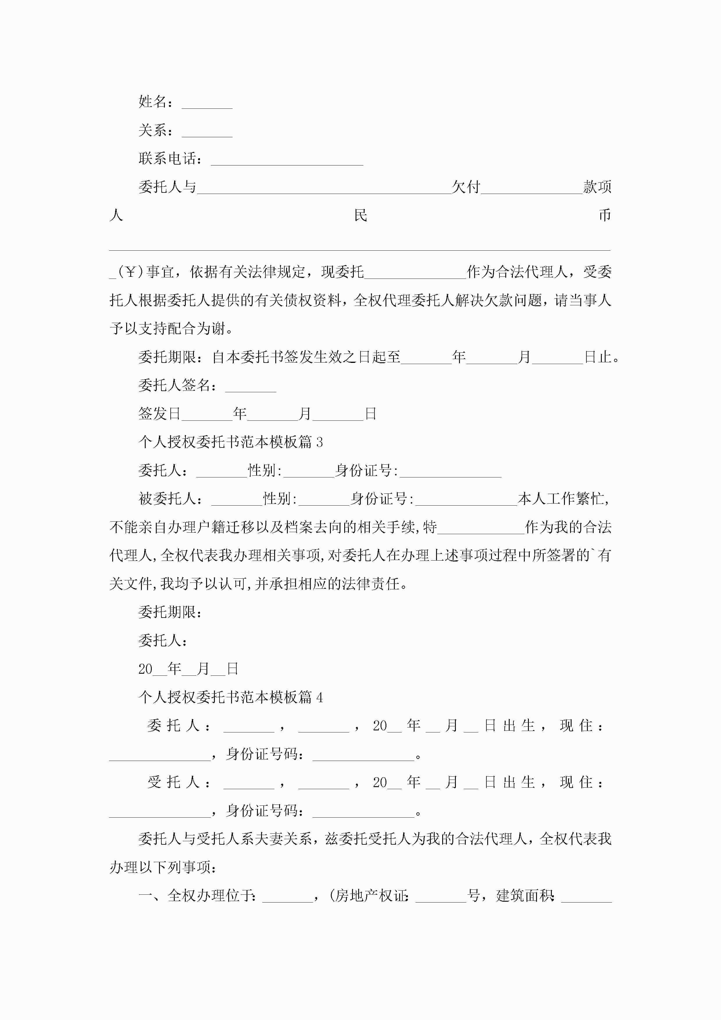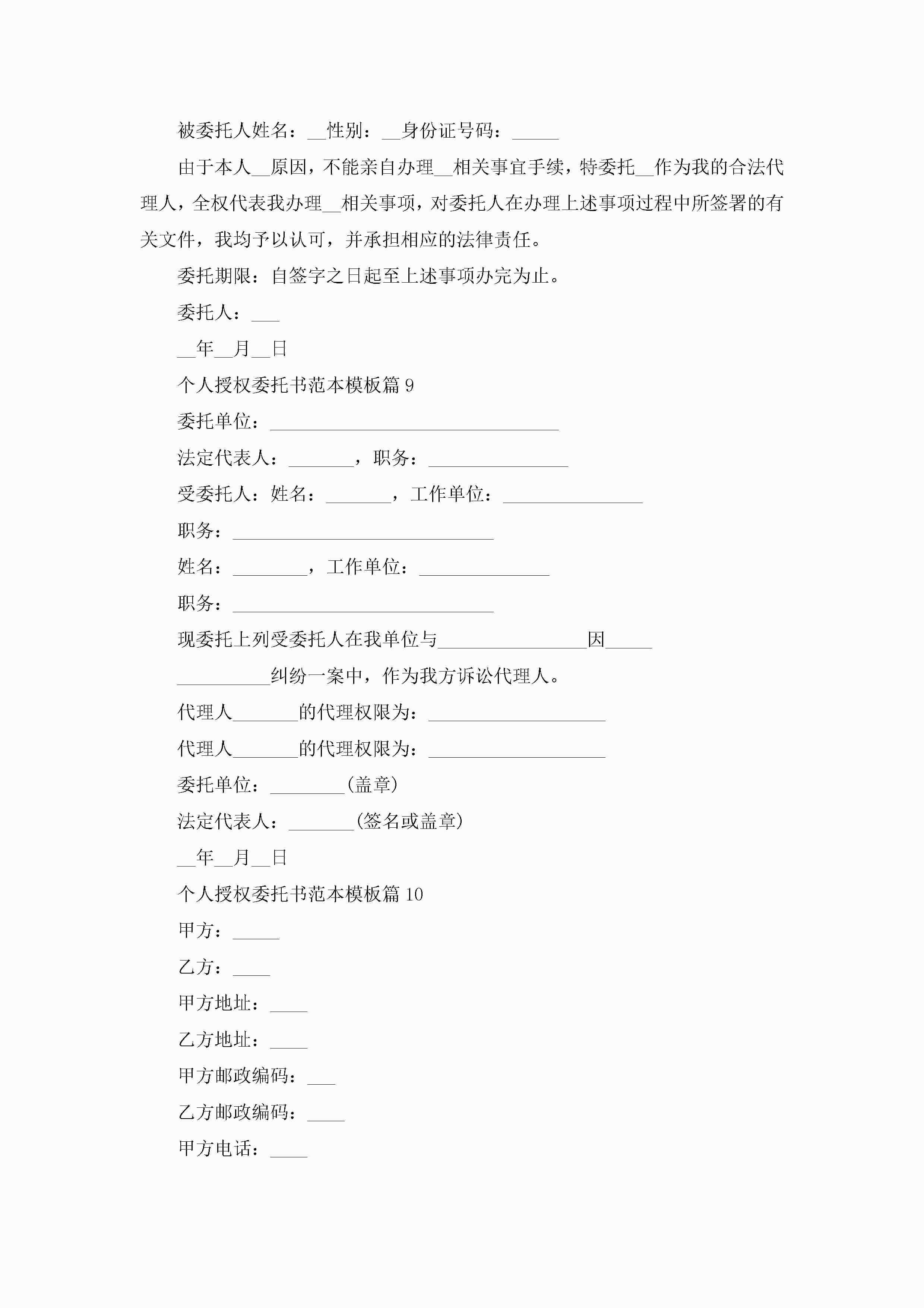 个人授权委托书范本模板10篇精选jugei3月22日 16:23发布关注276 个人授权委托书范本模板10篇精选此内容为付费资源,请付费后查看¥10.9 单篇文档限时特惠¥15个人会员开通企业会员开通立即下载无需登陆!可直接快捷下载单个模板付费资源© 版权声明THE ENDWord模板# 实用文档# 实用模板# 信函模板# 委托书 如有问题,可点击最底部“联系我们”联系客服 分享QQ空间微博QQ好友海报分享复制链接收藏