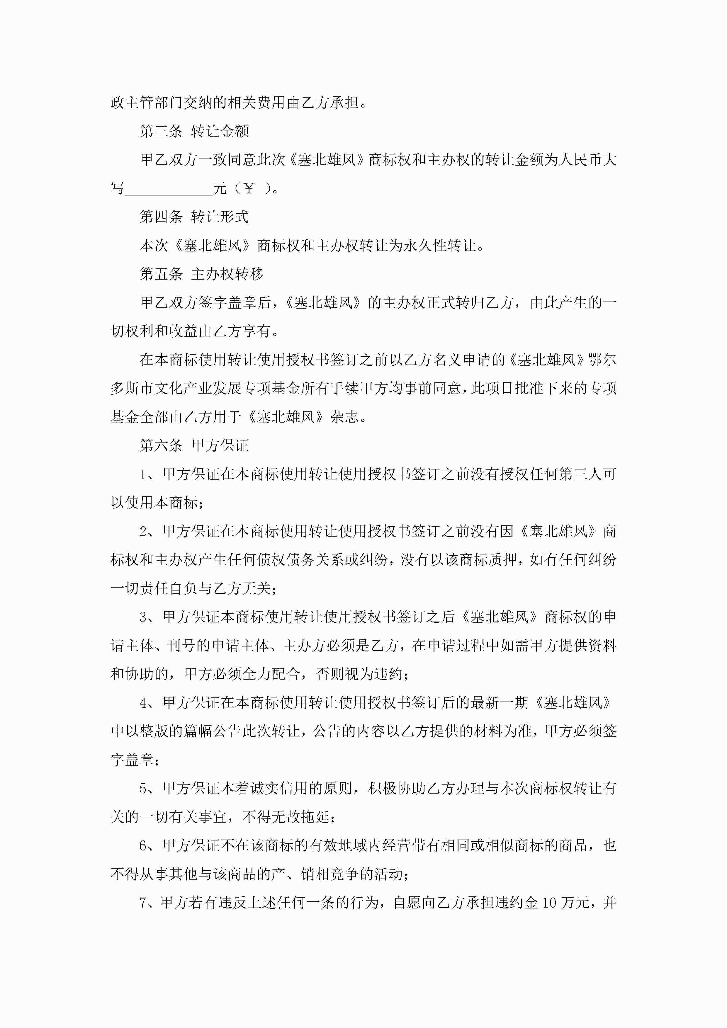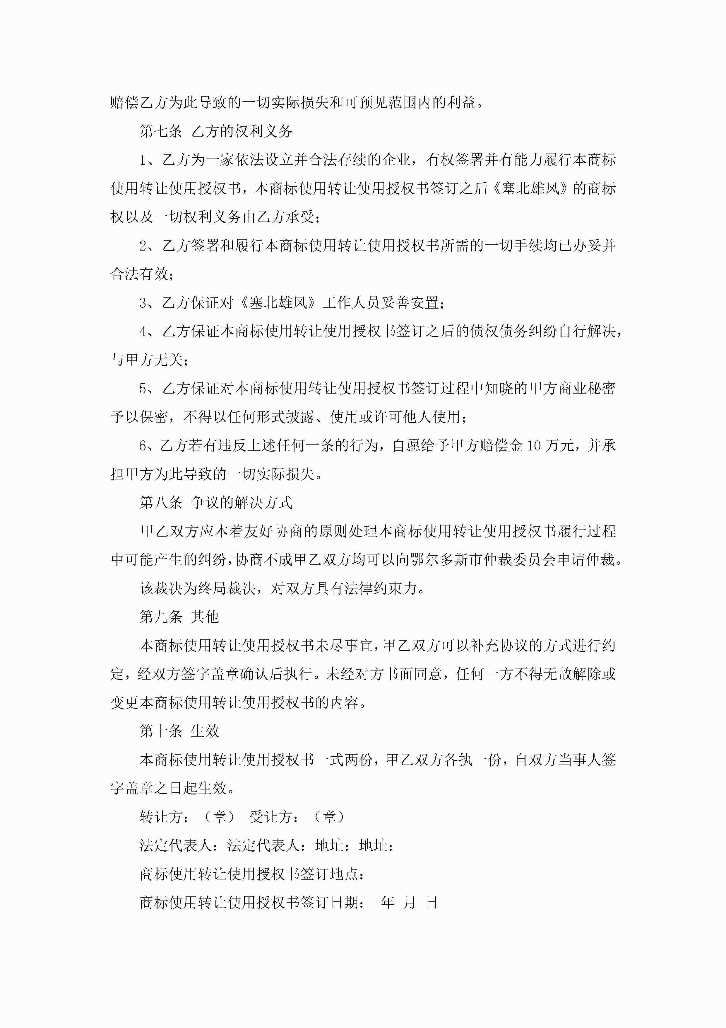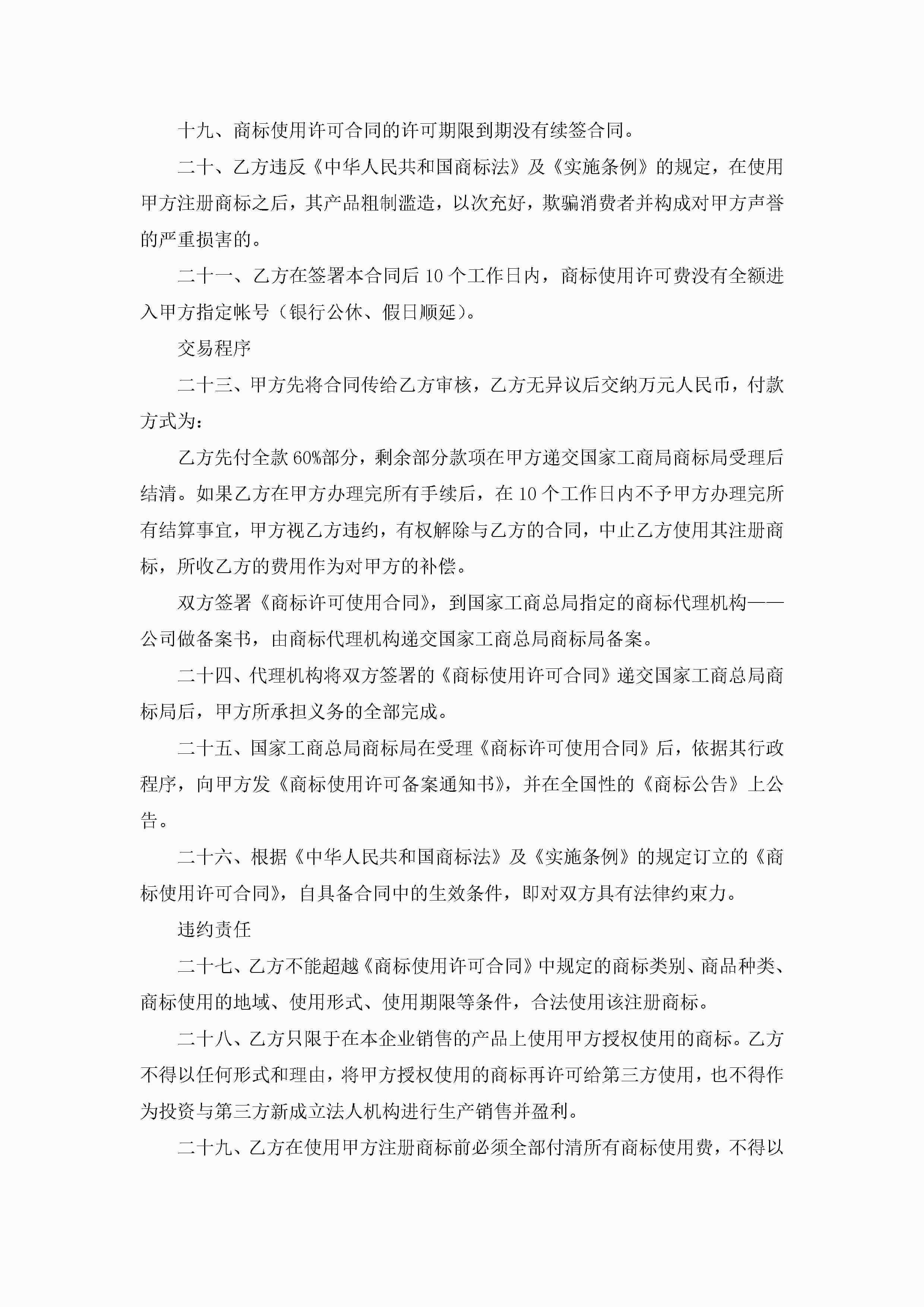 最新公司产品商标授权委托书(精选8篇)jugei3月22日 16:23发布关注310 最新公司产品商标授权委托书(精选8篇)此内容为付费资源,请付费后查看¥10.9 单篇文档限时特惠¥15个人会员开通企业会员开通立即下载无需登陆!可直接快捷下载单个模板付费资源© 版权声明THE ENDWord模板# 实用文档# 实用模板# 信函模板# 委托书 如有问题,可点击最底部“联系我们”联系客服 分享QQ空间微博QQ好友海报分享复制链接收藏