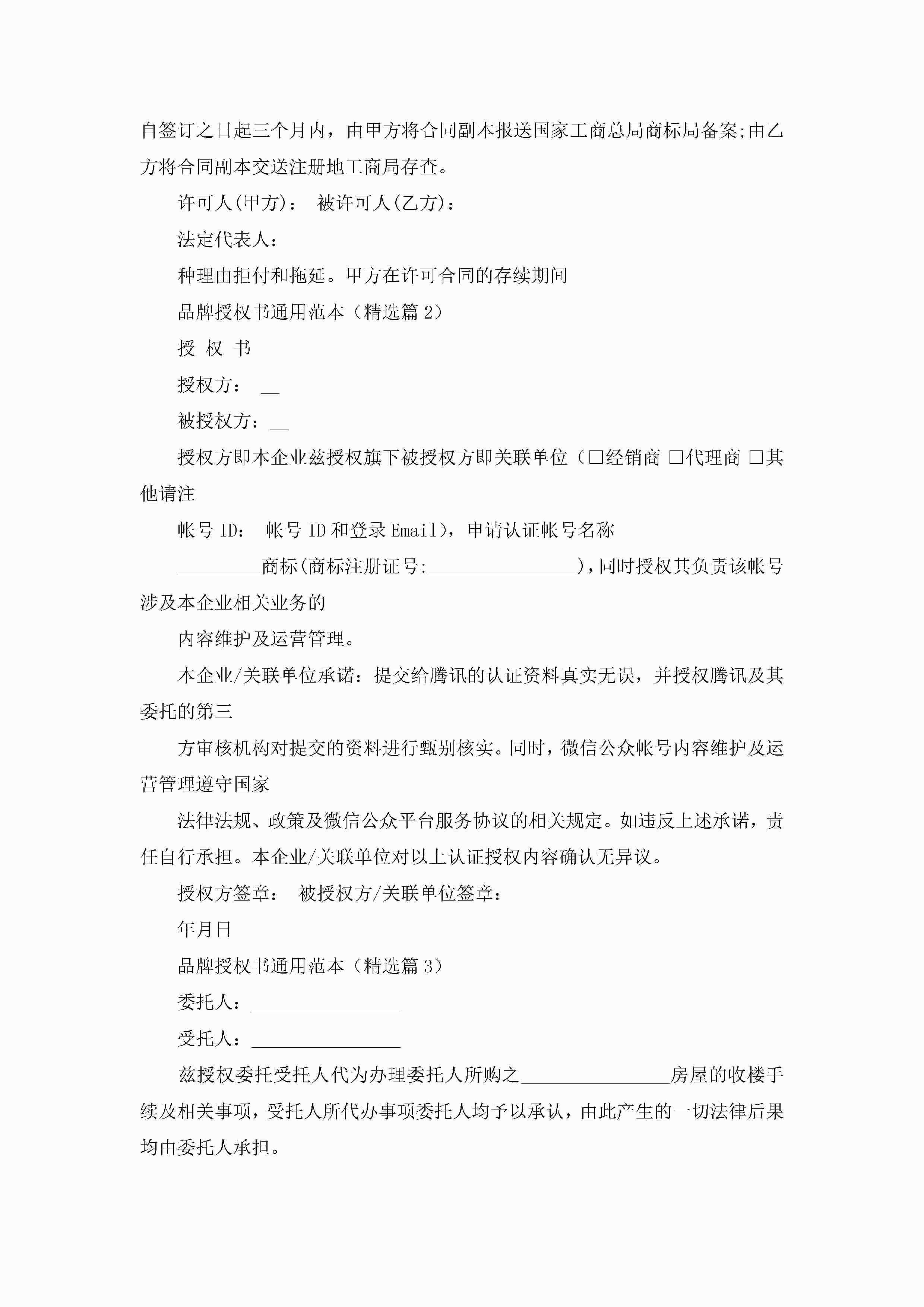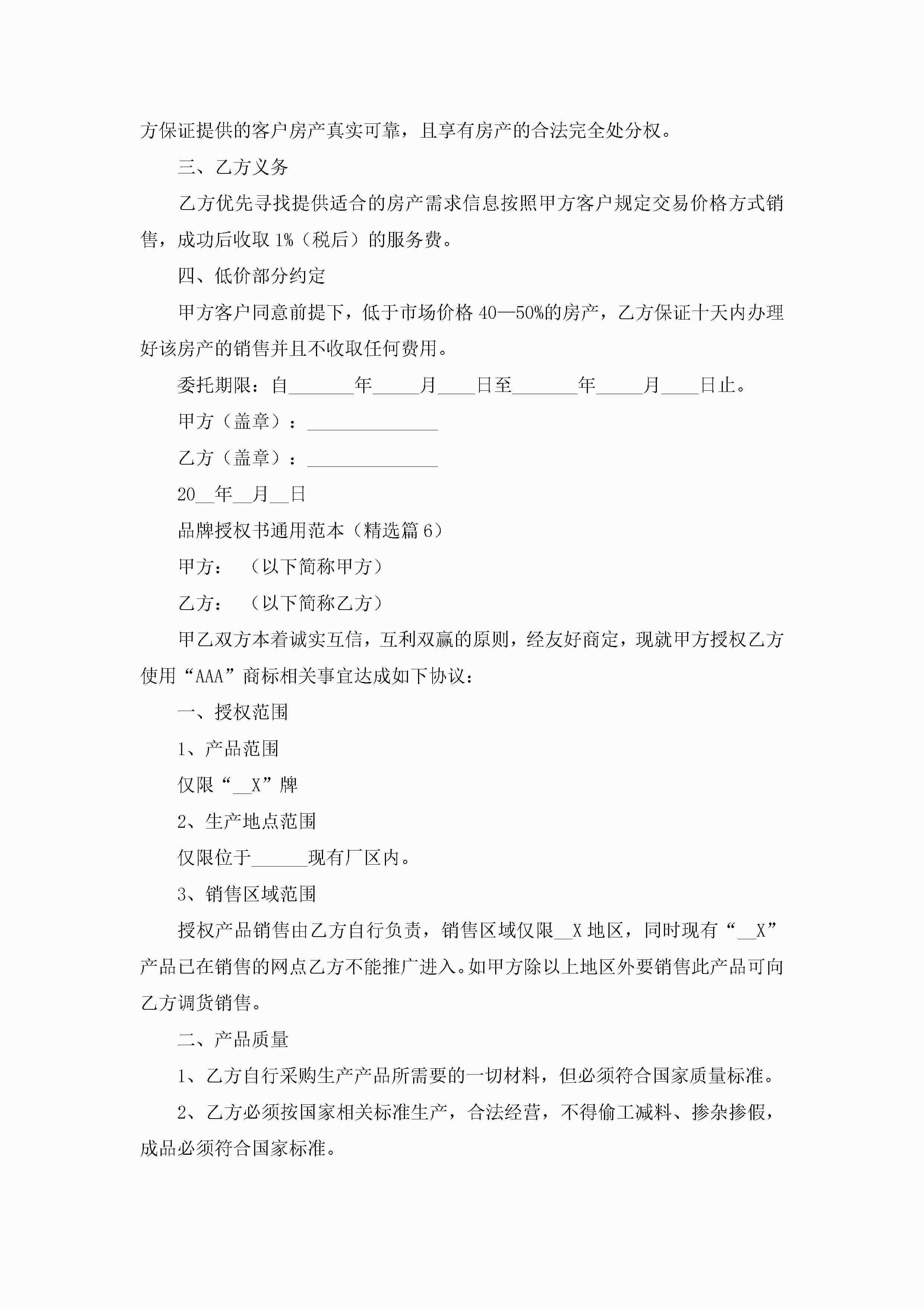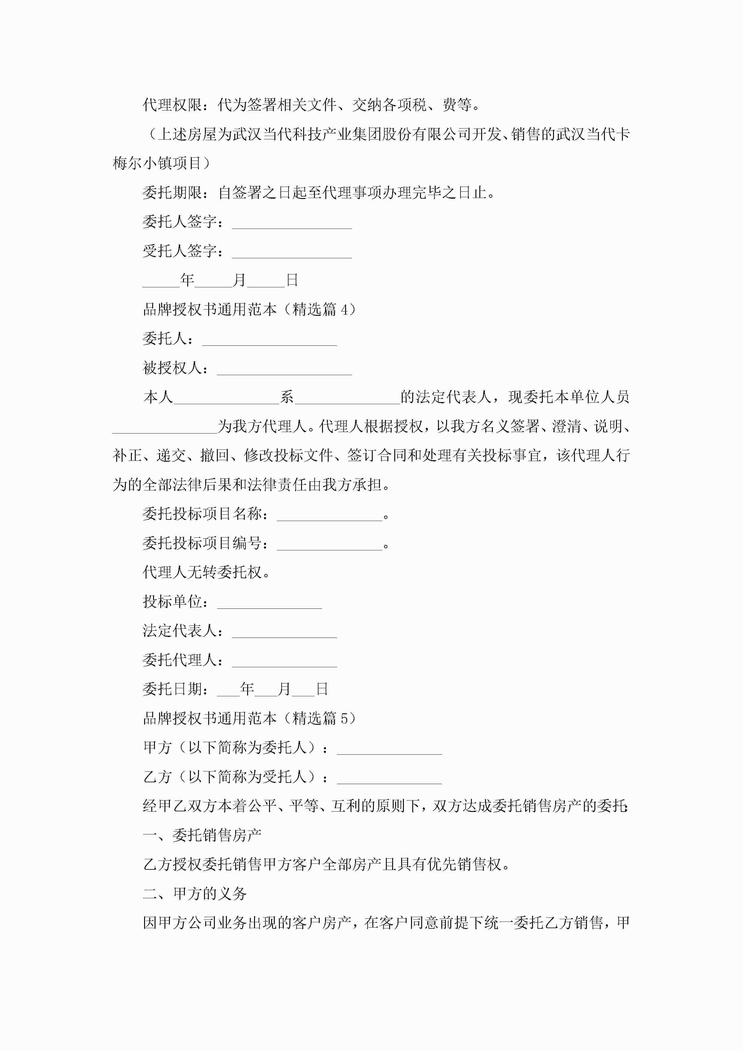 品牌授权书通用范本(精选7篇)jugei3月22日 16:23发布关注304 品牌授权书通用范本(精选7篇)此内容为付费资源,请付费后查看¥10.9 单篇文档限时特惠¥15个人会员开通企业会员开通立即下载无需登陆!可直接快捷下载单个模板付费资源© 版权声明THE ENDWord模板# 实用文档# 信函模板# 委托书# 品牌授权书通用范本 如有问题,可点击最底部“联系我们”联系客服 分享QQ空间微博QQ好友海报分享复制链接收藏