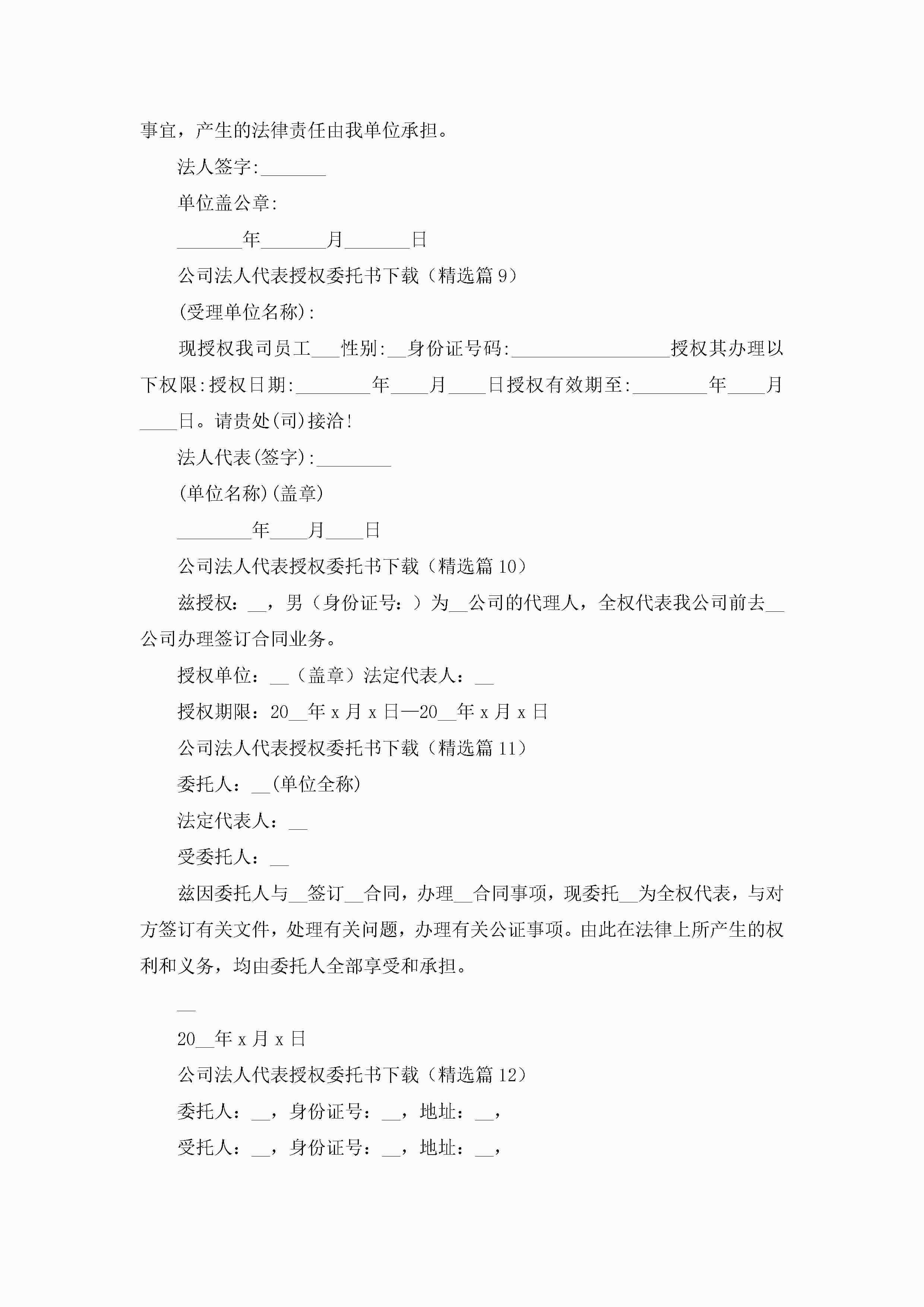 公司法人代表授权委托书下载(精选15篇)jugei3月22日 16:23发布关注298 公司法人代表授权委托书下载(精选15篇)此内容为付费资源,请付费后查看¥10.9 单篇文档限时特惠¥15个人会员开通企业会员开通立即下载无需登陆!可直接快捷下载单个模板付费资源© 版权声明THE ENDWord模板# 实用文档# 实用模板# 信函模板# 委托书 如有问题,可点击最底部“联系我们”联系客服 分享QQ空间微博QQ好友海报分享复制链接收藏