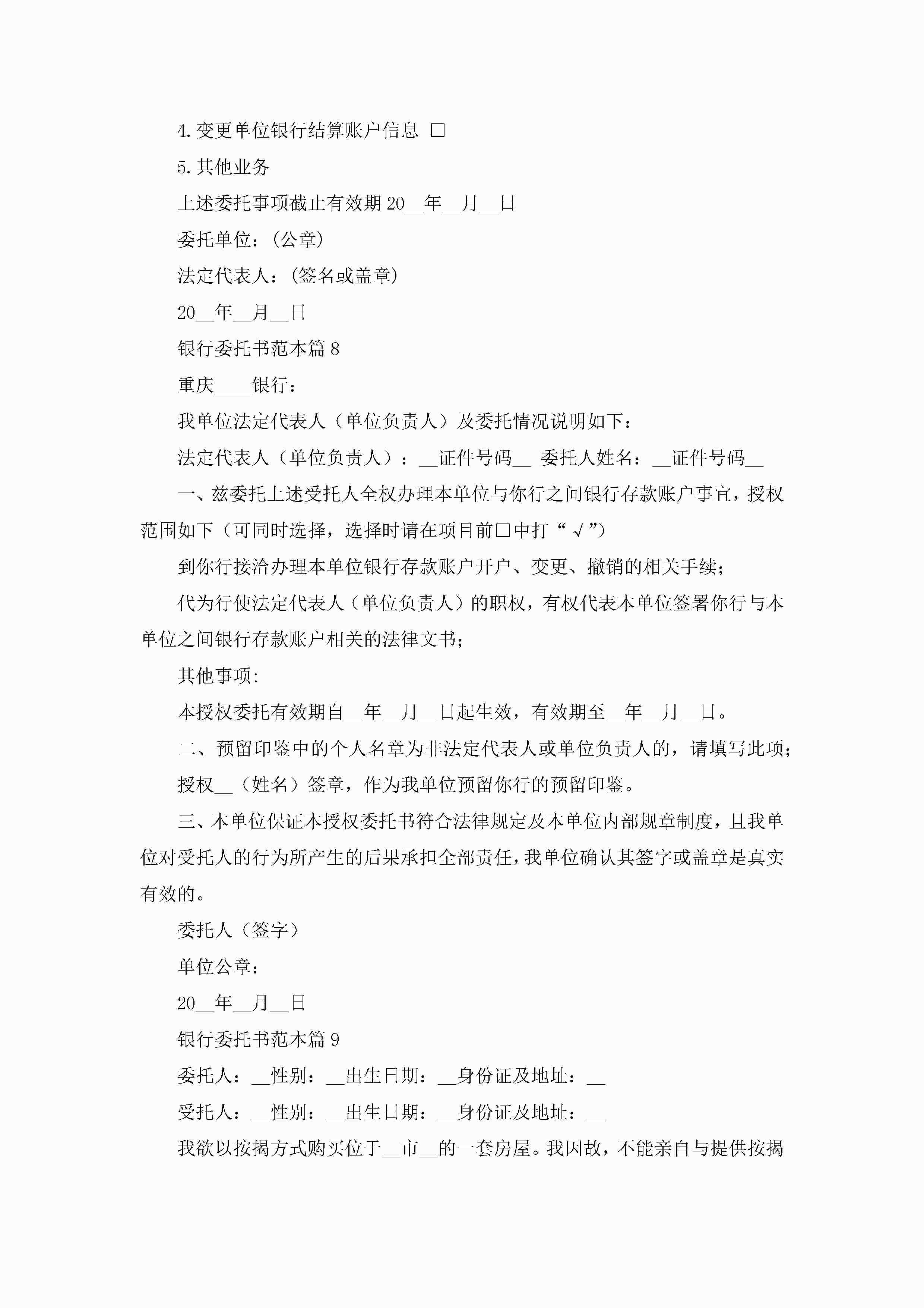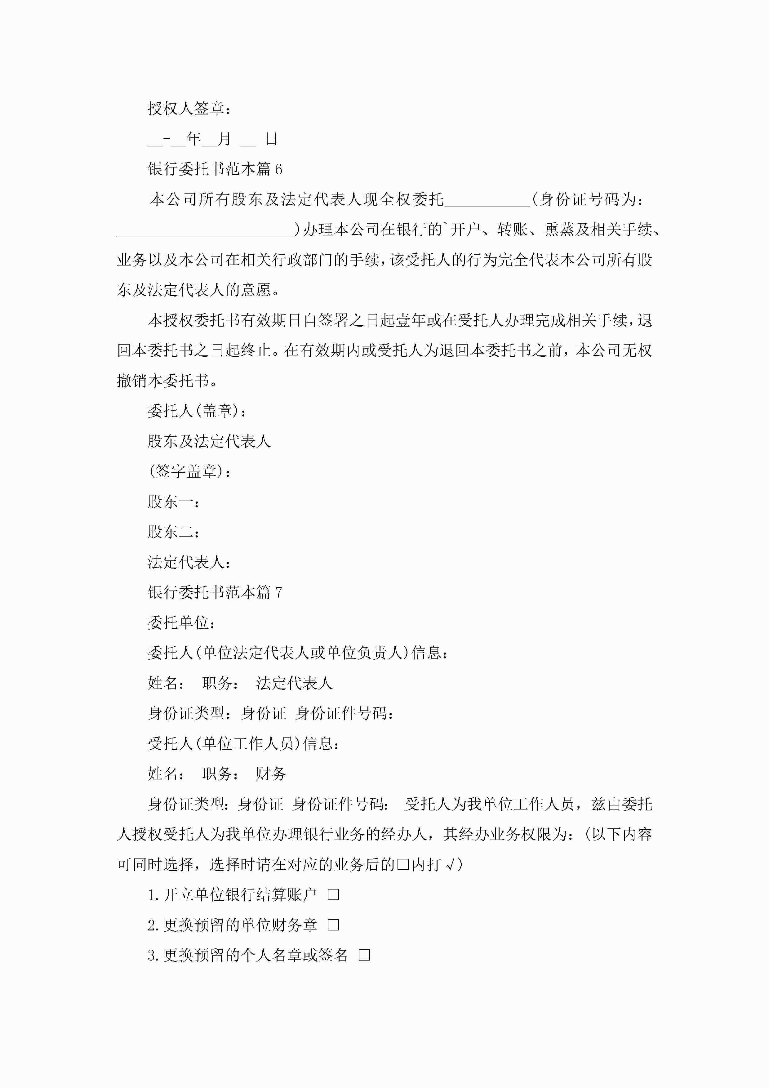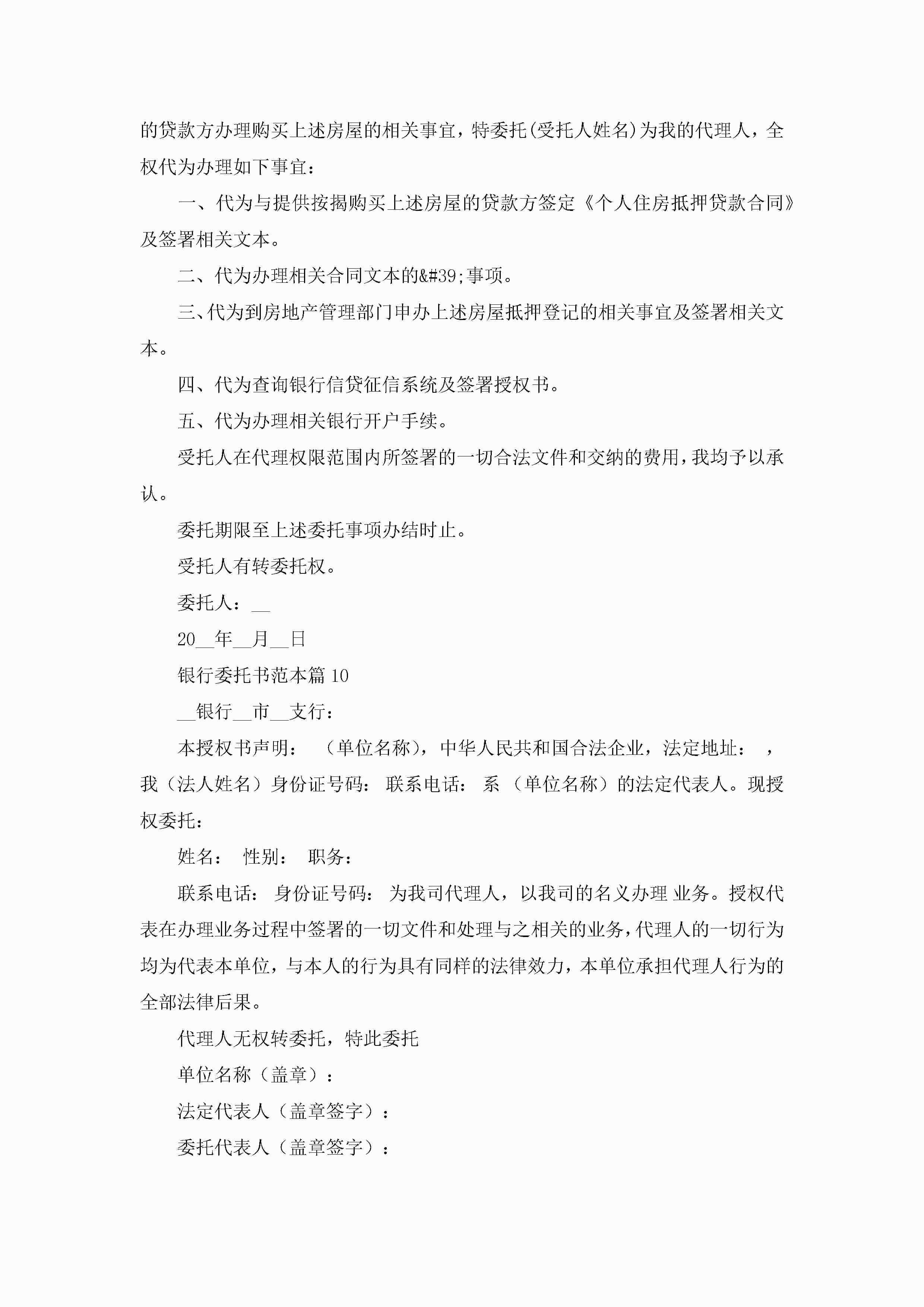 银行委托书范本(精选10篇)jugei3月22日 16:23发布关注215 银行委托书范本(精选10篇)此内容为付费资源,请付费后查看¥10.9 单篇文档限时特惠¥15个人会员开通企业会员开通立即下载无需登陆!可直接快捷下载单个模板付费资源© 版权声明THE ENDWord模板# 实用文档# 实用模板# 信函模板# 委托书 如有问题,可点击最底部“联系我们”联系客服 分享QQ空间微博QQ好友海报分享复制链接收藏
