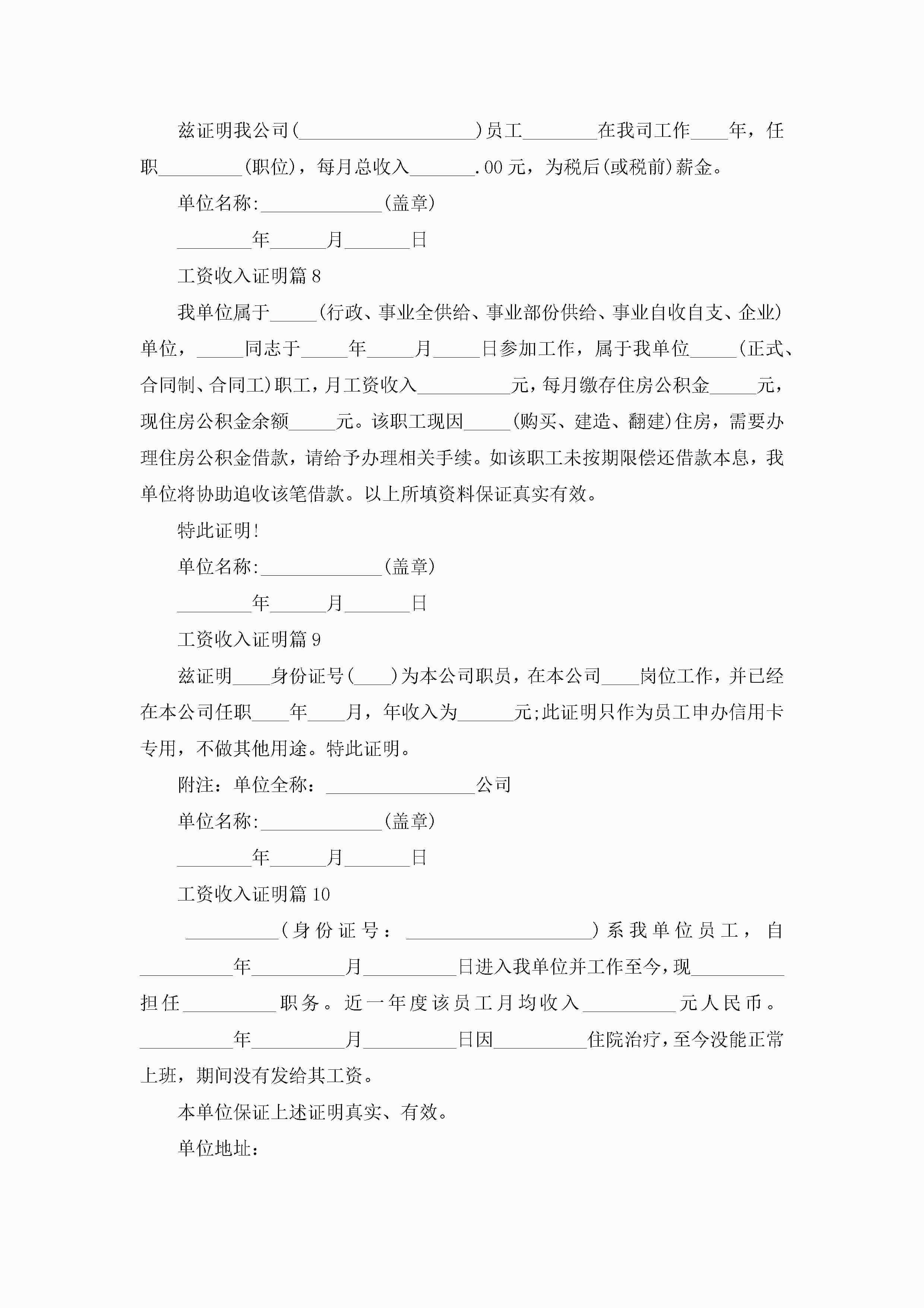 工资收入证明10篇(精选)jugei3月22日 16:23发布关注291 工资收入证明10篇(精选)此内容为付费资源,请付费后查看¥10.9 单篇文档限时特惠¥15个人会员开通企业会员开通立即下载无需登陆!可直接快捷下载单个模板付费资源© 版权声明THE ENDWord模板# 实用文档# 实用模板# 信函模板# 证明书 如有问题,可点击最底部“联系我们”联系客服 分享QQ空间微博QQ好友海报分享复制链接收藏