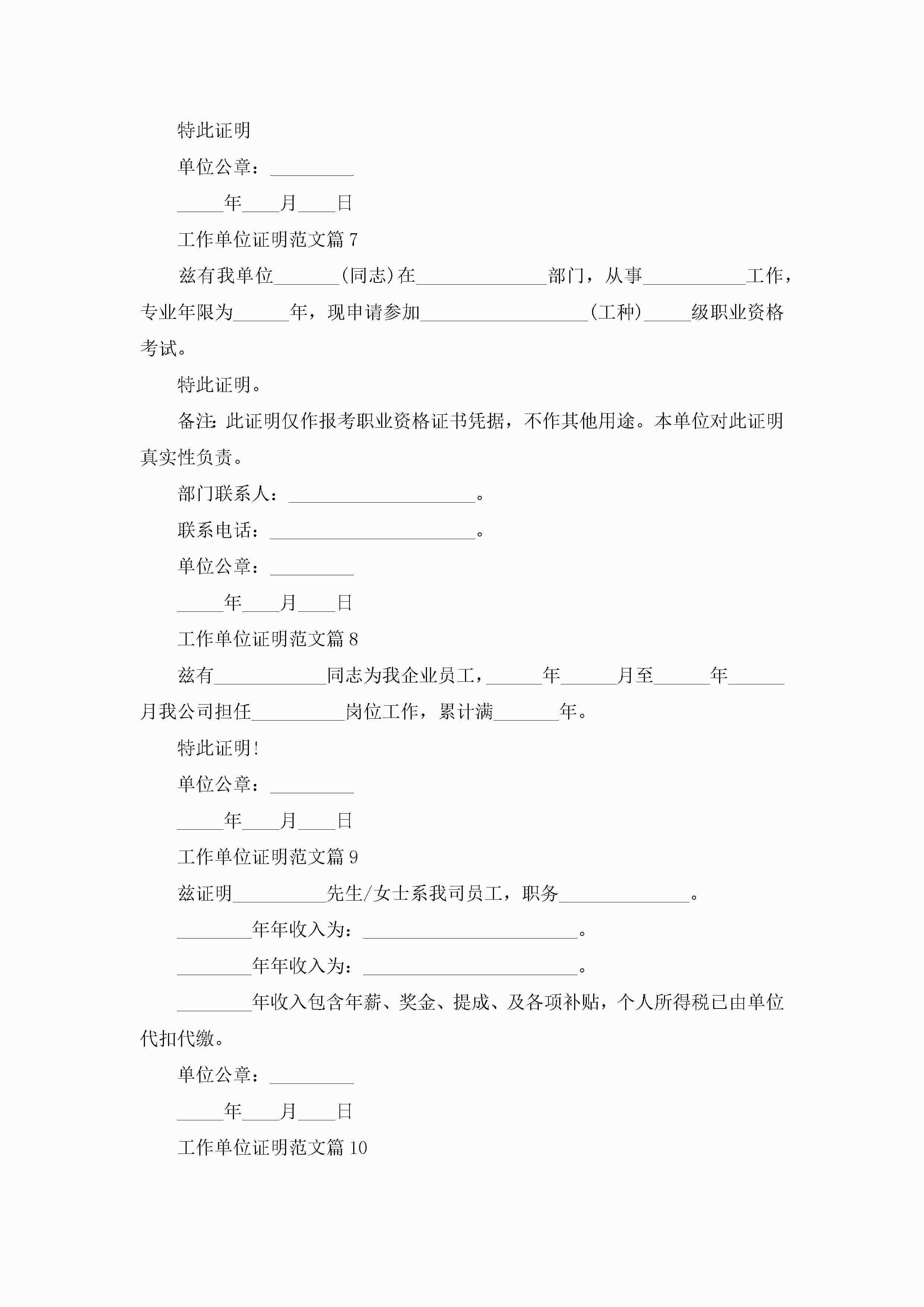 工作单位证明范文10篇(精选)jugei3月22日 16:23发布关注430 工作单位证明范文10篇(精选)此内容为付费资源,请付费后查看¥10.9 单篇文档限时特惠¥15个人会员开通企业会员开通立即下载无需登陆!可直接快捷下载单个模板付费资源© 版权声明THE ENDWord模板# 实用文档# 实用模板# 信函模板# 证明书 如有问题,可点击最底部“联系我们”联系客服 分享QQ空间微博QQ好友海报分享复制链接收藏