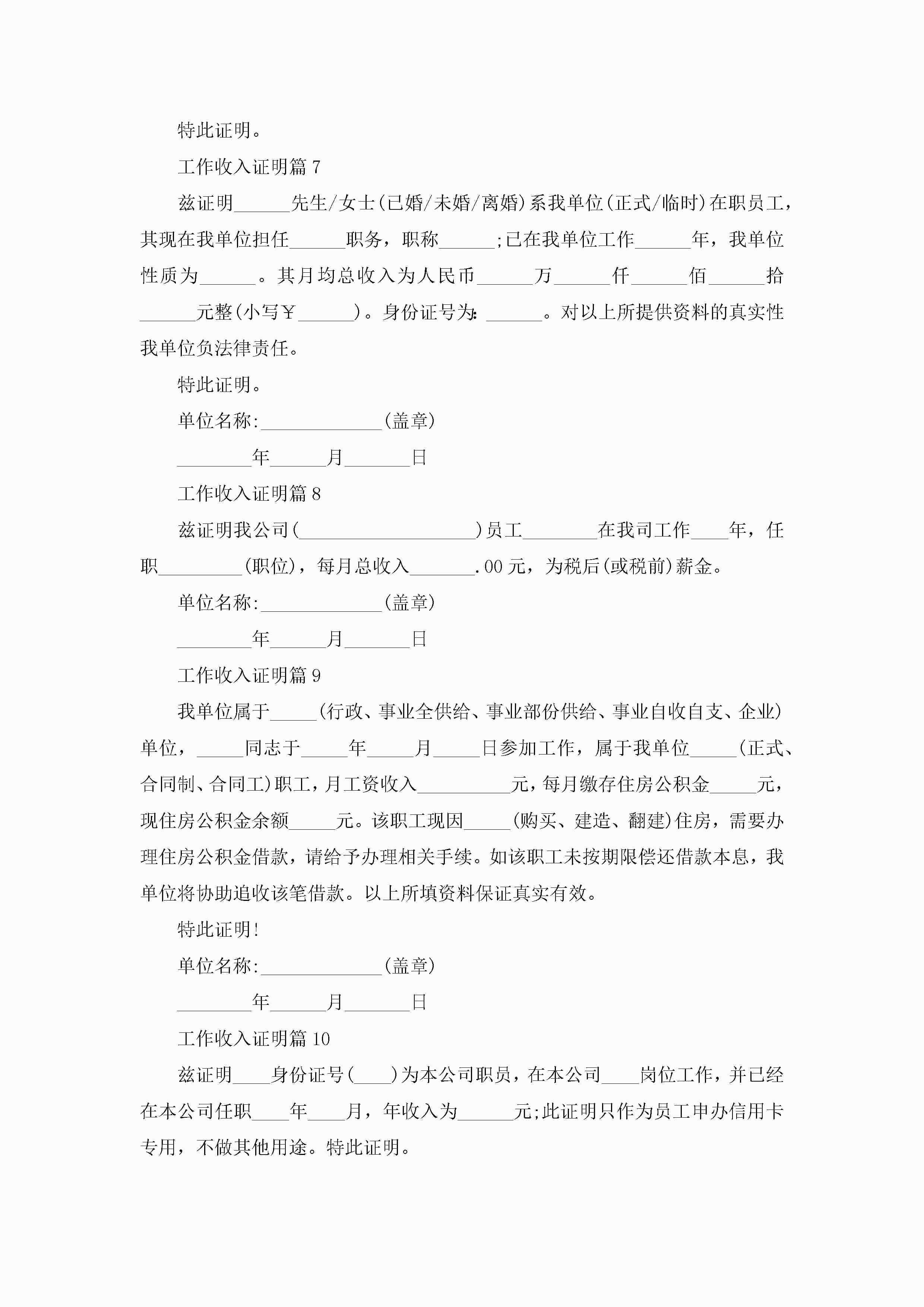 工作收入证明10篇(精选)jugei3月22日 16:23发布关注197 工作收入证明10篇(精选)此内容为付费资源,请付费后查看¥10.9 单篇文档限时特惠¥15个人会员开通企业会员开通立即下载无需登陆!可直接快捷下载单个模板付费资源© 版权声明THE ENDWord模板# 实用文档# 实用模板# 信函模板# 证明书 如有问题,可点击最底部“联系我们”联系客服 分享QQ空间微博QQ好友海报分享复制链接收藏