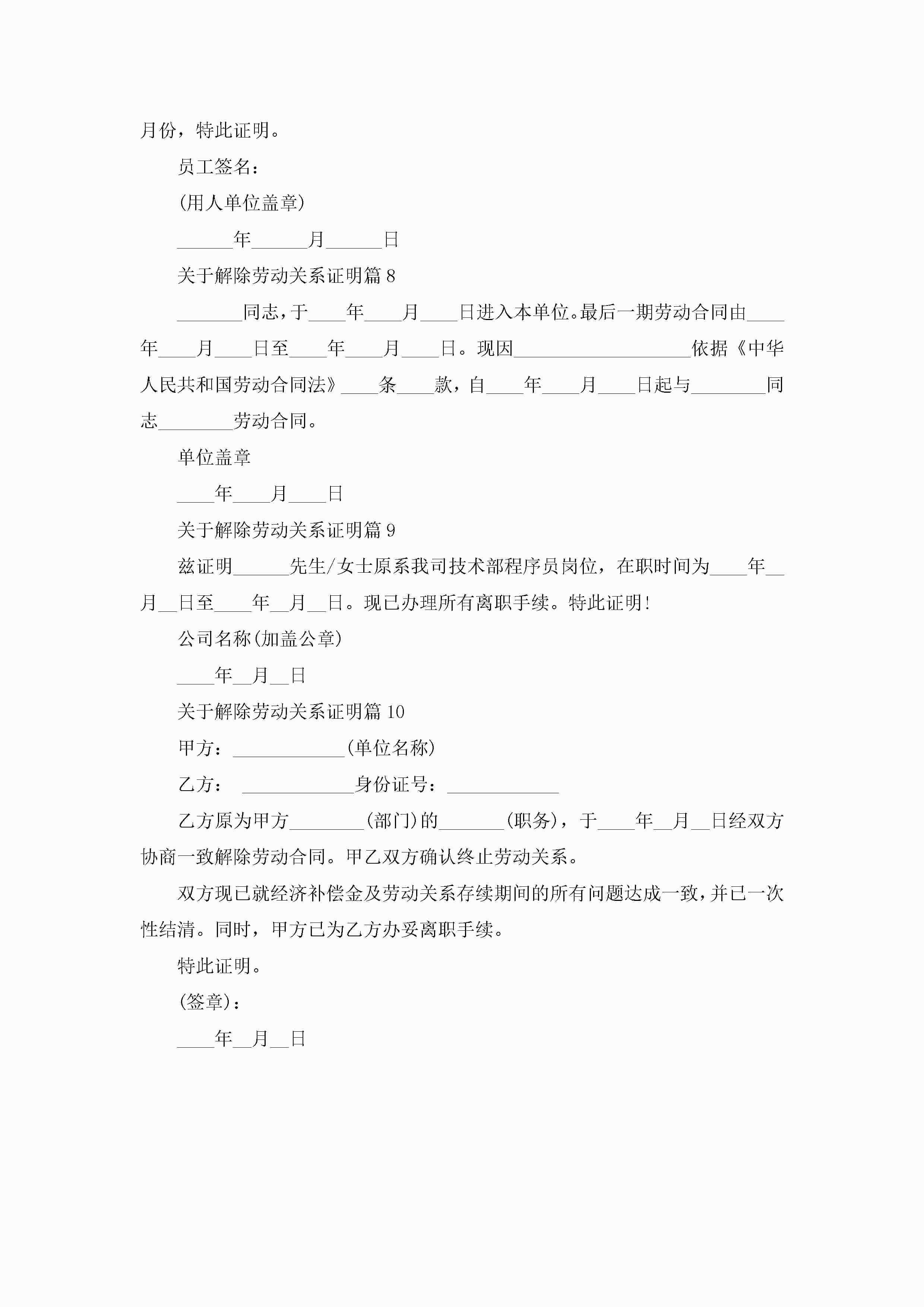 关于解除劳动关系证明10篇(精选)jugei3月22日 16:23发布关注210 关于解除劳动关系证明10篇(精选)此内容为付费资源,请付费后查看¥10.9 单篇文档限时特惠¥15个人会员开通企业会员开通立即下载无需登陆!可直接快捷下载单个模板付费资源© 版权声明THE ENDWord模板# 实用文档# 实用模板# 信函模板# 证明书 如有问题,可点击最底部“联系我们”联系客服 分享QQ空间微博QQ好友海报分享复制链接收藏