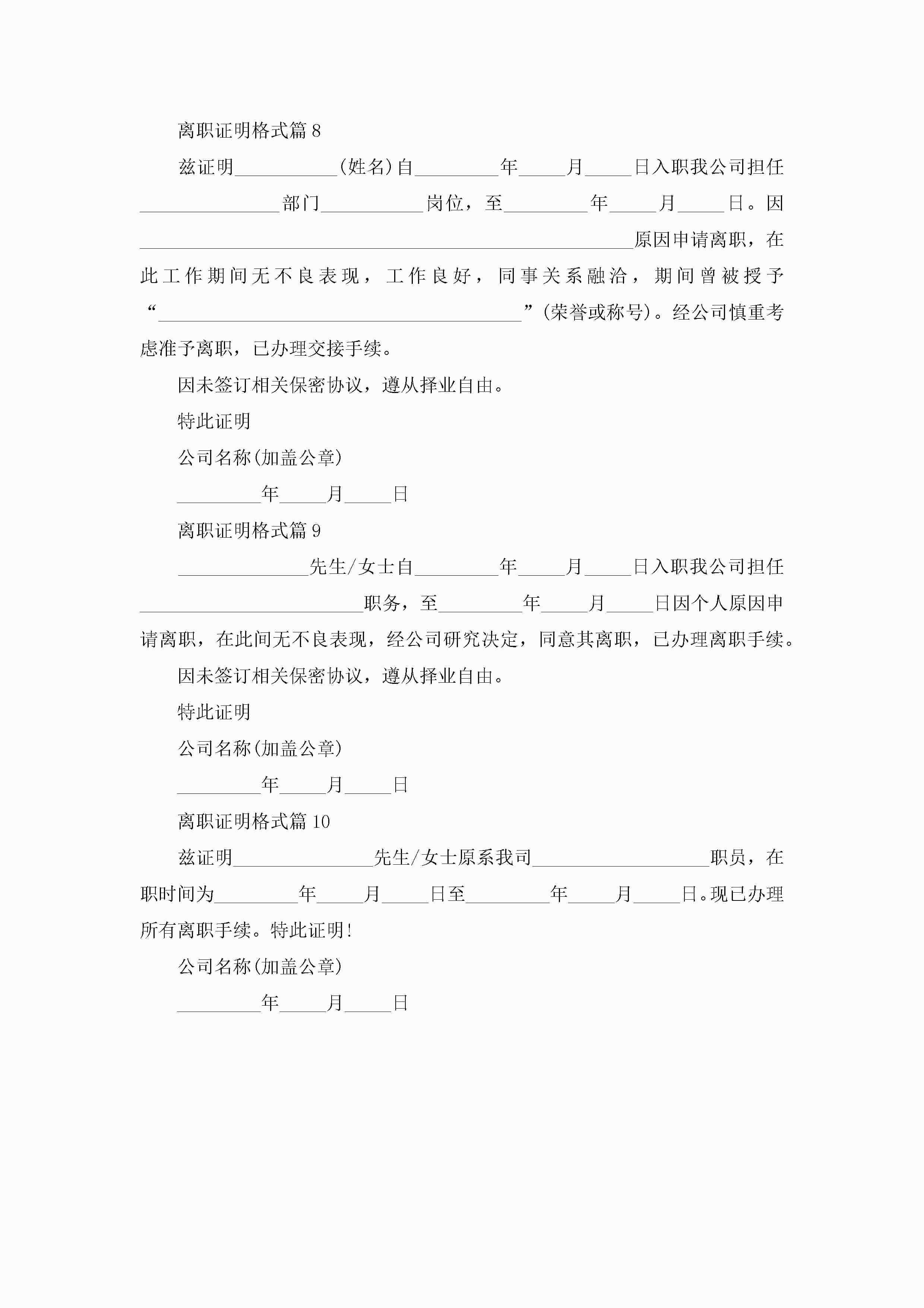 离职证明格式10篇(精选)jugei3月22日 16:23发布关注320 离职证明格式10篇(精选)此内容为付费资源,请付费后查看¥10.9 单篇文档限时特惠¥15个人会员开通企业会员开通立即下载无需登陆!可直接快捷下载单个模板付费资源© 版权声明THE ENDWord模板# 实用文档# 实用模板# 信函模板# 证明书 如有问题,可点击最底部“联系我们”联系客服 分享QQ空间微博QQ好友海报分享复制链接收藏