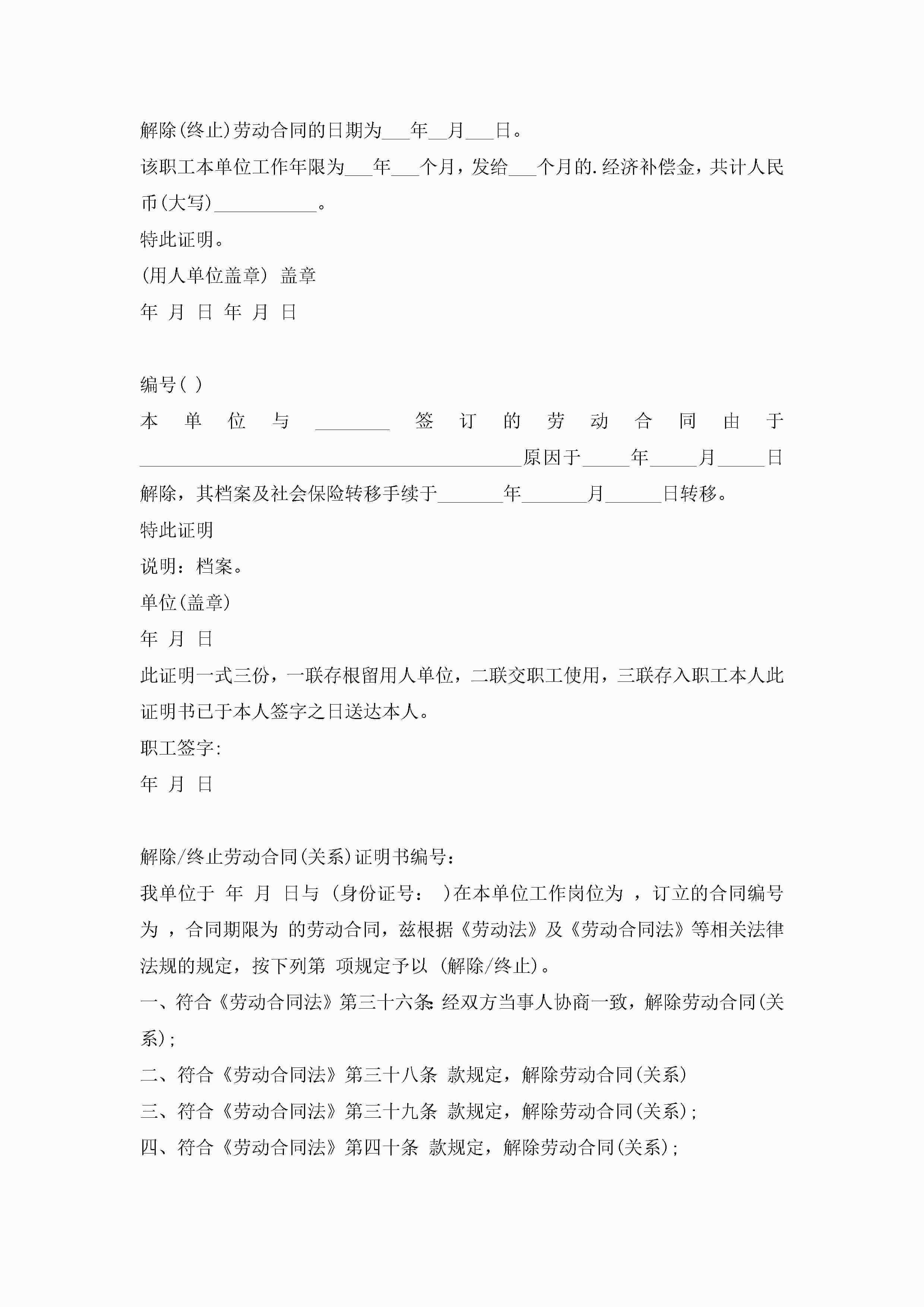 解除终止劳动合同证明书6篇jugei3月22日 16:23发布关注200 解除终止劳动合同证明书6篇此内容为付费资源,请付费后查看¥10.9 单篇文档限时特惠¥15个人会员开通企业会员开通立即下载无需登陆!可直接快捷下载单个模板付费资源© 版权声明THE ENDWord模板# 实用文档# 实用模板# 信函模板# 证明书 如有问题,可点击最底部“联系我们”联系客服 分享QQ空间微博QQ好友海报分享复制链接收藏