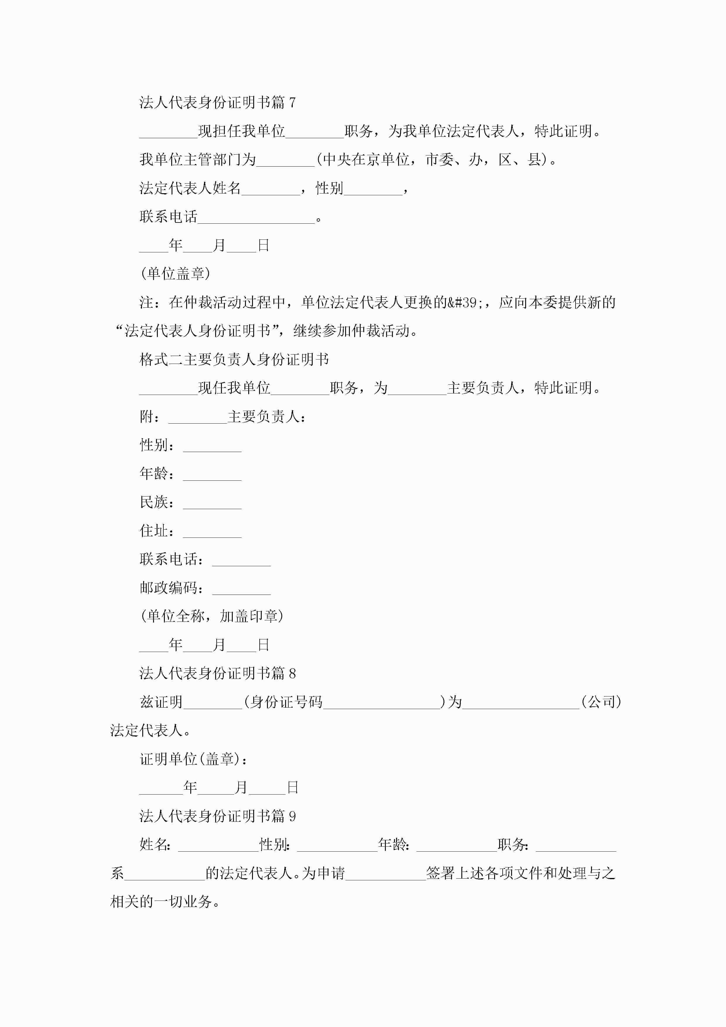 法人代表身份证明书10篇(实用)jugei3月22日 16:24发布关注207 法人代表身份证明书10篇(实用)此内容为付费资源,请付费后查看¥10.9 单篇文档限时特惠¥15个人会员开通企业会员开通立即下载无需登陆!可直接快捷下载单个模板付费资源© 版权声明THE ENDWord模板# 实用文档# 实用模板# 信函模板# 证明书 如有问题,可点击最底部“联系我们”联系客服 分享QQ空间微博QQ好友海报分享复制链接收藏