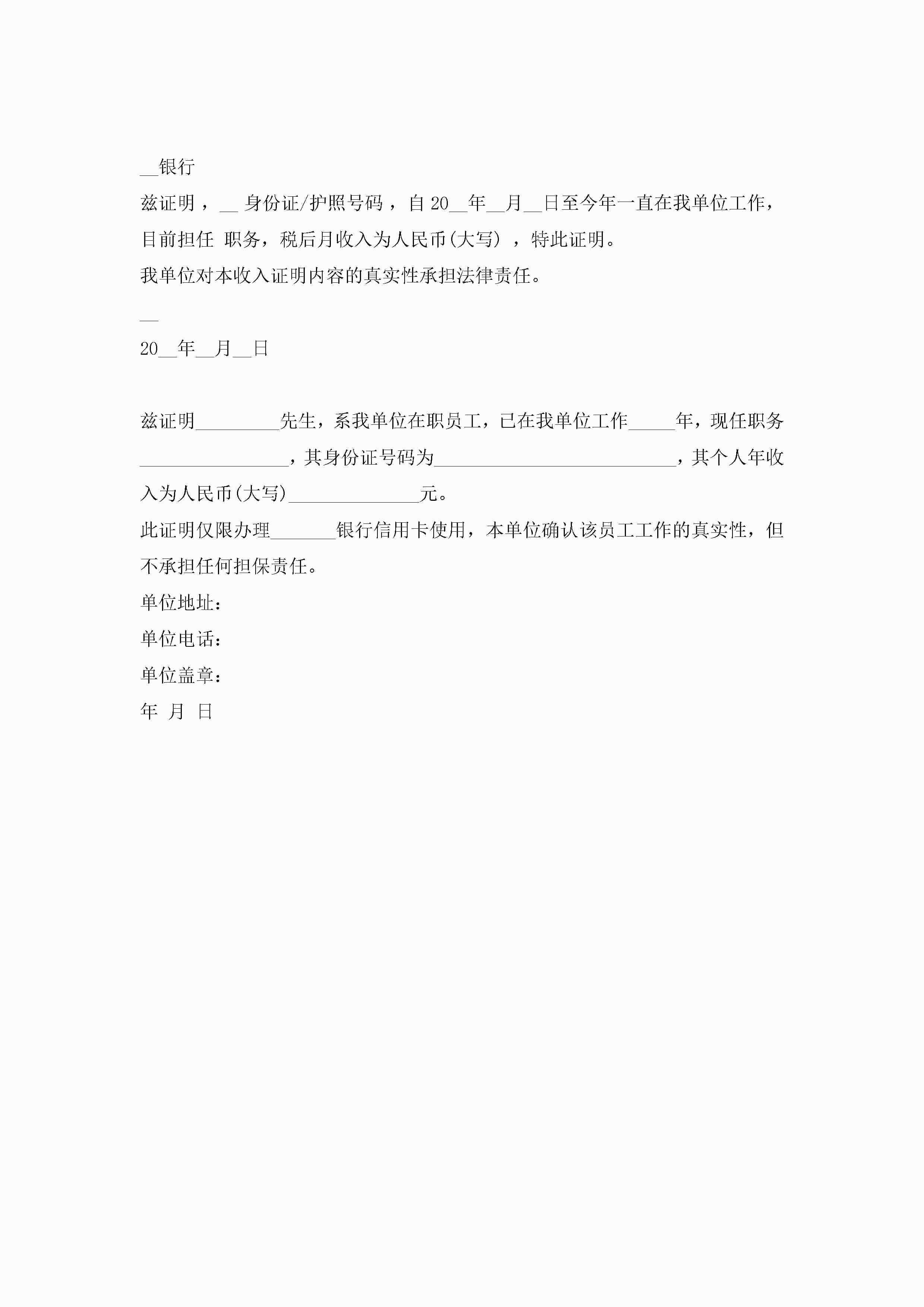 办信用卡工作证明10篇(精选)jugei3月22日 16:24发布关注198 办信用卡工作证明10篇(精选)此内容为付费资源,请付费后查看¥10.9 单篇文档限时特惠¥15个人会员开通企业会员开通立即下载无需登陆!可直接快捷下载单个模板付费资源© 版权声明THE ENDWord模板# 实用文档# 实用模板# 信函模板# 证明书 如有问题,可点击最底部“联系我们”联系客服 分享QQ空间微博QQ好友海报分享复制链接收藏