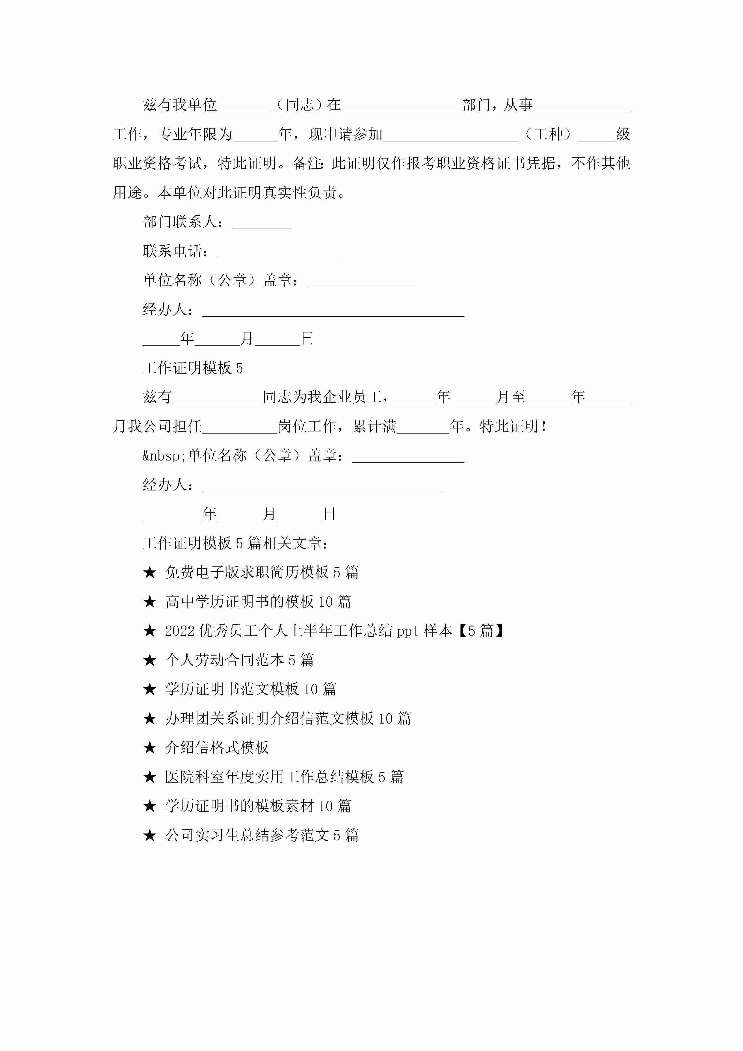 工作证明模板5篇范文jugei3月22日 16:24发布关注228 工作证明模板5篇范文此内容为付费资源,请付费后查看¥10.9 单篇文档限时特惠¥15个人会员开通企业会员开通立即下载无需登陆!可直接快捷下载单个模板付费资源© 版权声明THE ENDWord模板# 实用文档# 实用模板# 信函模板# 证明书 如有问题,可点击最底部“联系我们”联系客服 分享QQ空间微博QQ好友海报分享复制链接收藏