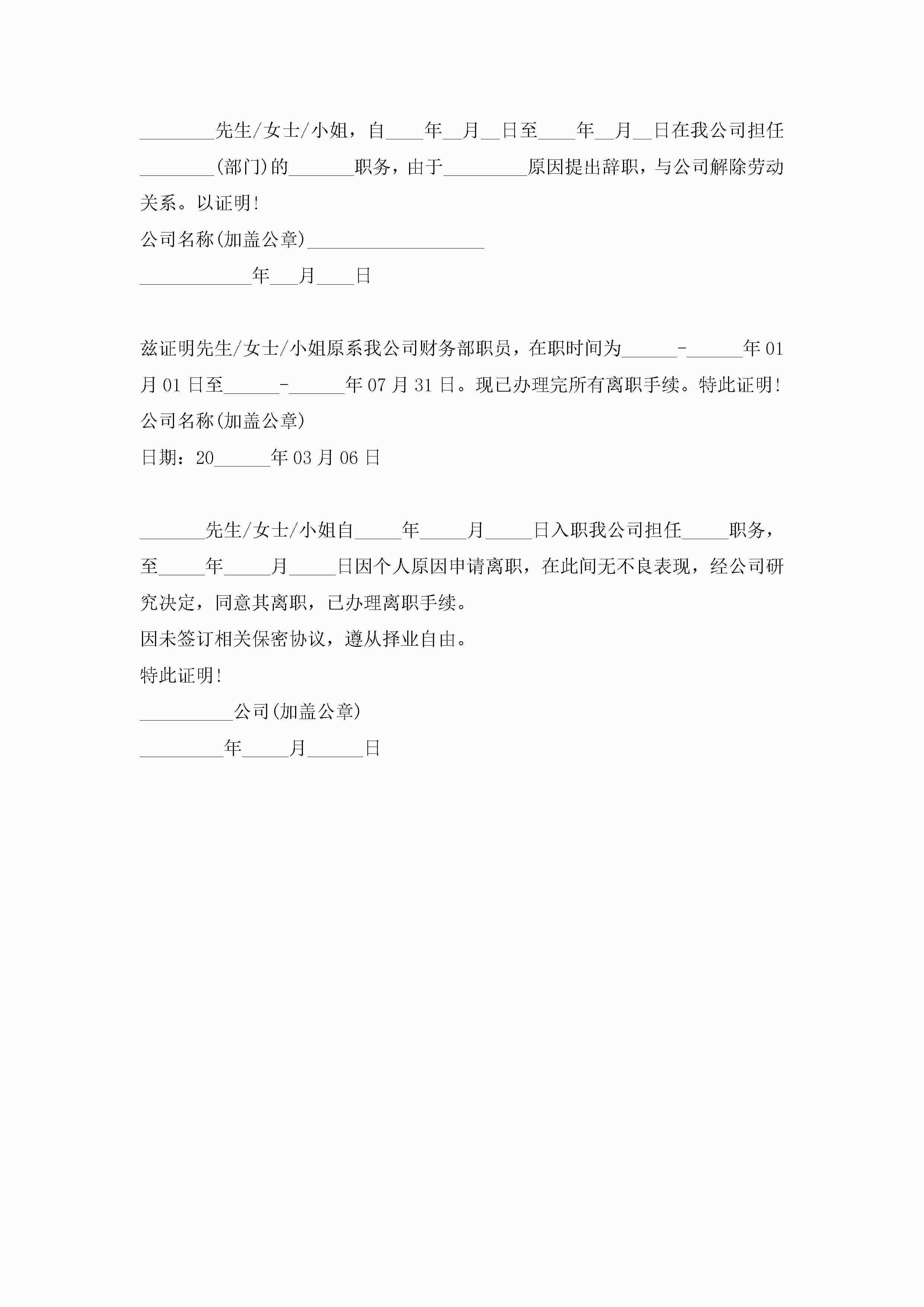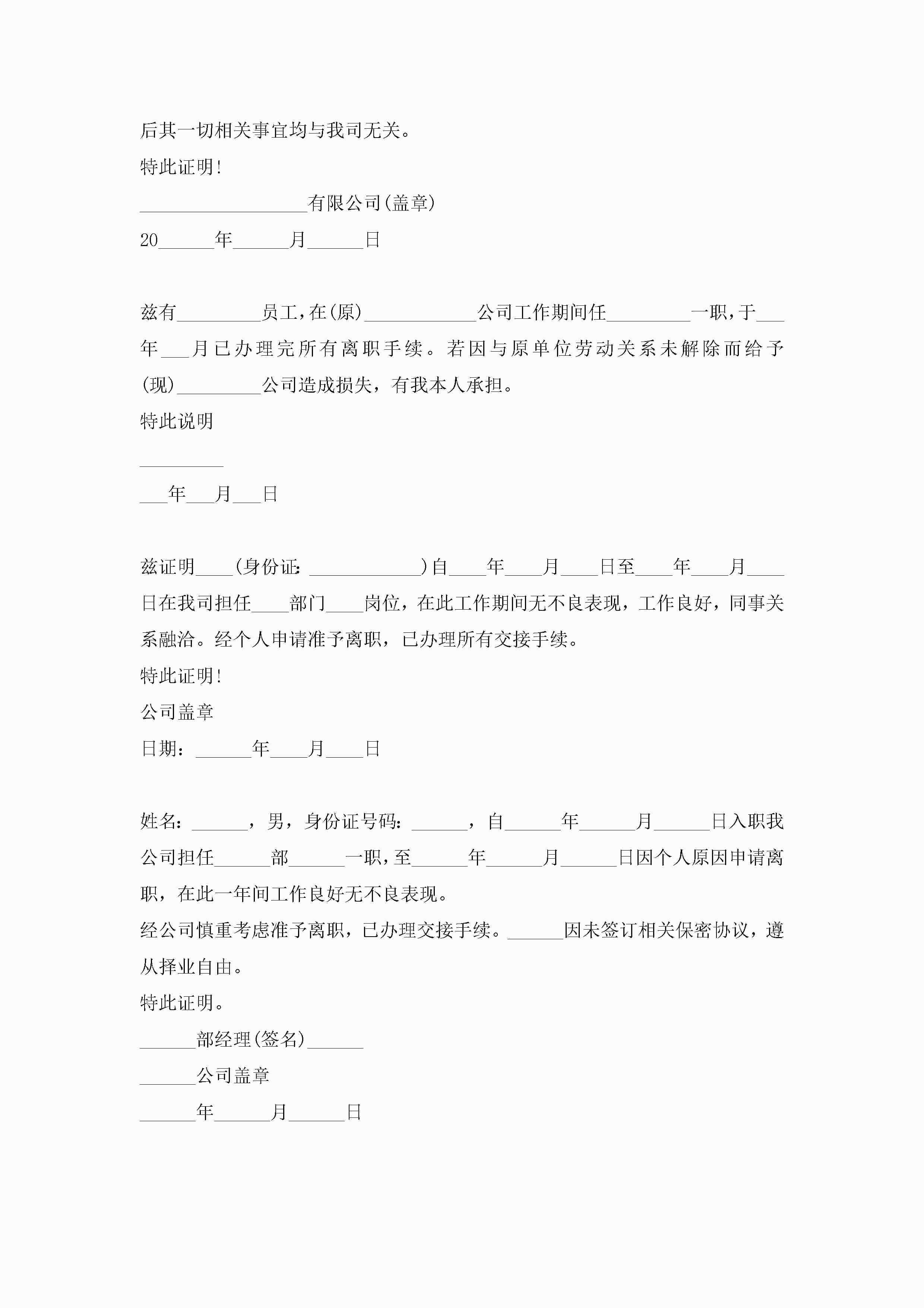 关于离职证明模板10篇(精选)jugei3月22日 16:24发布关注233 关于离职证明模板10篇(精选)此内容为付费资源,请付费后查看¥10.9 单篇文档限时特惠¥15个人会员开通企业会员开通立即下载无需登陆!可直接快捷下载单个模板付费资源© 版权声明THE ENDWord模板# 实用文档# 实用模板# 信函模板# 证明书 如有问题,可点击最底部“联系我们”联系客服 分享QQ空间微博QQ好友海报分享复制链接收藏