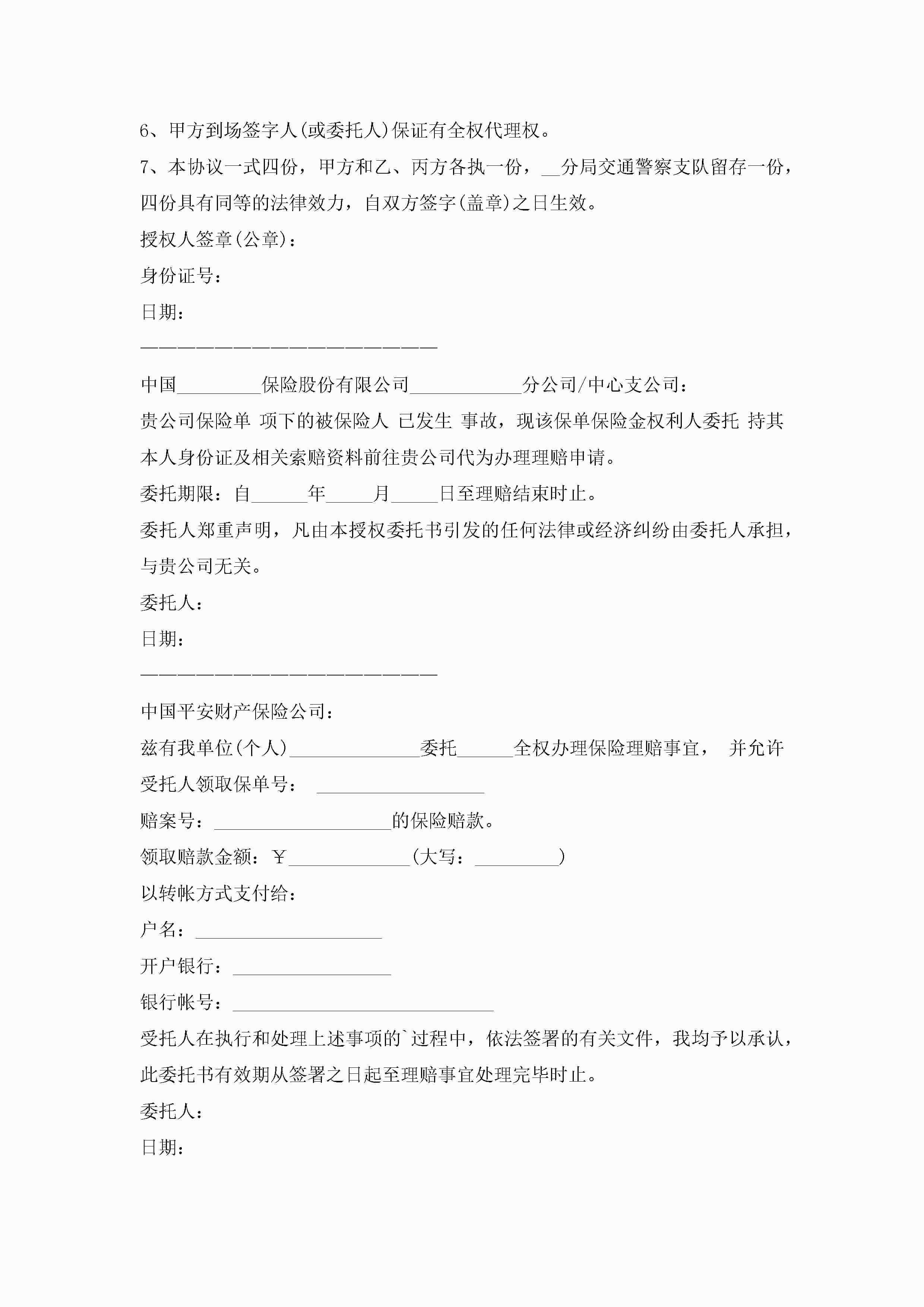 保险公司理赔款委托书2023范本8篇jugei3月22日 16:24发布关注328 保险公司理赔款委托书2023范本8篇此内容为付费资源,请付费后查看¥10.9 单篇文档限时特惠¥15个人会员开通企业会员开通立即下载无需登陆!可直接快捷下载单个模板付费资源© 版权声明THE ENDWord模板# 实用文档# 实用模板# 信函模板# 委托书 如有问题,可点击最底部“联系我们”联系客服 分享QQ空间微博QQ好友海报分享复制链接收藏