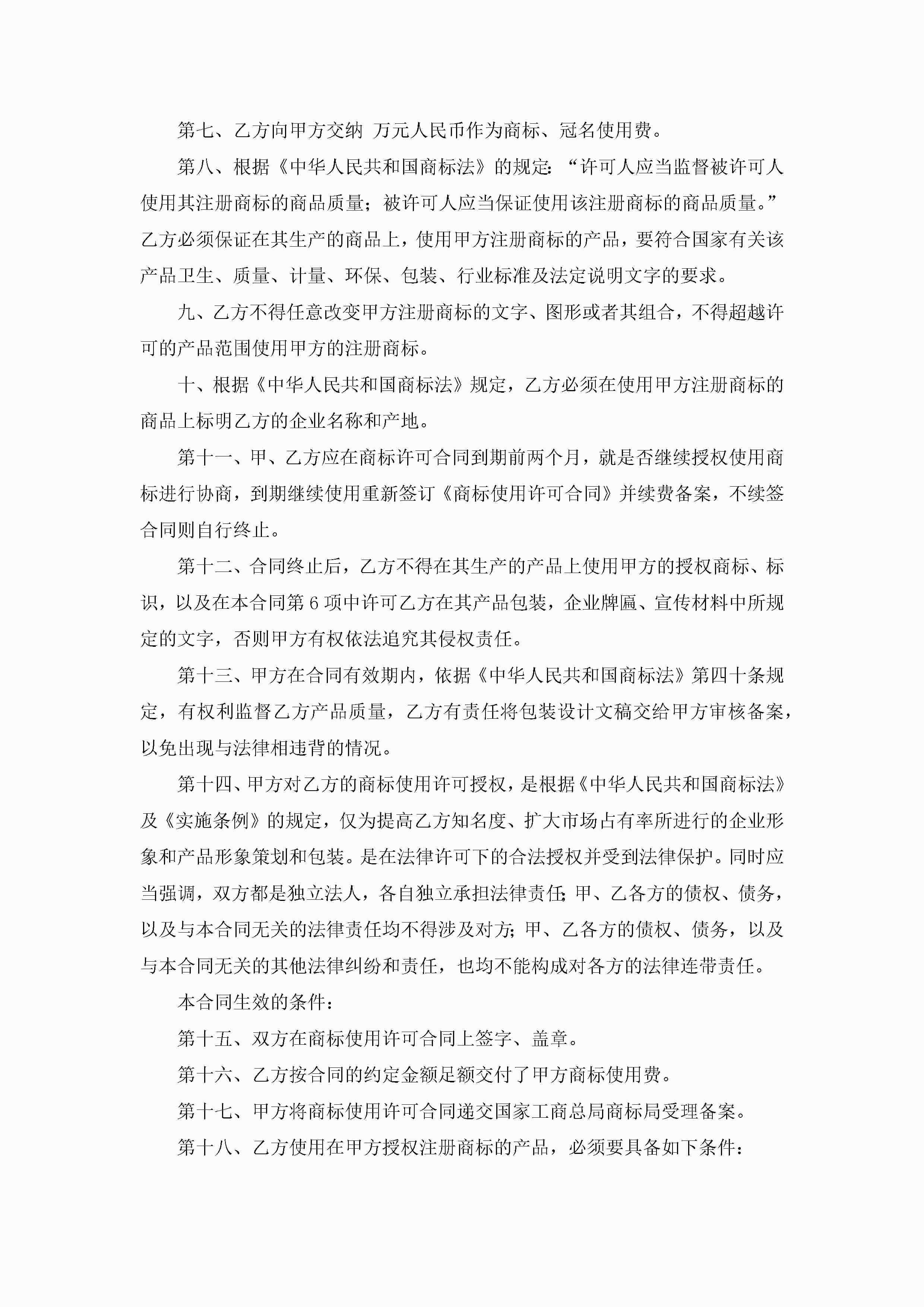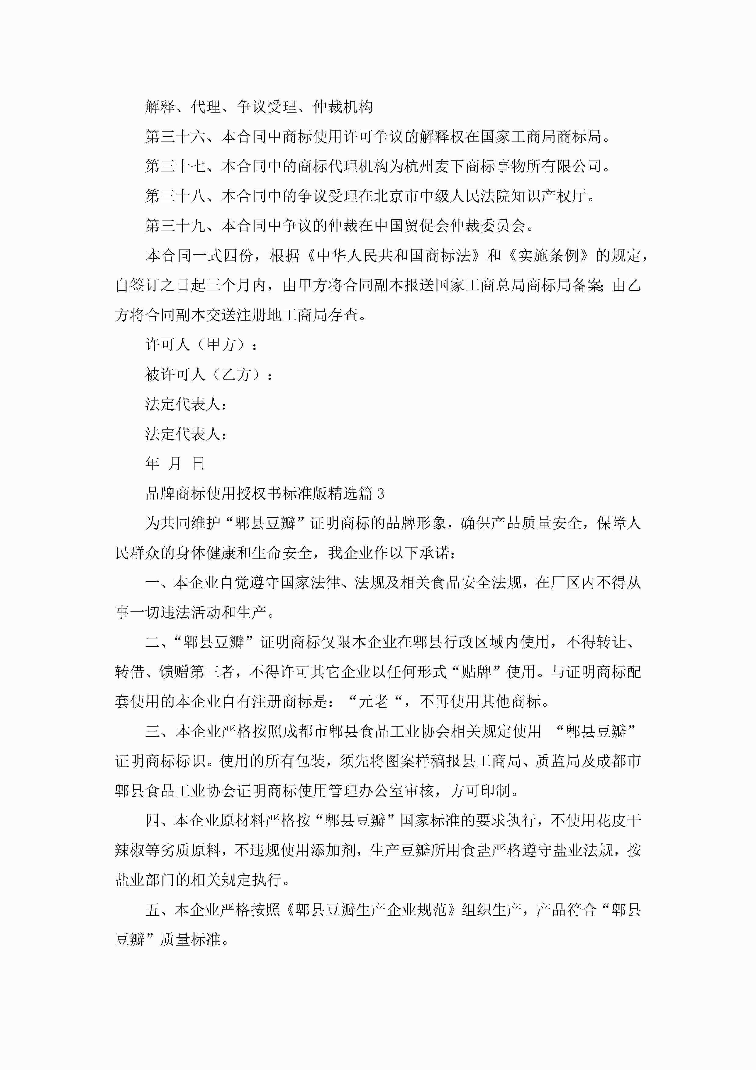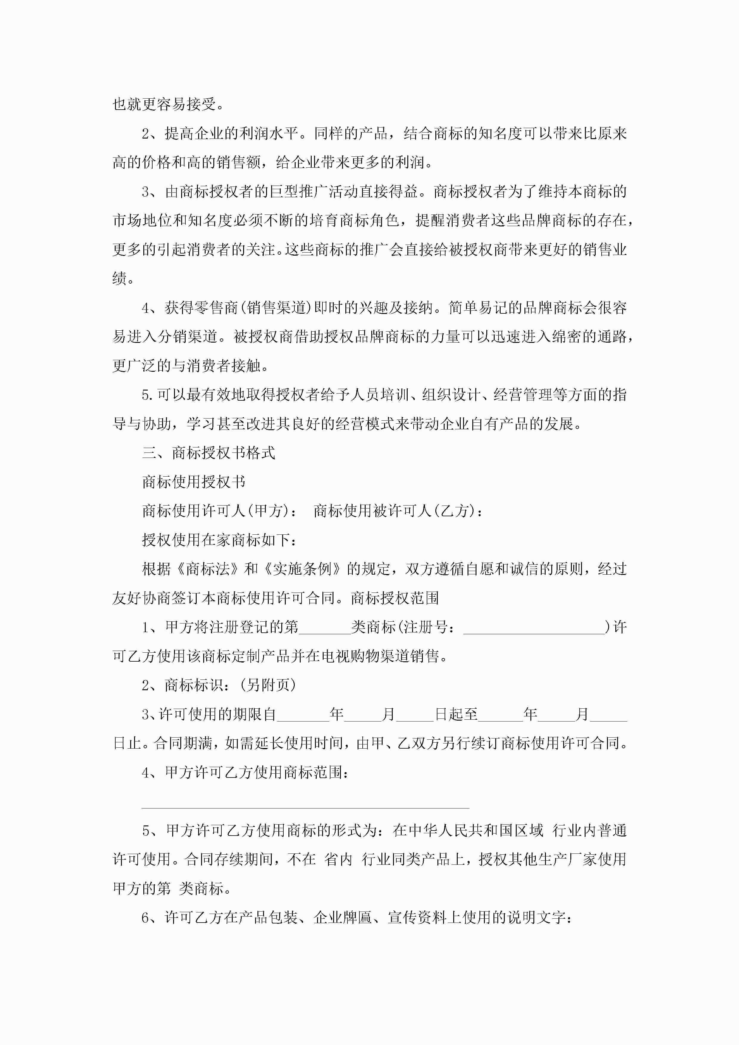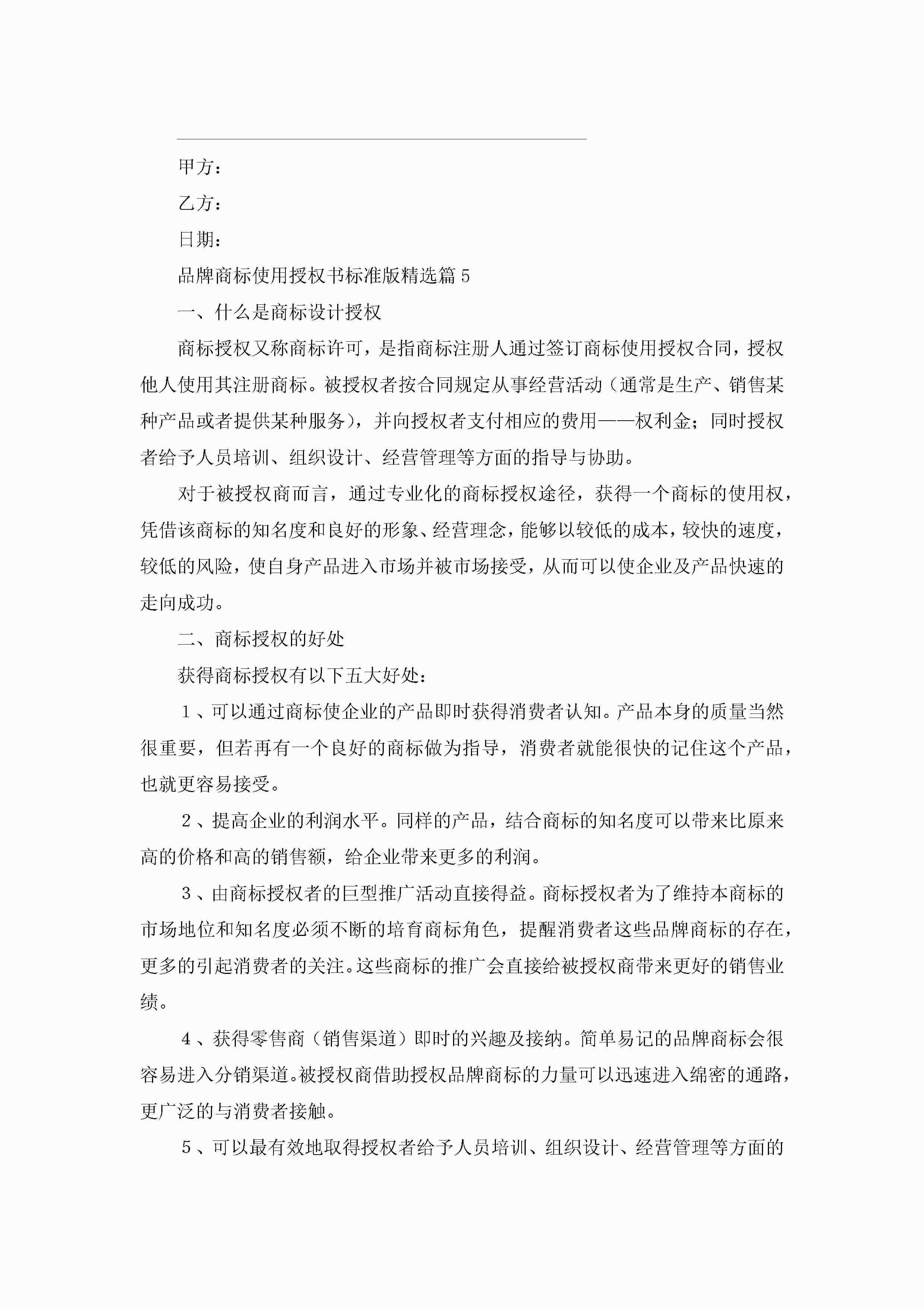 品牌商标使用授权书标准版(精选7篇)jugei3月22日 16:24发布关注285 品牌商标使用授权书标准版(精选7篇)此内容为付费资源,请付费后查看¥10.9 单篇文档限时特惠¥15个人会员开通企业会员开通立即下载无需登陆!可直接快捷下载单个模板付费资源© 版权声明THE ENDWord模板# 实用文档# 实用模板# 信函模板# 委托书 如有问题,可点击最底部“联系我们”联系客服 分享QQ空间微博QQ好友海报分享复制链接收藏