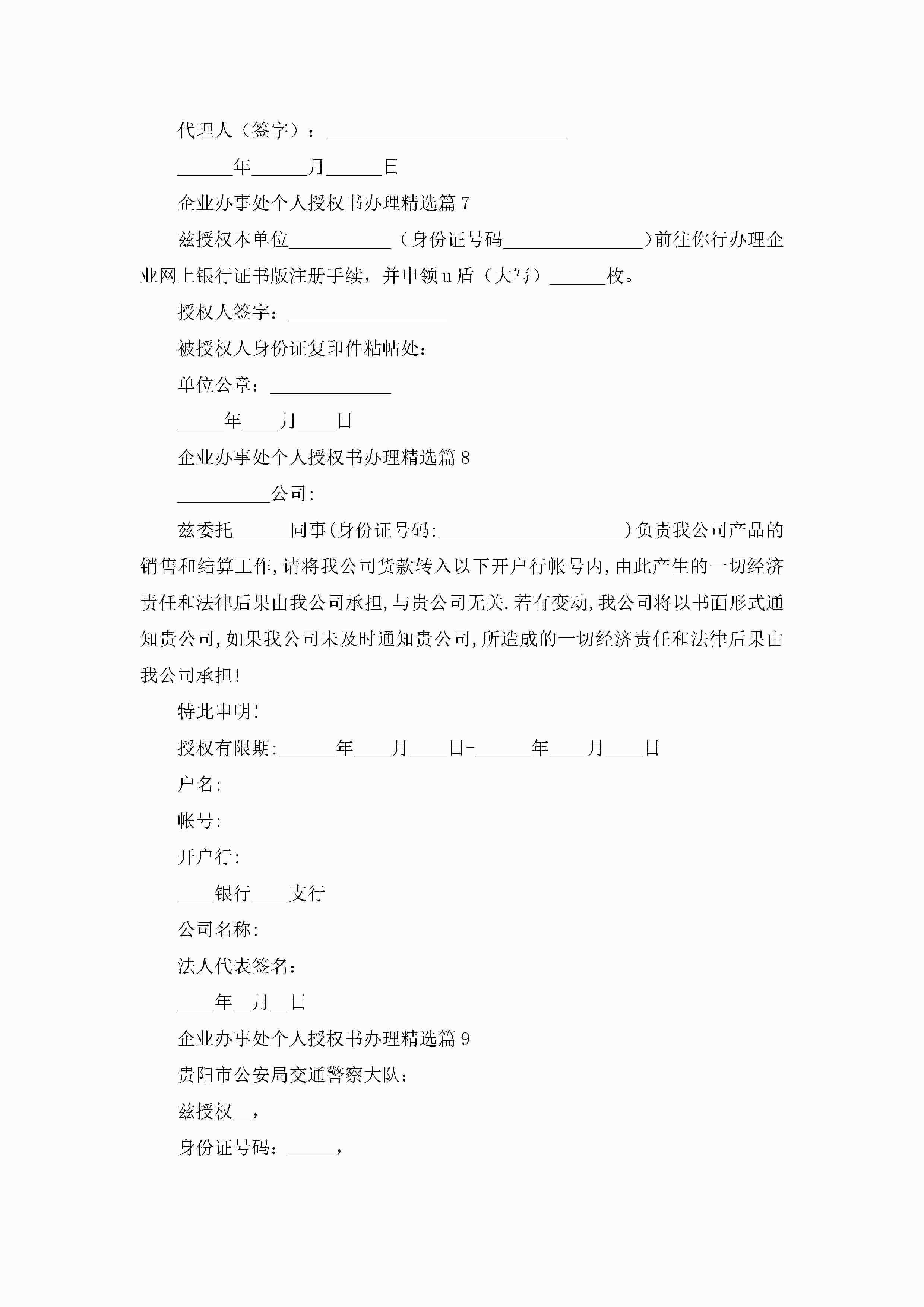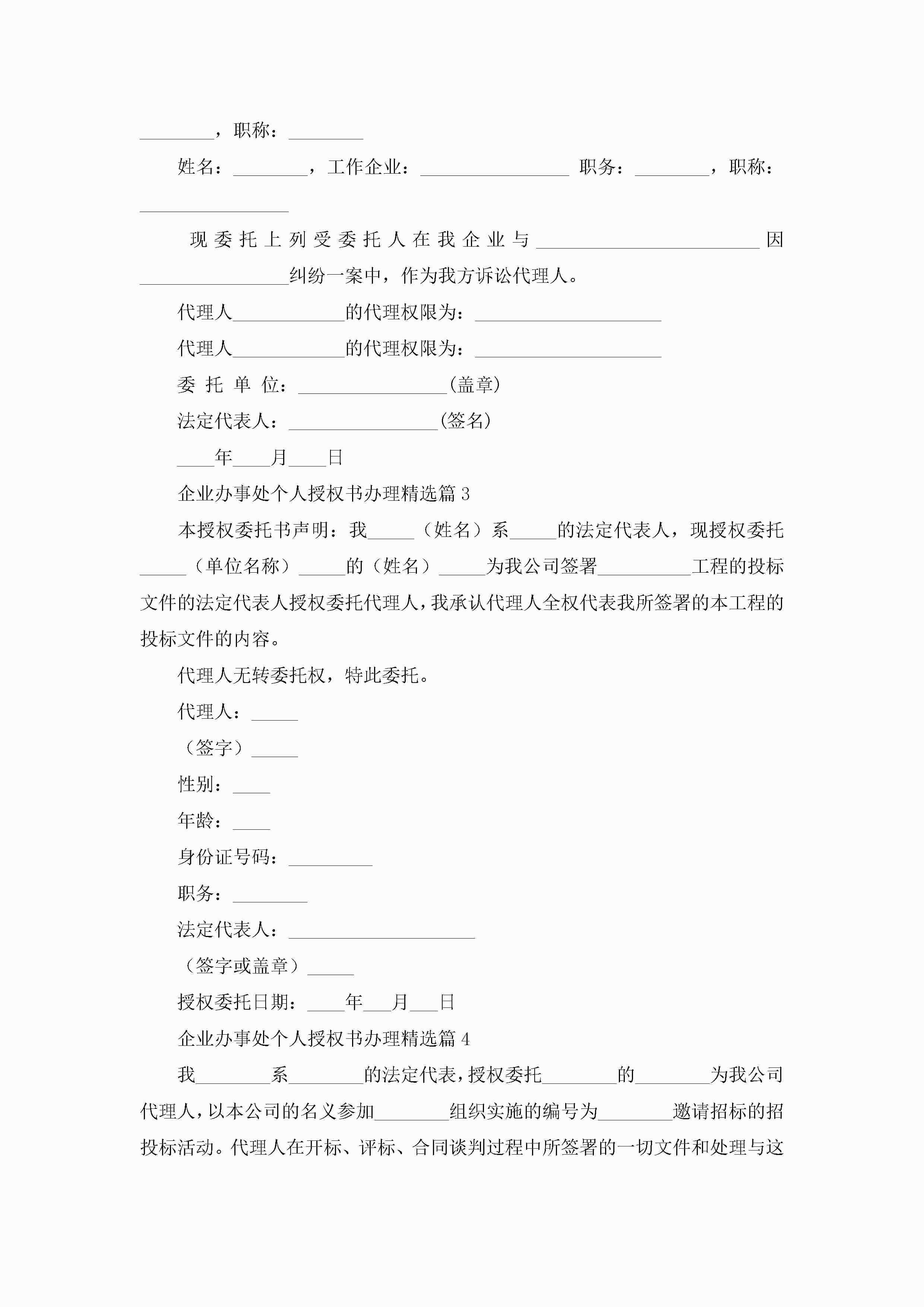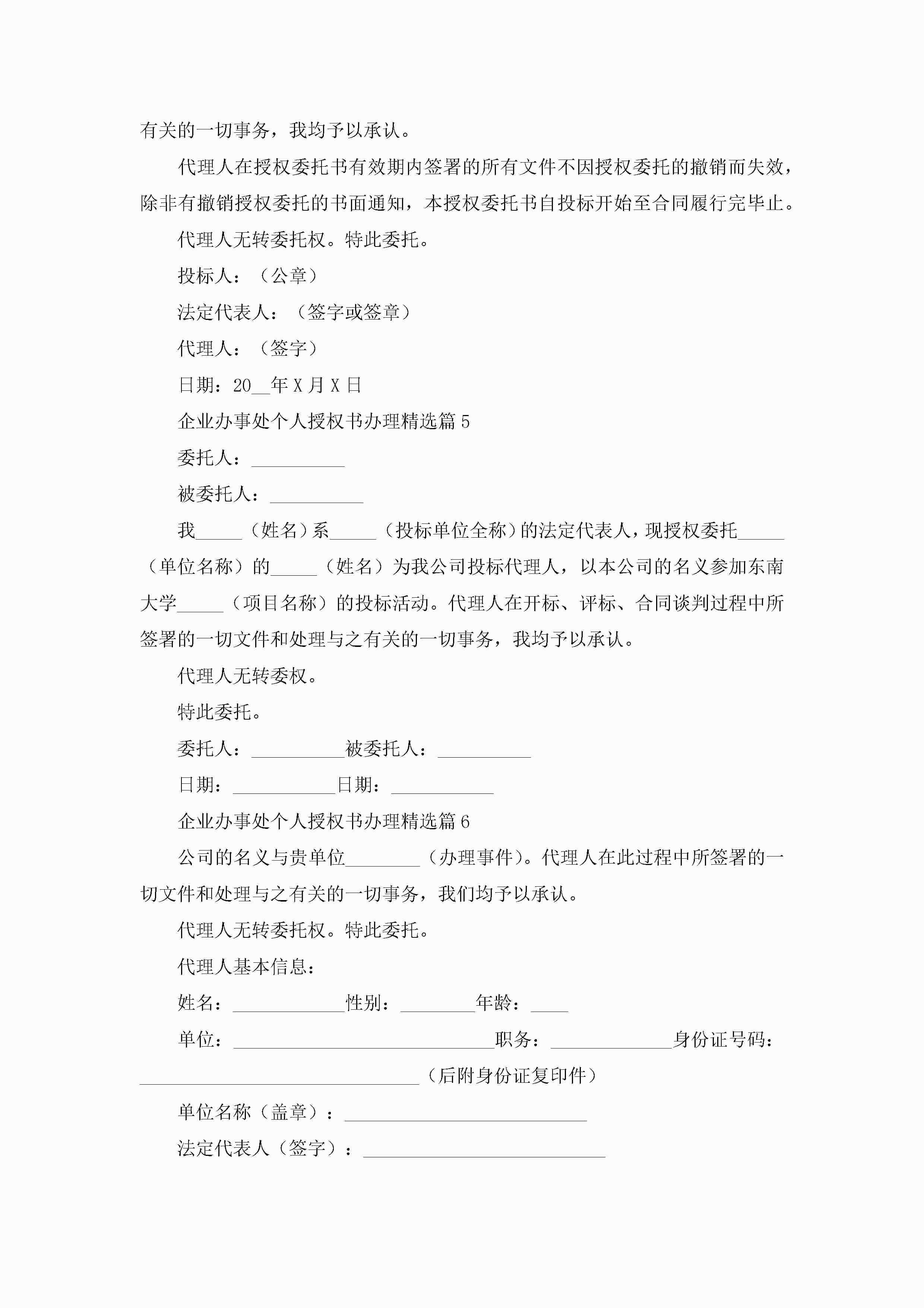 企业办事处个人授权书办理(精选10篇)jugei3月22日 16:24发布关注285 企业办事处个人授权书办理(精选10篇)此内容为付费资源,请付费后查看¥10.9 单篇文档限时特惠¥15个人会员开通企业会员开通立即下载无需登陆!可直接快捷下载单个模板付费资源© 版权声明THE ENDWord模板# 实用文档# 实用模板# 信函模板# 委托书 如有问题,可点击最底部“联系我们”联系客服 分享QQ空间微博QQ好友海报分享复制链接收藏
