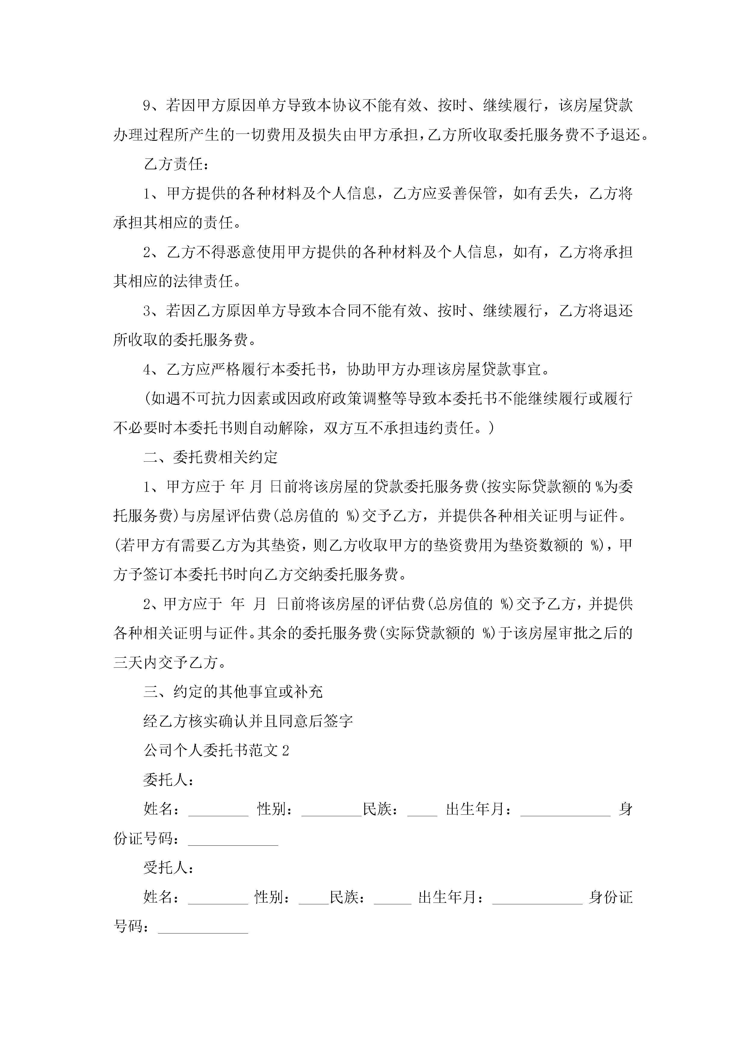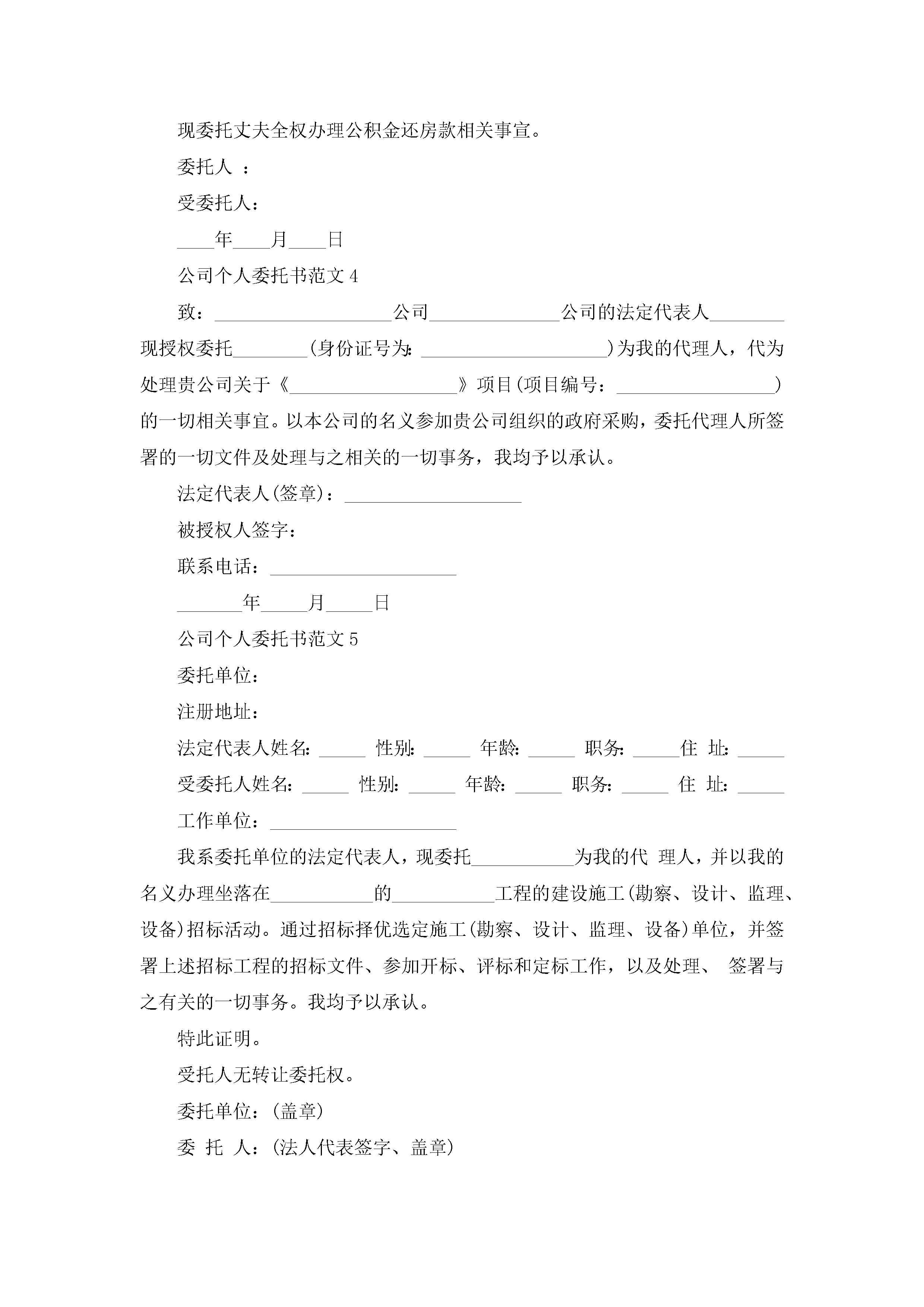 公司个人委托书范文5篇jugei3月22日 16:24发布关注227 公司个人委托书范文5篇此内容为付费资源,请付费后查看¥10.9 单篇文档限时特惠¥15个人会员开通企业会员开通立即下载无需登陆!可直接快捷下载单个模板付费资源© 版权声明THE ENDWord模板# 实用文档# 实用模板# 信函模板# 委托书 如有问题,可点击最底部“联系我们”联系客服 分享QQ空间微博QQ好友海报分享复制链接收藏