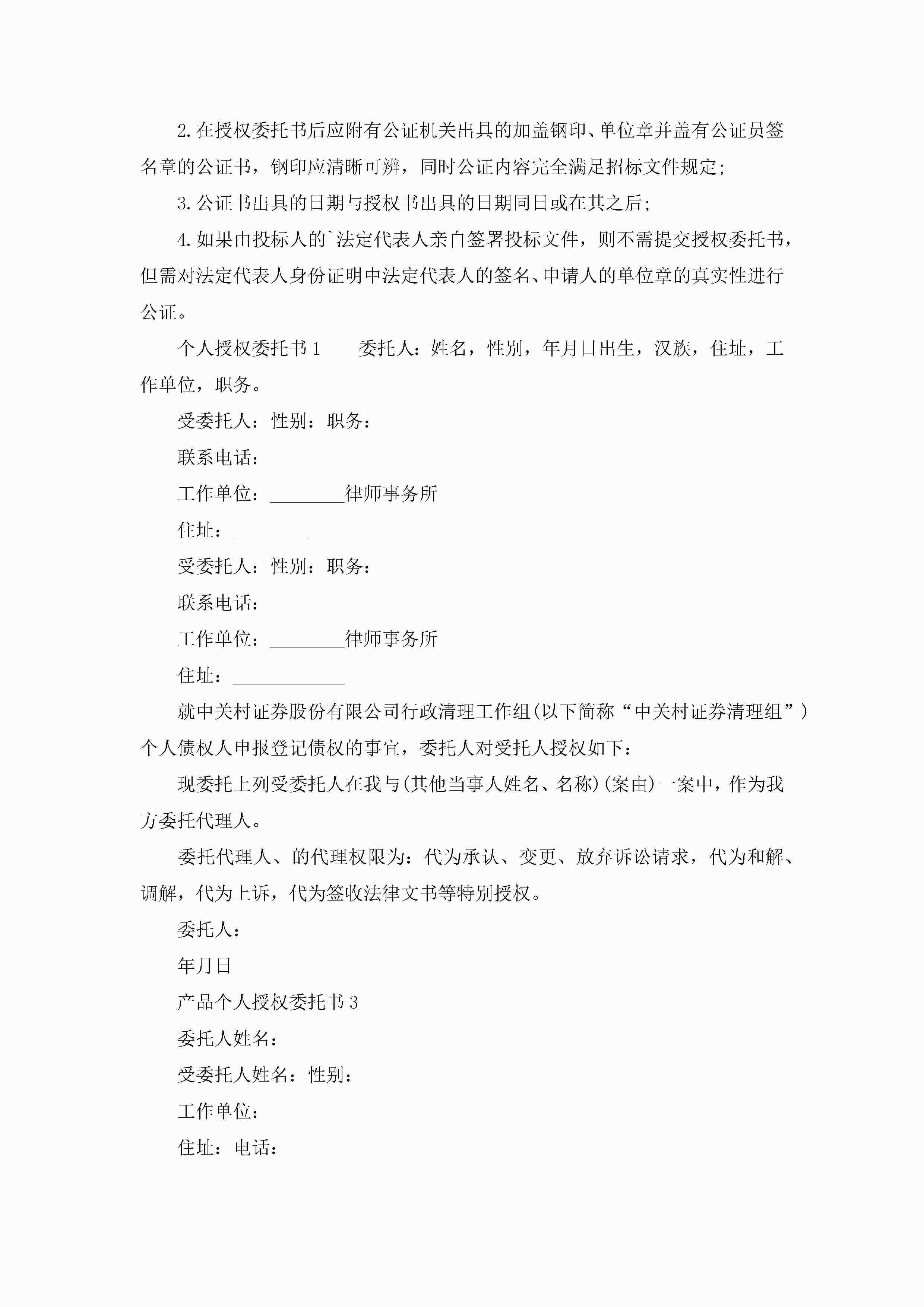 关于产品个人授权委托书9篇jugei3月22日 16:24发布关注276 关于产品个人授权委托书9篇此内容为付费资源,请付费后查看¥10.9 单篇文档限时特惠¥15个人会员开通企业会员开通立即下载无需登陆!可直接快捷下载单个模板付费资源© 版权声明THE ENDWord模板# 实用文档# 实用模板# 信函模板# 委托书 如有问题,可点击最底部“联系我们”联系客服 分享QQ空间微博QQ好友海报分享复制链接收藏