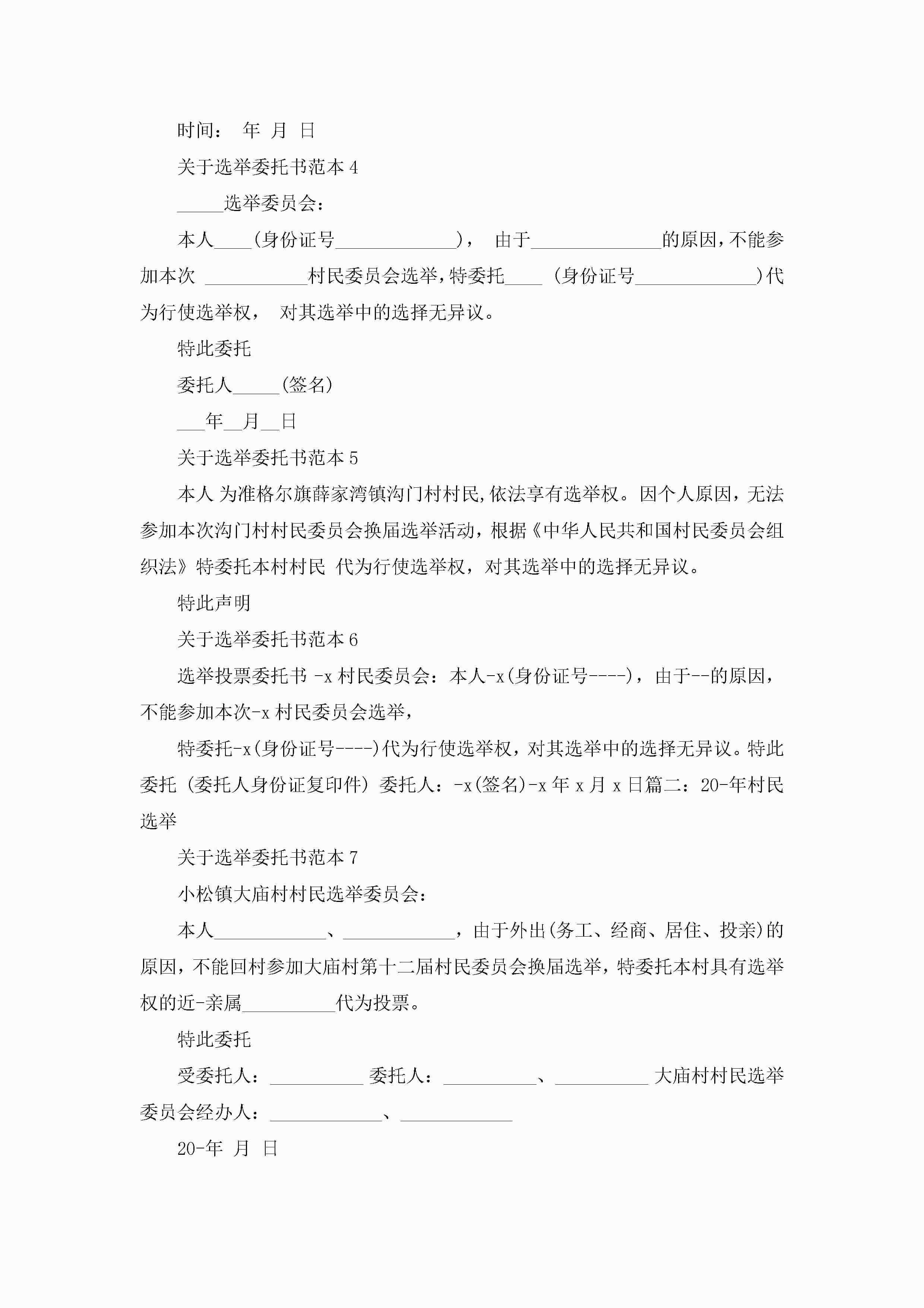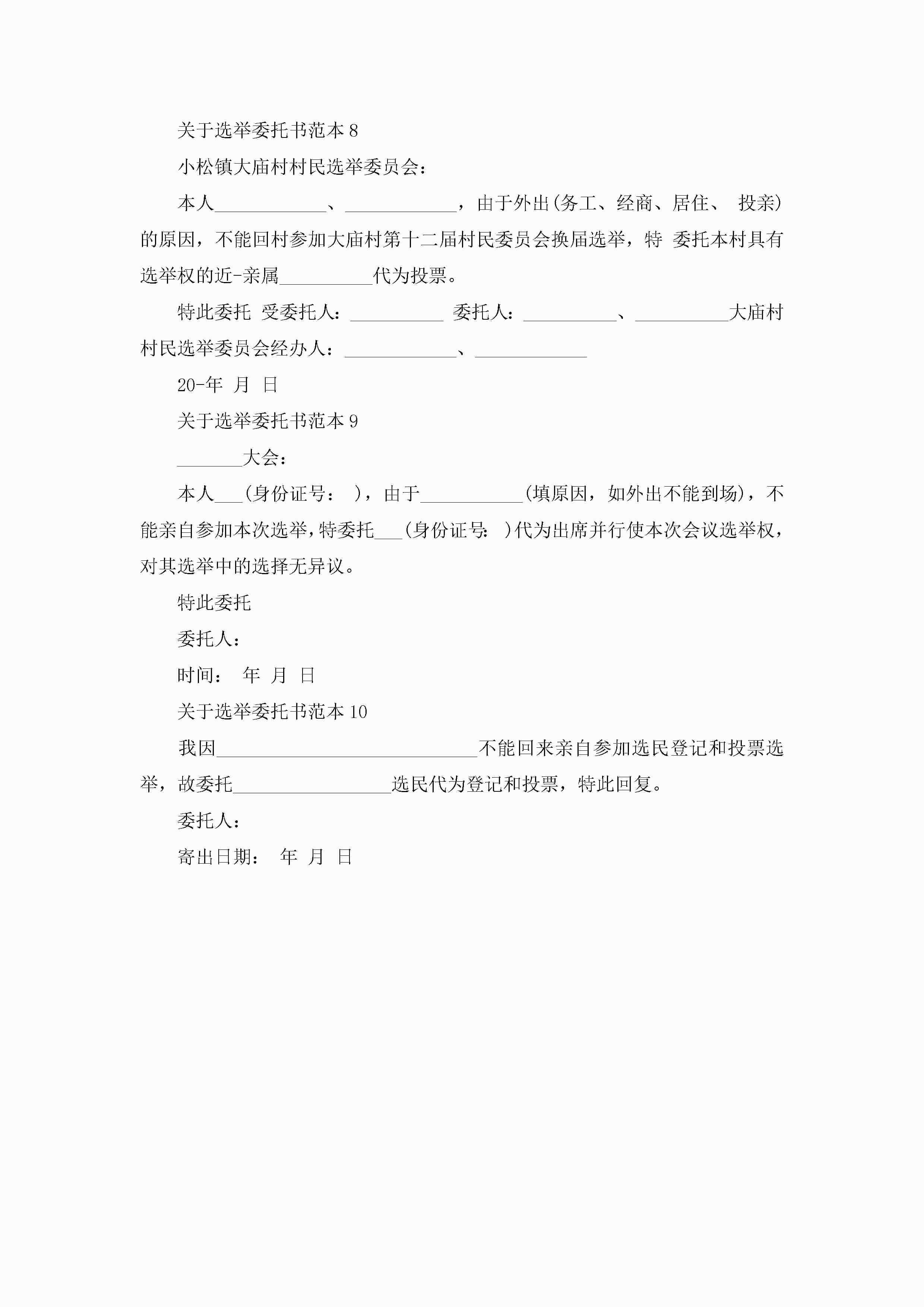 关于选举委托书范本大全10篇jugei3月22日 16:24发布关注229 关于选举委托书范本大全10篇此内容为付费资源,请付费后查看¥10.9 单篇文档限时特惠¥15个人会员开通企业会员开通立即下载无需登陆!可直接快捷下载单个模板付费资源© 版权声明THE ENDWord模板# 实用文档# 实用模板# 信函模板# 委托书 如有问题,可点击最底部“联系我们”联系客服 分享QQ空间微博QQ好友海报分享复制链接收藏