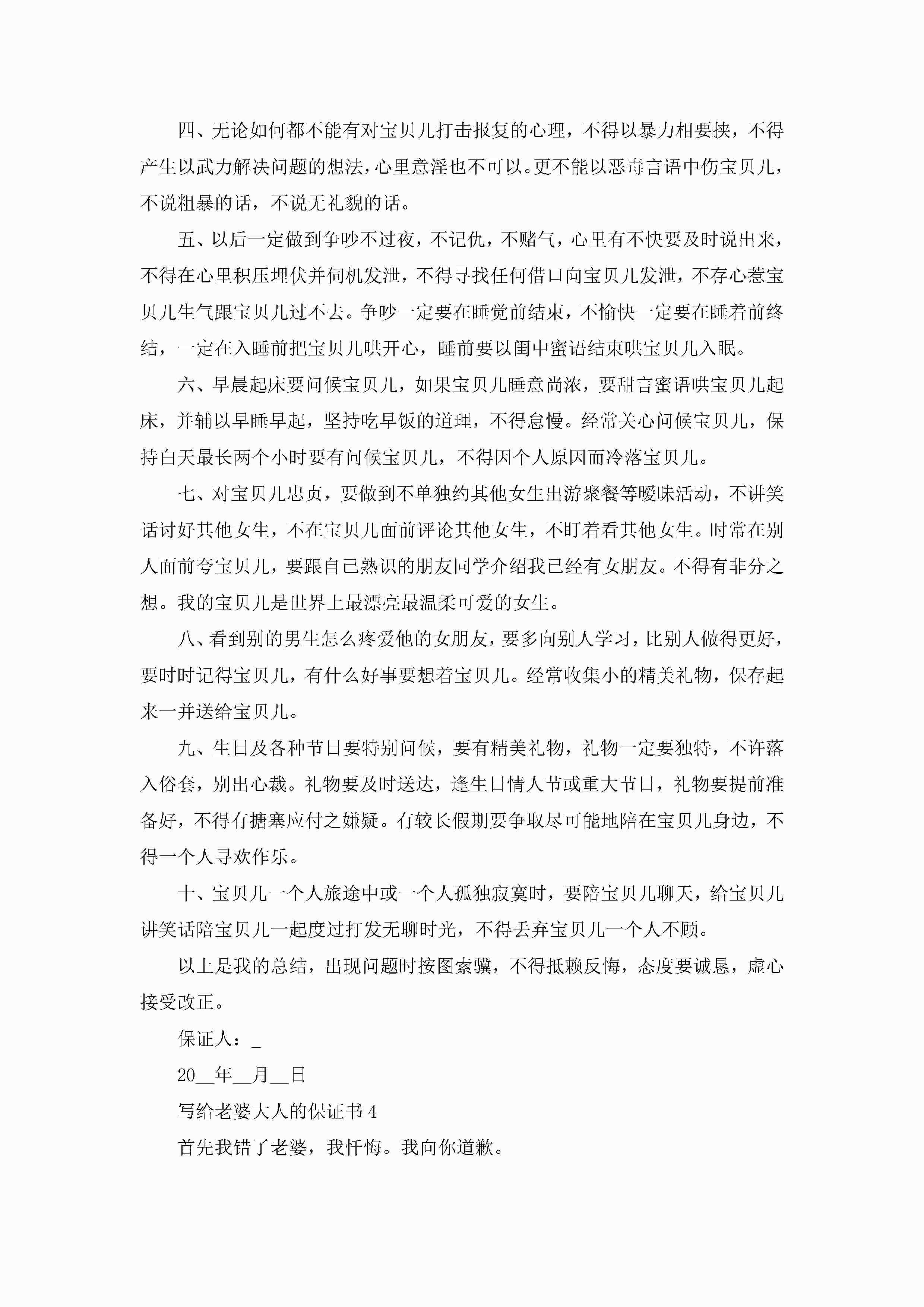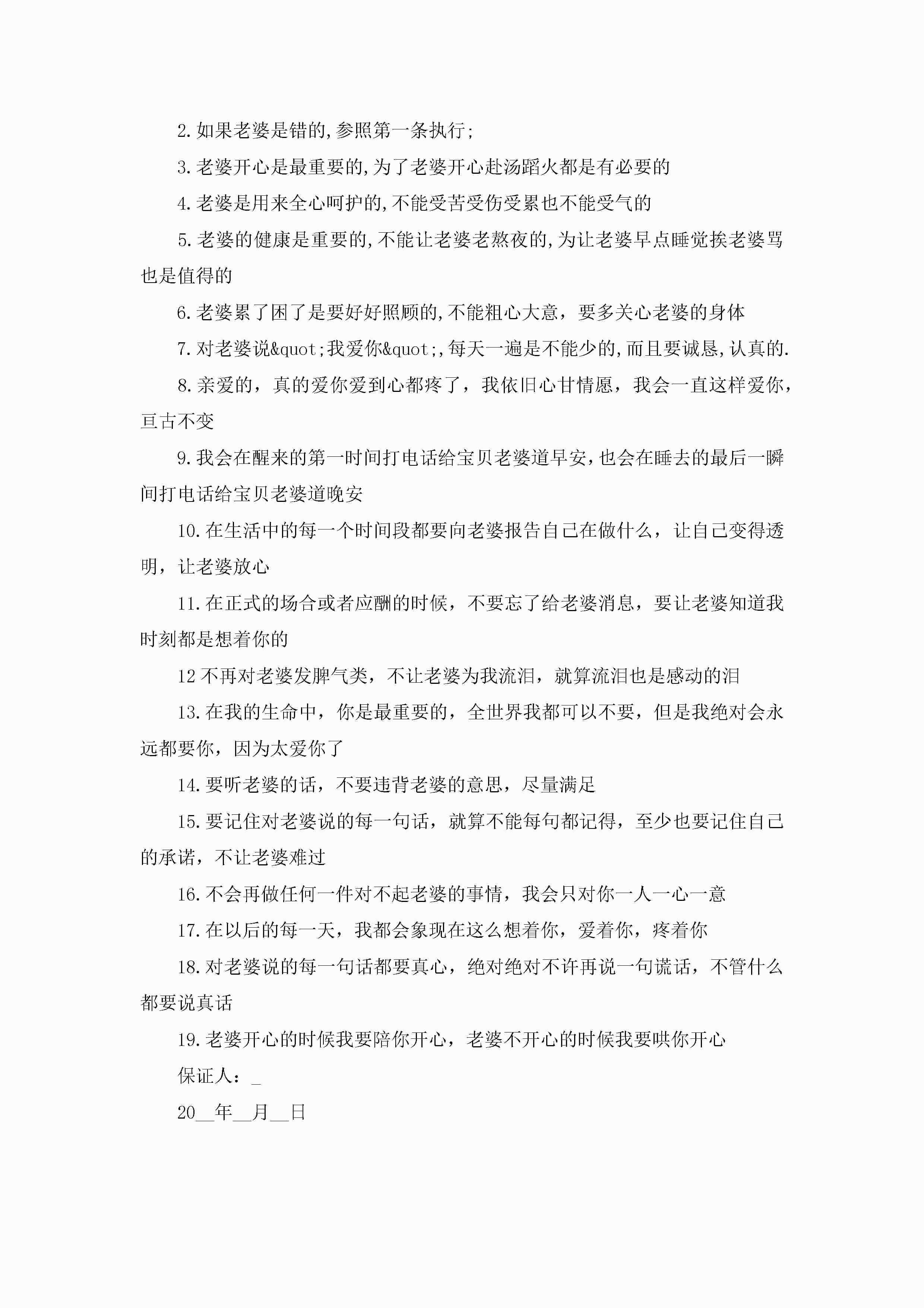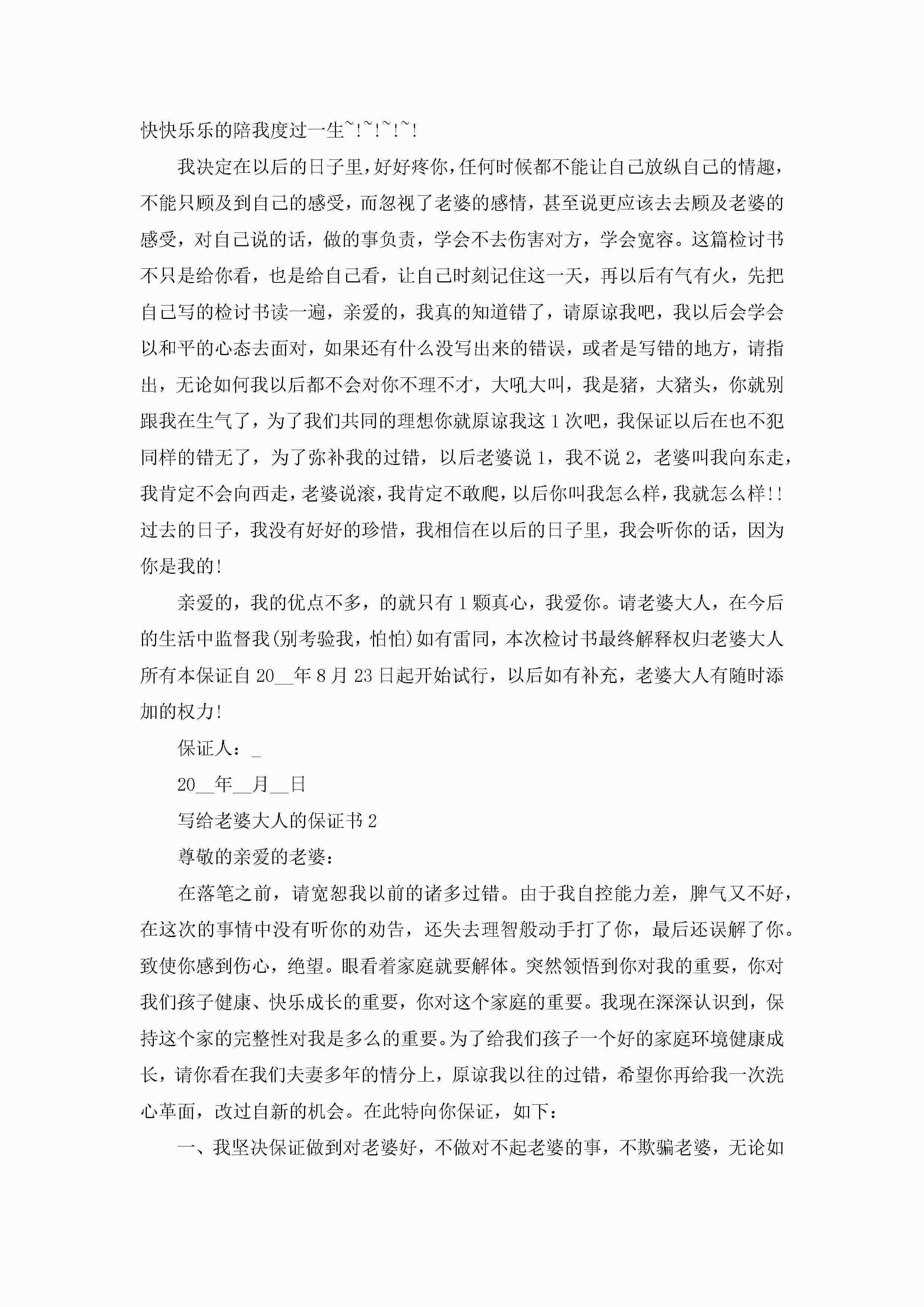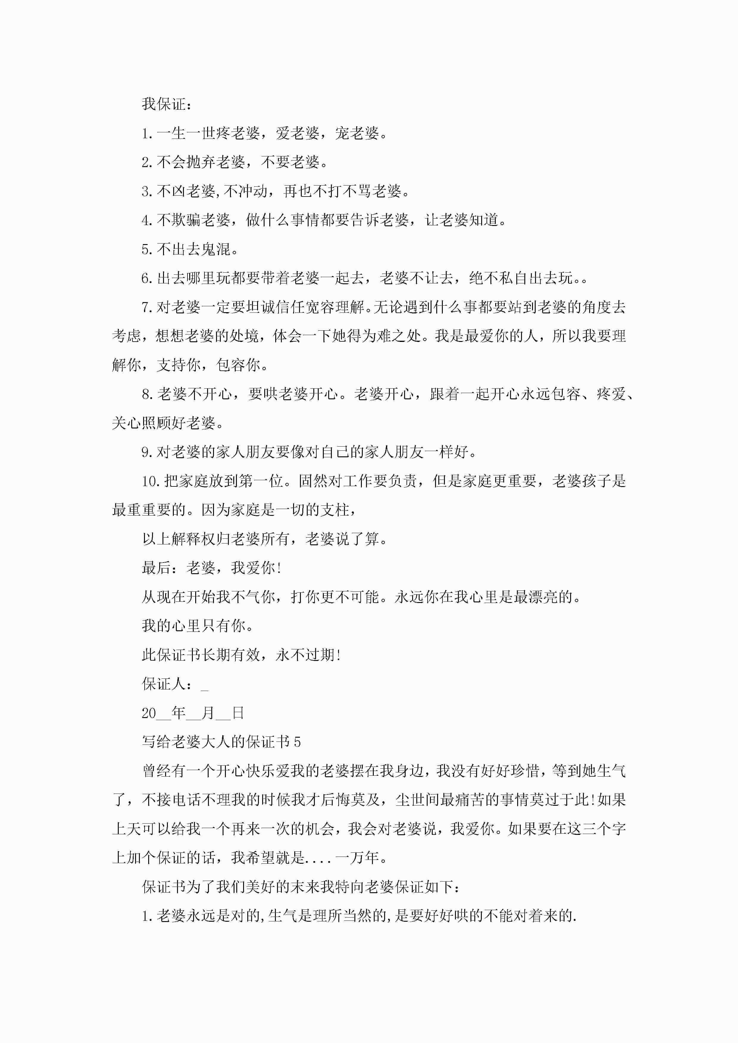 写给老婆大人的保证书5篇jugei3月22日 16:24发布关注244 写给老婆大人的保证书5篇此内容为付费资源,请付费后查看¥10.9 单篇文档限时特惠¥15个人会员开通企业会员开通立即下载无需登陆!可直接快捷下载单个模板付费资源© 版权声明THE ENDWord模板# 实用文档# 实用模板# 信函模板# 保证书 如有问题,可点击最底部“联系我们”联系客服 分享QQ空间微博QQ好友海报分享复制链接收藏