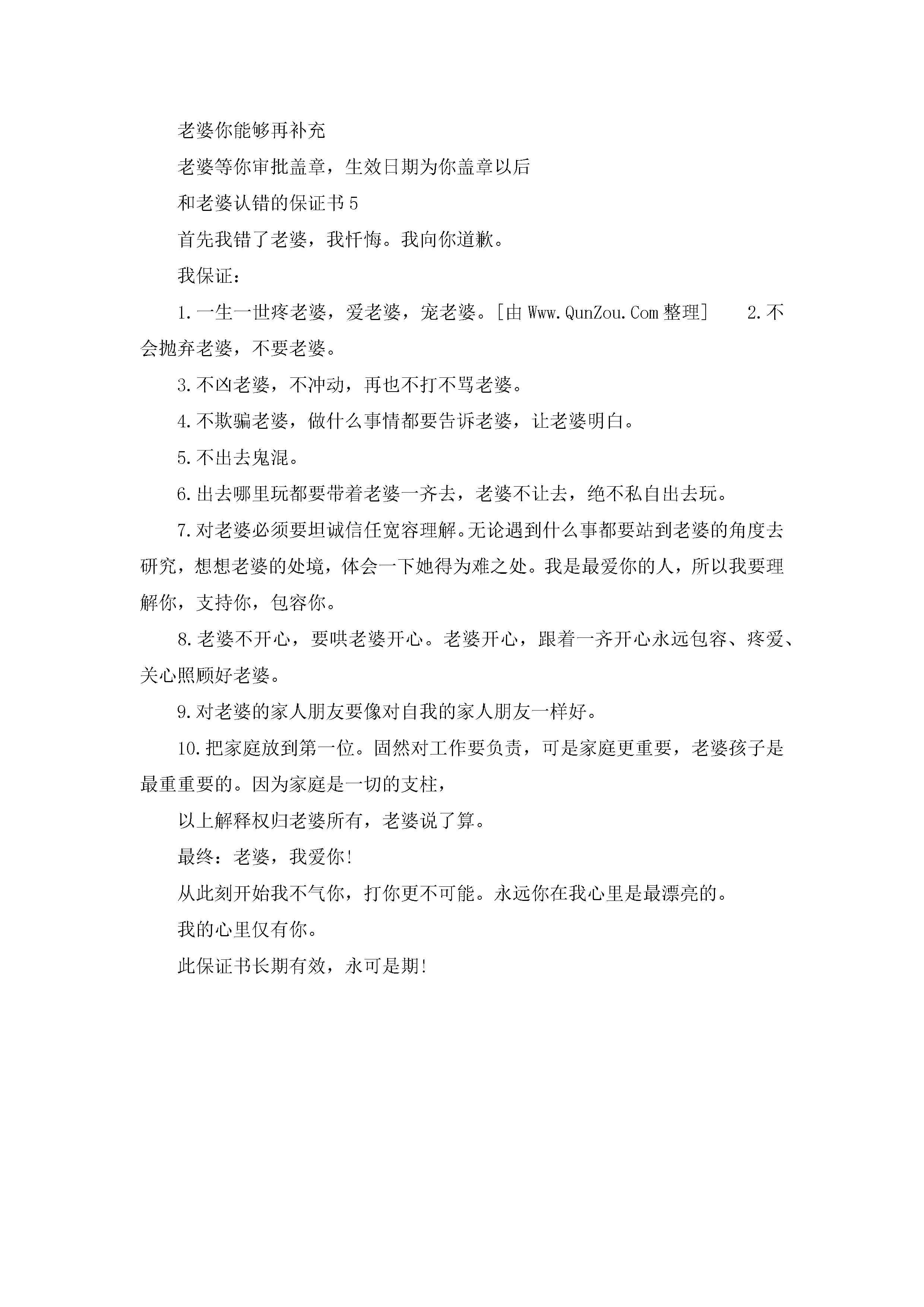 和老婆认错的保证书5篇jugei3月22日 16:24发布关注206 和老婆认错的保证书5篇此内容为付费资源,请付费后查看¥10.9 单篇文档限时特惠¥15个人会员开通企业会员开通立即下载无需登陆!可直接快捷下载单个模板付费资源© 版权声明THE ENDWord模板# 实用文档# 实用模板# 信函模板# 保证书 如有问题,可点击最底部“联系我们”联系客服 分享QQ空间微博QQ好友海报分享复制链接收藏