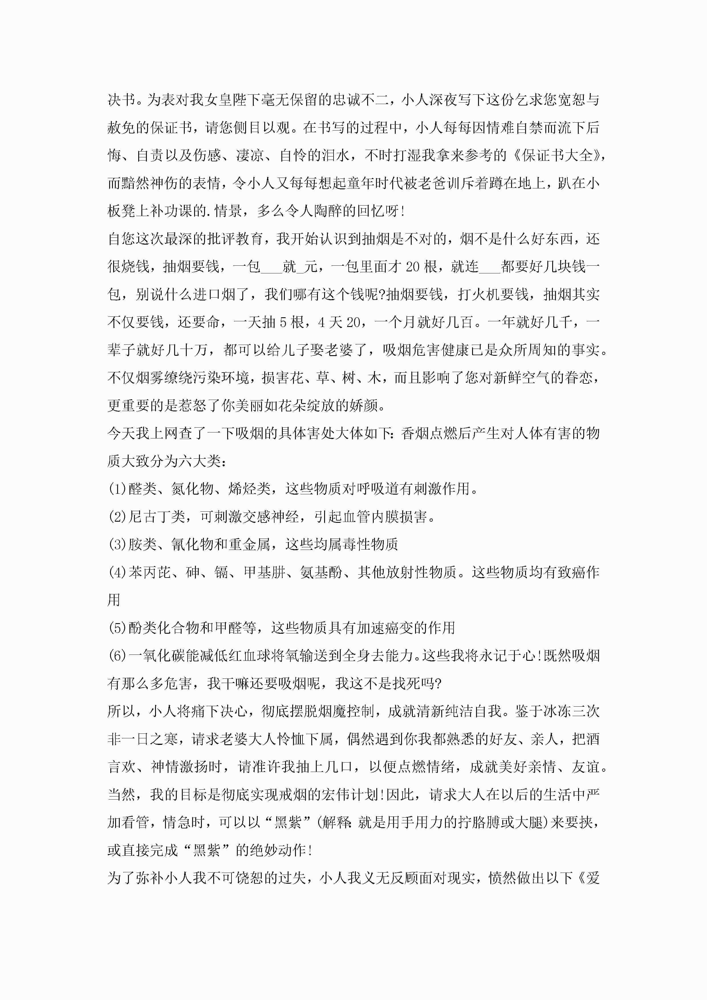 有关于不吸烟保证书5篇jugei3月22日 16:24发布关注197 有关于不吸烟保证书5篇此内容为付费资源,请付费后查看¥10.9 单篇文档限时特惠¥15个人会员开通企业会员开通立即下载无需登陆!可直接快捷下载单个模板付费资源© 版权声明THE ENDWord模板# 实用文档# 实用模板# 信函模板# 保证书 如有问题,可点击最底部“联系我们”联系客服 分享QQ空间微博QQ好友海报分享复制链接收藏