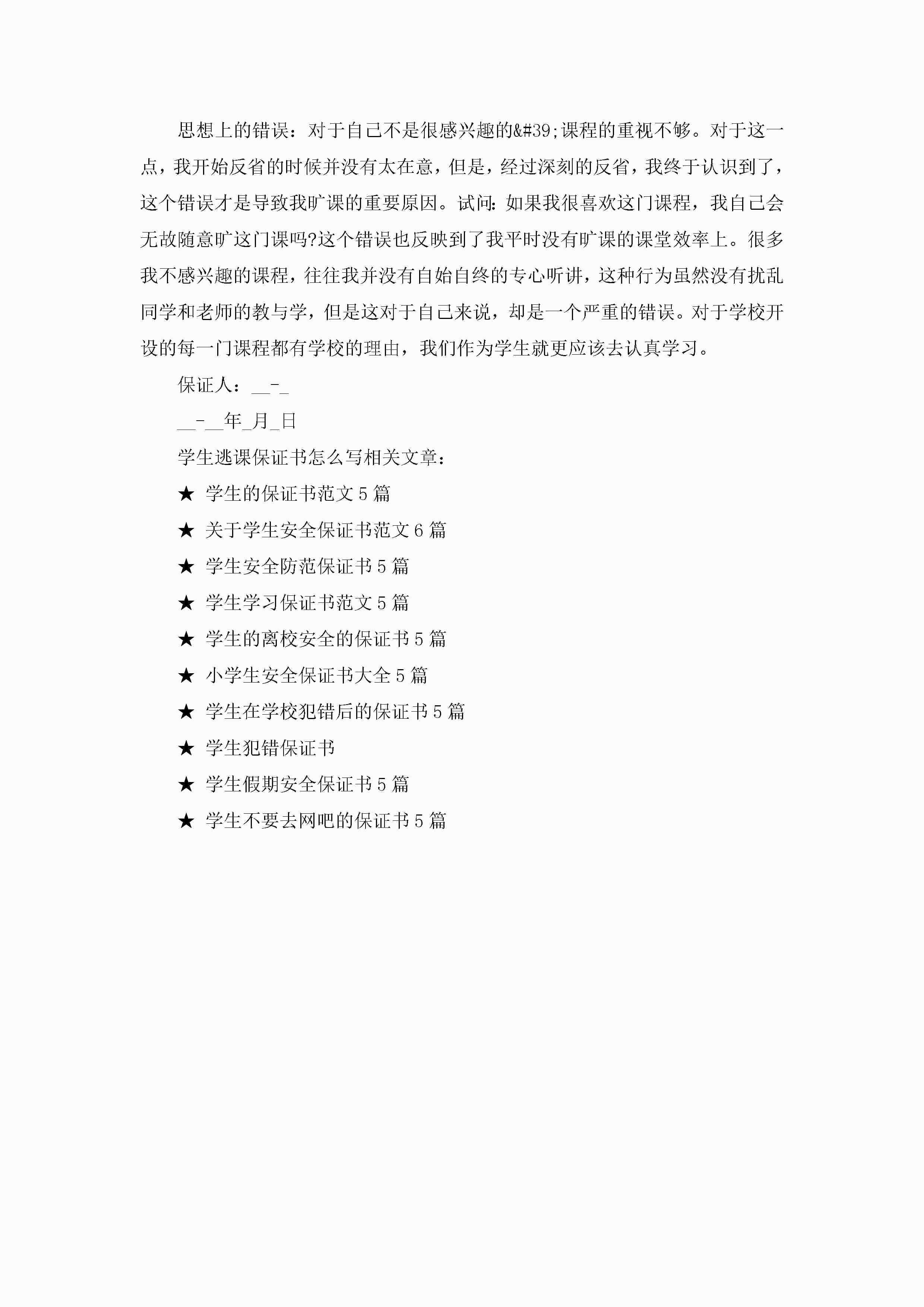 学生逃课保证书怎么写范文jugei3月22日 16:24发布关注195 学生逃课保证书怎么写范文此内容为付费资源,请付费后查看¥10.9 单篇文档限时特惠¥15个人会员开通企业会员开通立即下载无需登陆!可直接快捷下载单个模板付费资源© 版权声明THE ENDWord模板# 实用文档# 实用模板# 信函模板# 保证书 如有问题,可点击最底部“联系我们”联系客服 分享QQ空间微博QQ好友海报分享复制链接收藏