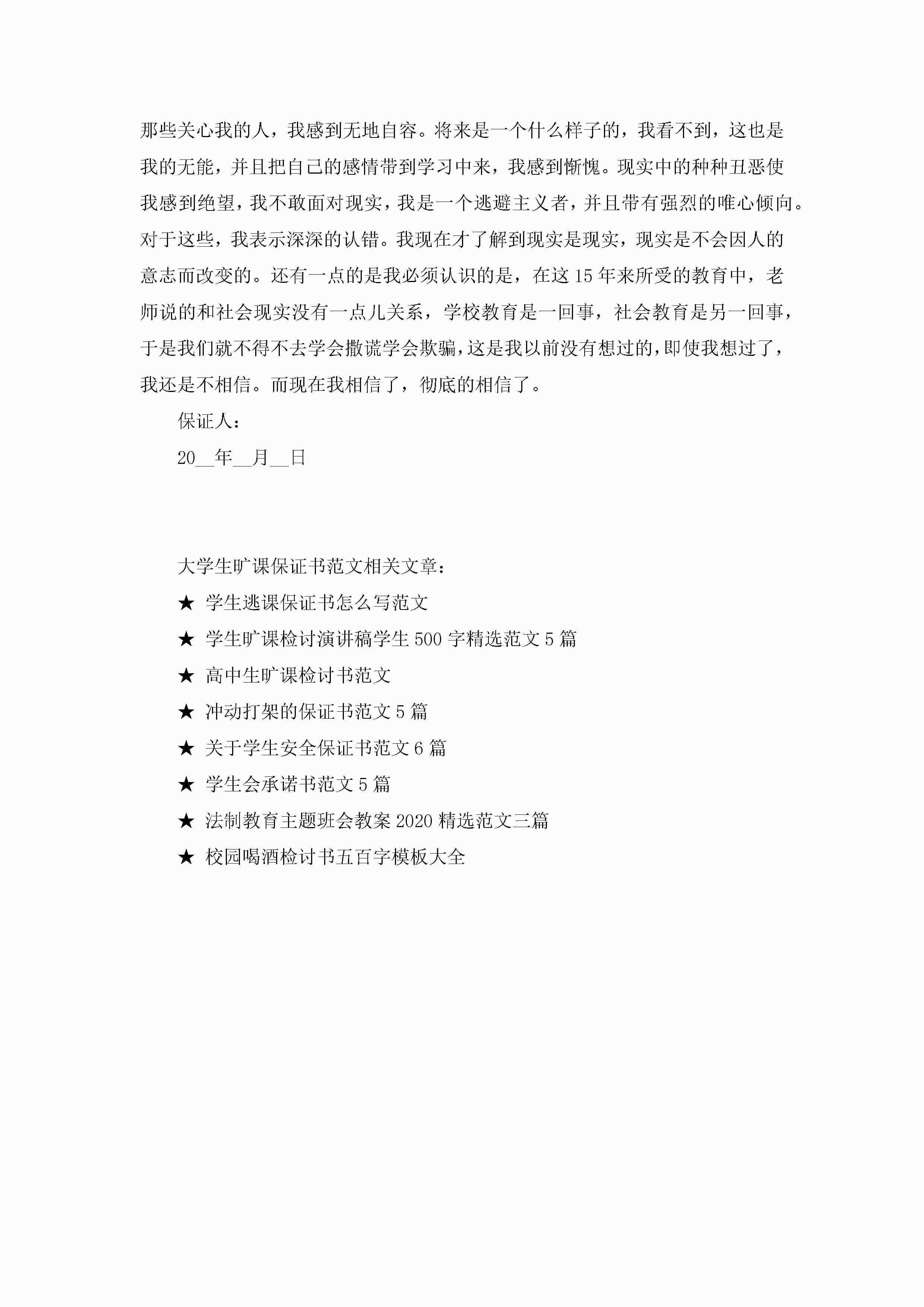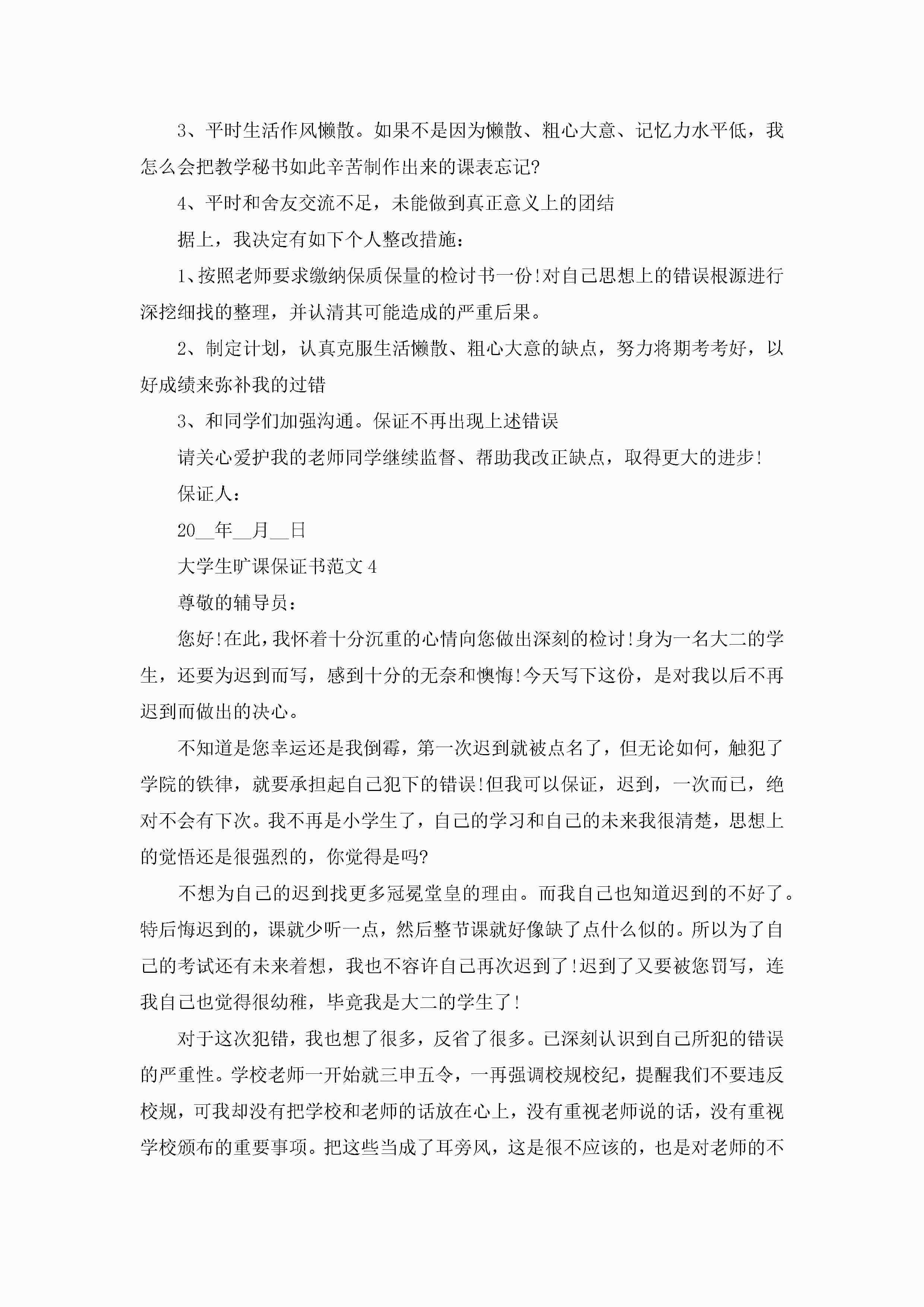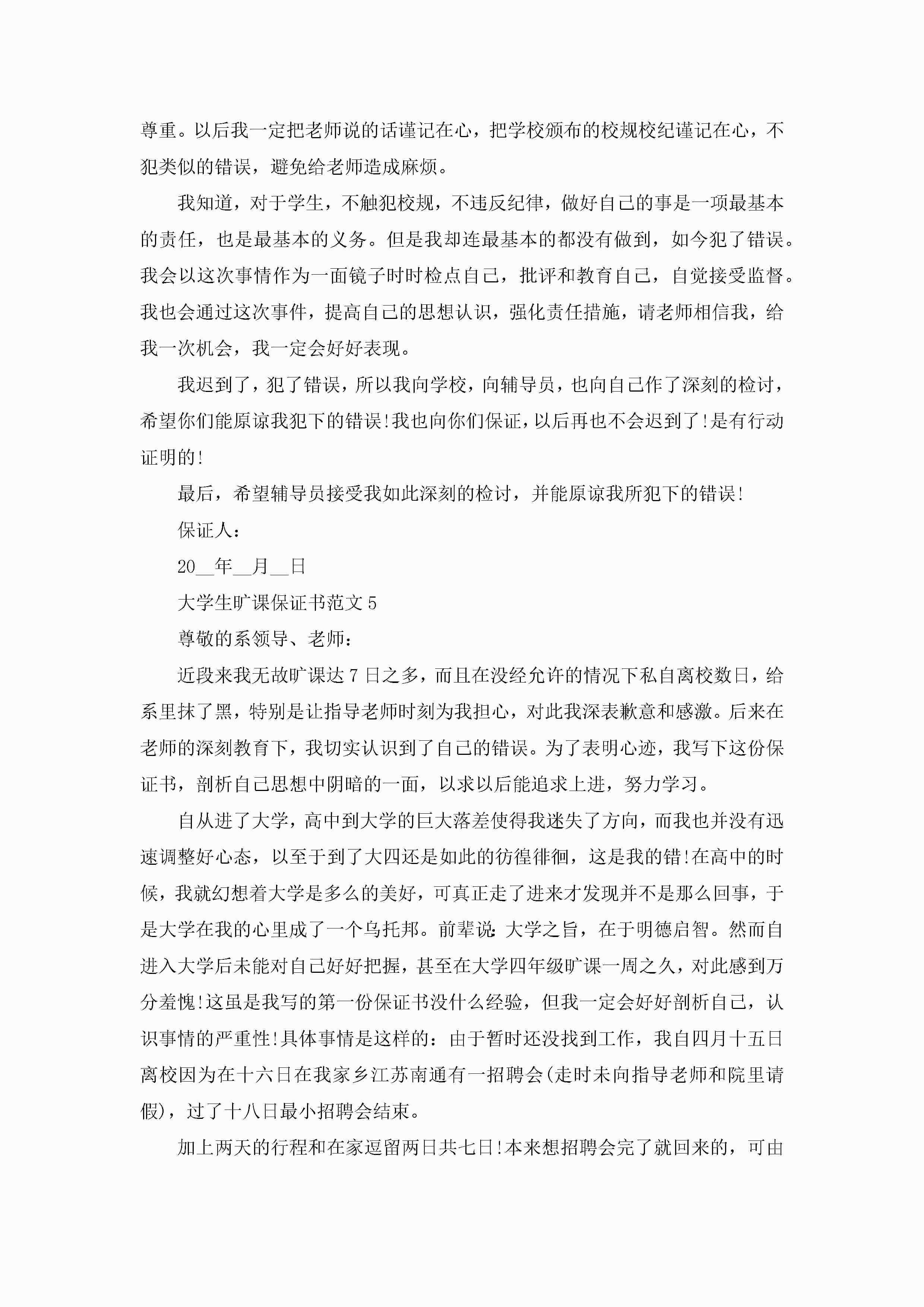 大学生旷课保证书范文5篇jugei3月22日 16:24发布关注205 大学生旷课保证书范文5篇此内容为付费资源,请付费后查看¥10.9 单篇文档限时特惠¥15个人会员开通企业会员开通立即下载无需登陆!可直接快捷下载单个模板付费资源© 版权声明THE ENDWord模板# 实用文档# 实用模板# 信函模板# 保证书 如有问题,可点击最底部“联系我们”联系客服 分享QQ空间微博QQ好友海报分享复制链接收藏