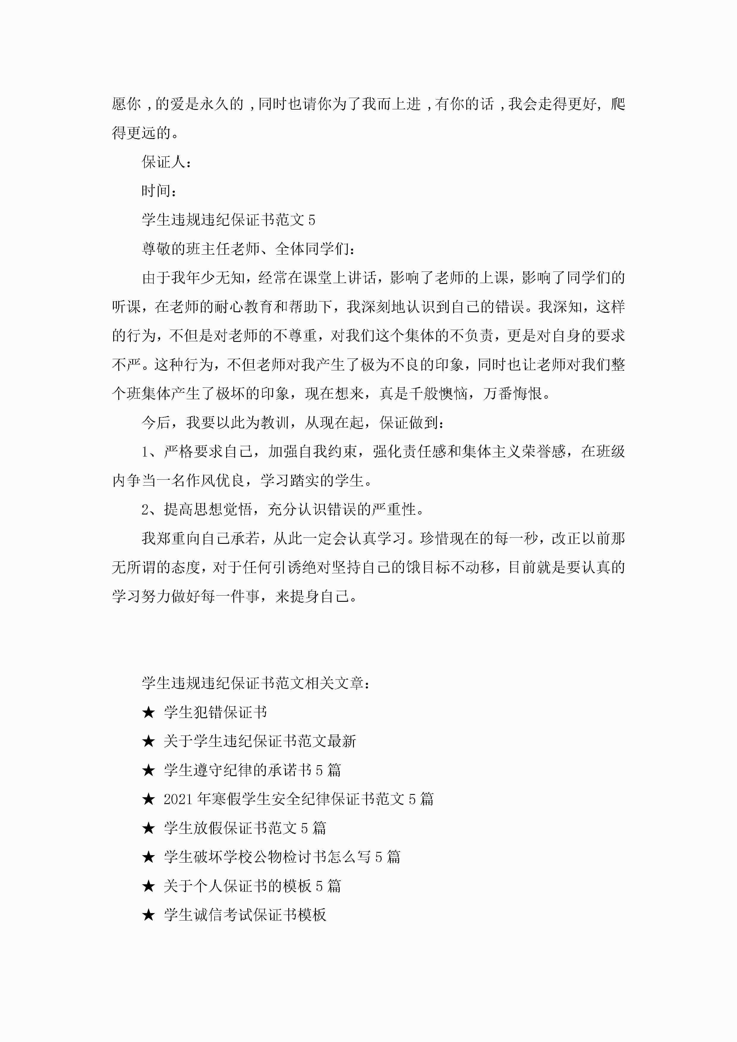 学生违规违纪保证书范文5篇jugei3月22日 16:24发布关注202 学生违规违纪保证书范文5篇此内容为付费资源,请付费后查看¥10.9 单篇文档限时特惠¥15个人会员开通企业会员开通立即下载无需登陆!可直接快捷下载单个模板付费资源© 版权声明THE ENDWord模板# 实用文档# 实用模板# 信函模板# 保证书 如有问题,可点击最底部“联系我们”联系客服 分享QQ空间微博QQ好友海报分享复制链接收藏