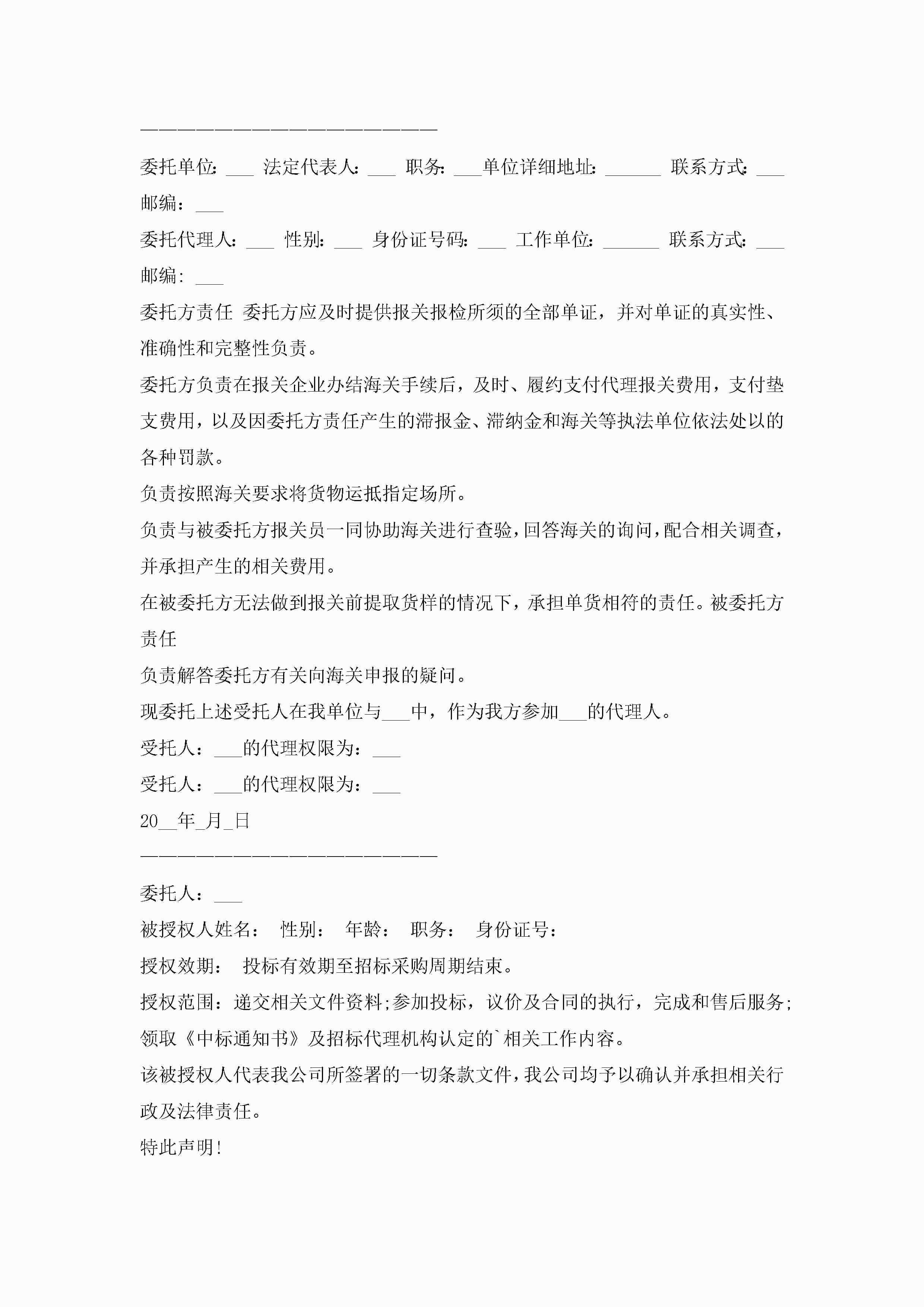 单位的授权委托书如何写模板jugei3月22日 16:24发布关注232 单位的授权委托书如何写模板此内容为付费资源,请付费后查看¥10.9 单篇文档限时特惠¥15个人会员开通企业会员开通立即下载无需登陆!可直接快捷下载单个模板付费资源© 版权声明THE ENDWord模板# 实用文档# 实用模板# 信函模板# 委托书 如有问题,可点击最底部“联系我们”联系客服 分享QQ空间微博QQ好友海报分享复制链接收藏
