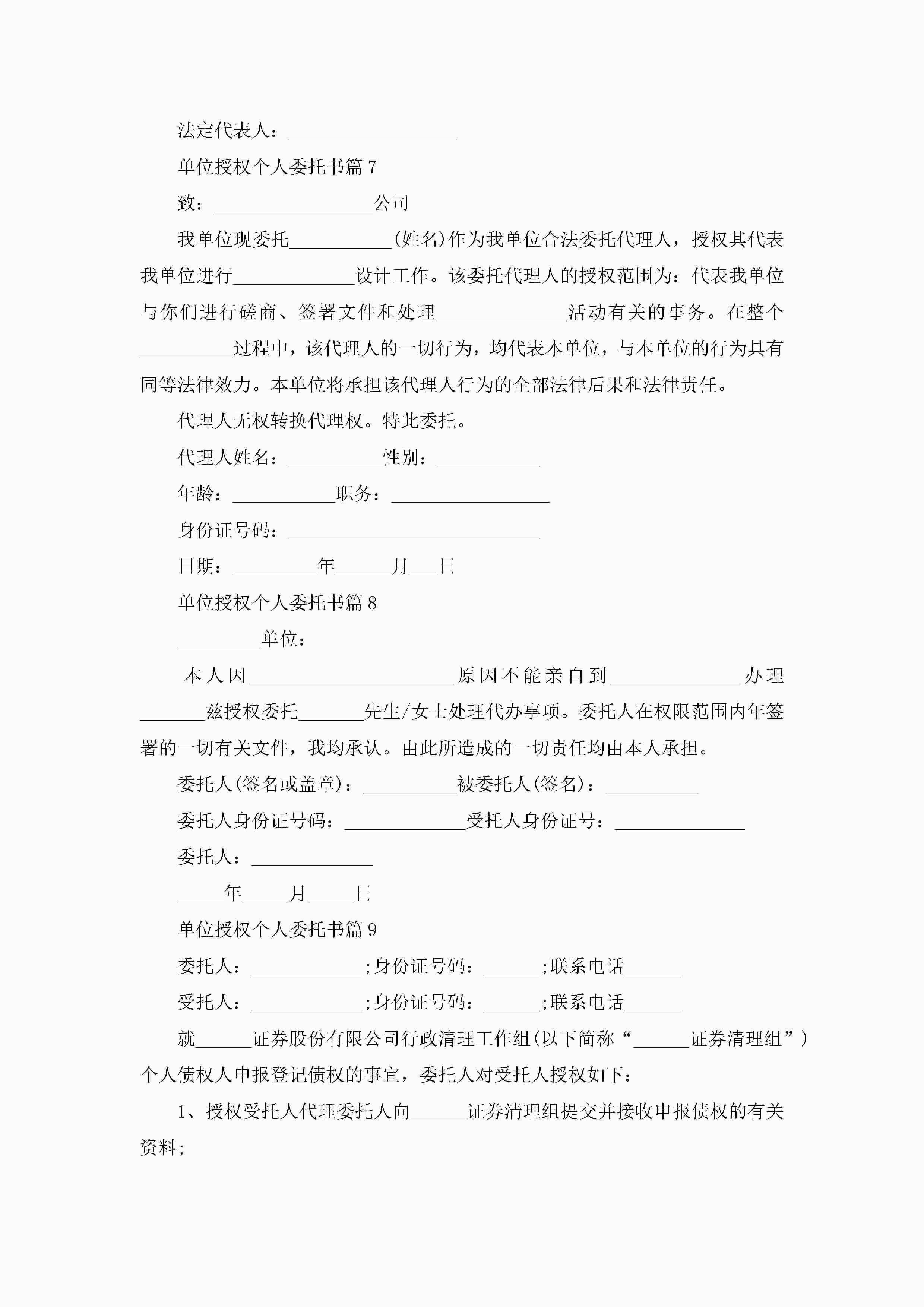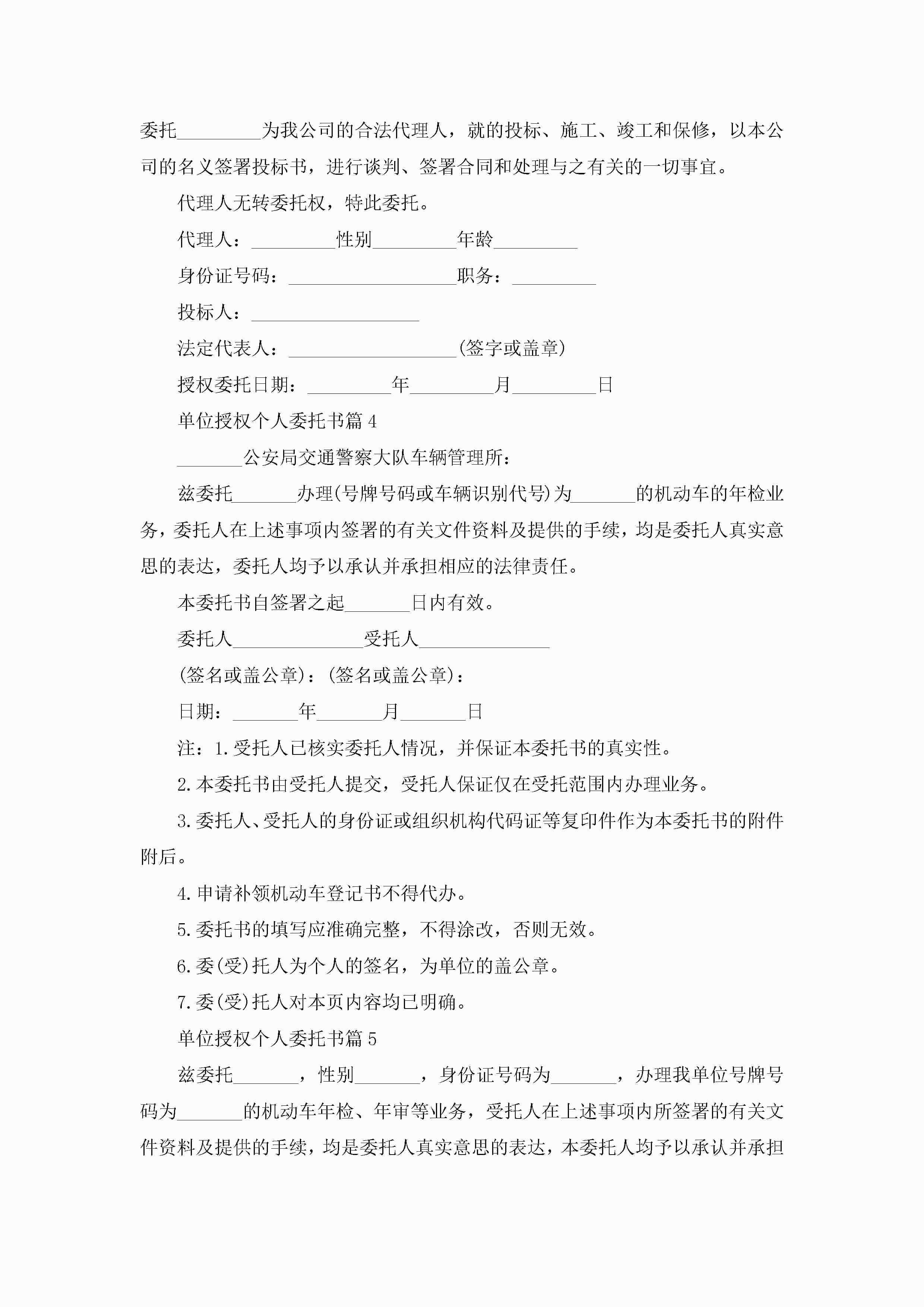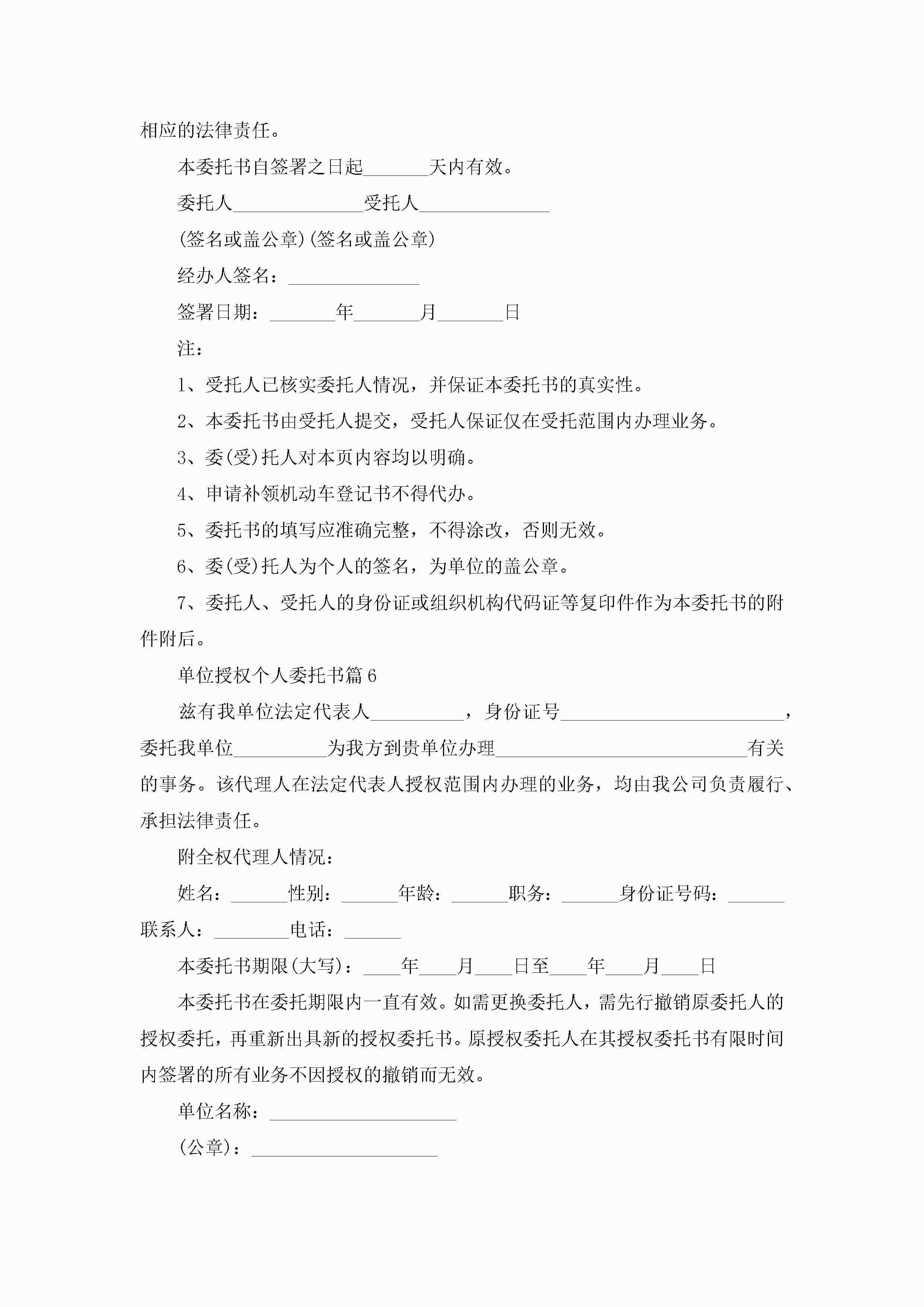 单位授权个人委托书范本10篇参考jugei3月22日 16:24发布关注288 单位授权个人委托书范本10篇参考此内容为付费资源,请付费后查看¥10.9 单篇文档限时特惠¥15个人会员开通企业会员开通立即下载无需登陆!可直接快捷下载单个模板付费资源© 版权声明THE ENDWord模板# 实用文档# 实用模板# 信函模板# 委托书 如有问题,可点击最底部“联系我们”联系客服 分享QQ空间微博QQ好友海报分享复制链接收藏