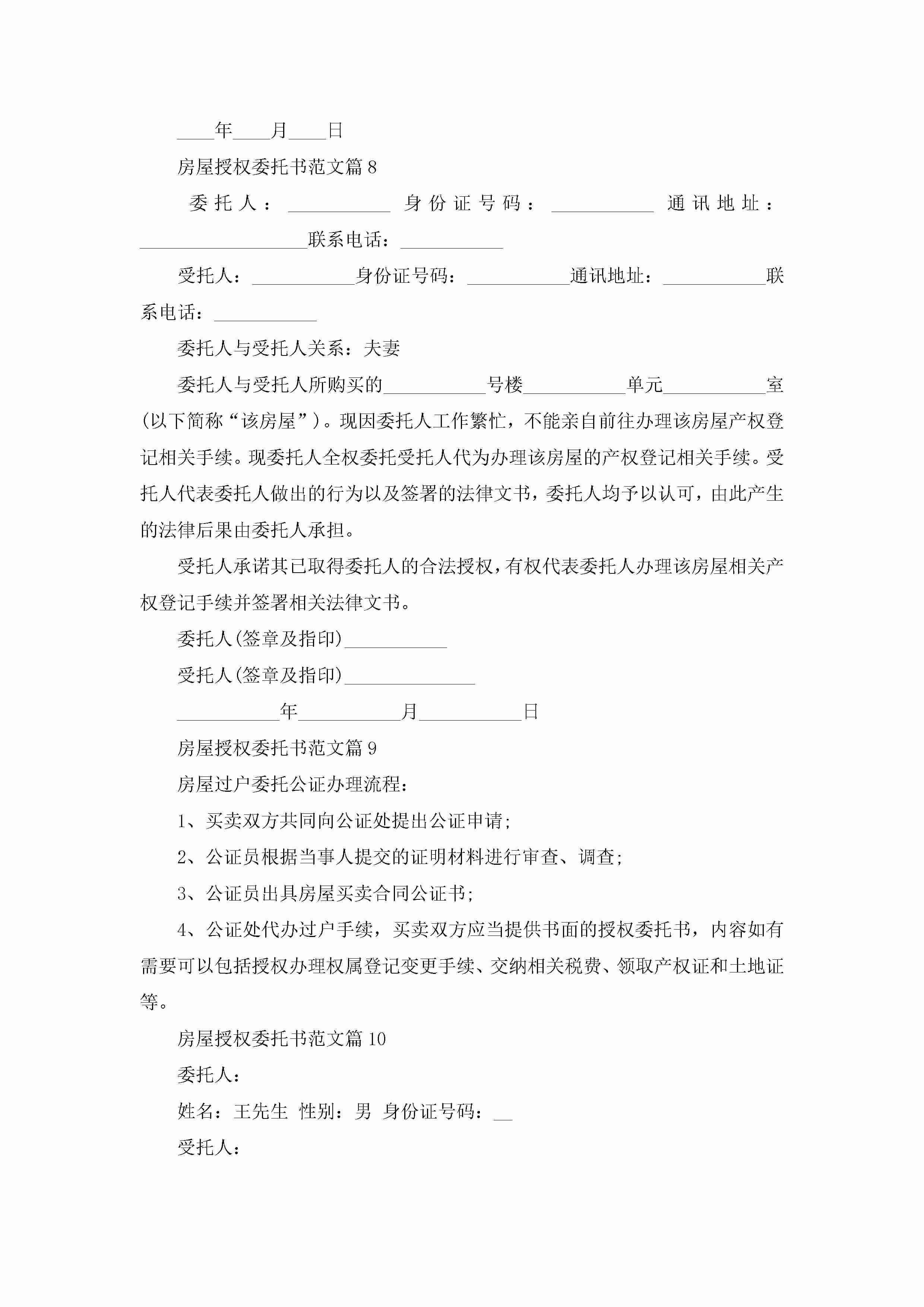房屋授权委托书范文10篇参考jugei3月22日 16:24发布关注247 房屋授权委托书范文10篇参考此内容为付费资源,请付费后查看¥10.9 单篇文档限时特惠¥15个人会员开通企业会员开通立即下载无需登陆!可直接快捷下载单个模板付费资源© 版权声明THE ENDWord模板# 实用文档# 实用模板# 信函模板# 委托书 如有问题,可点击最底部“联系我们”联系客服 分享QQ空间微博QQ好友海报分享复制链接收藏