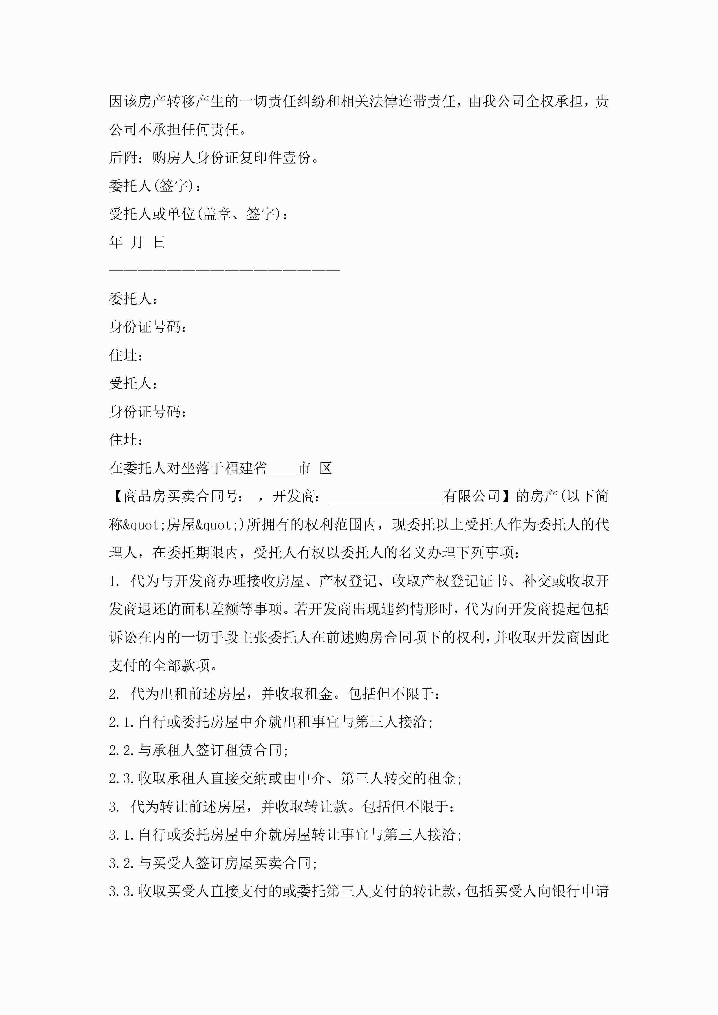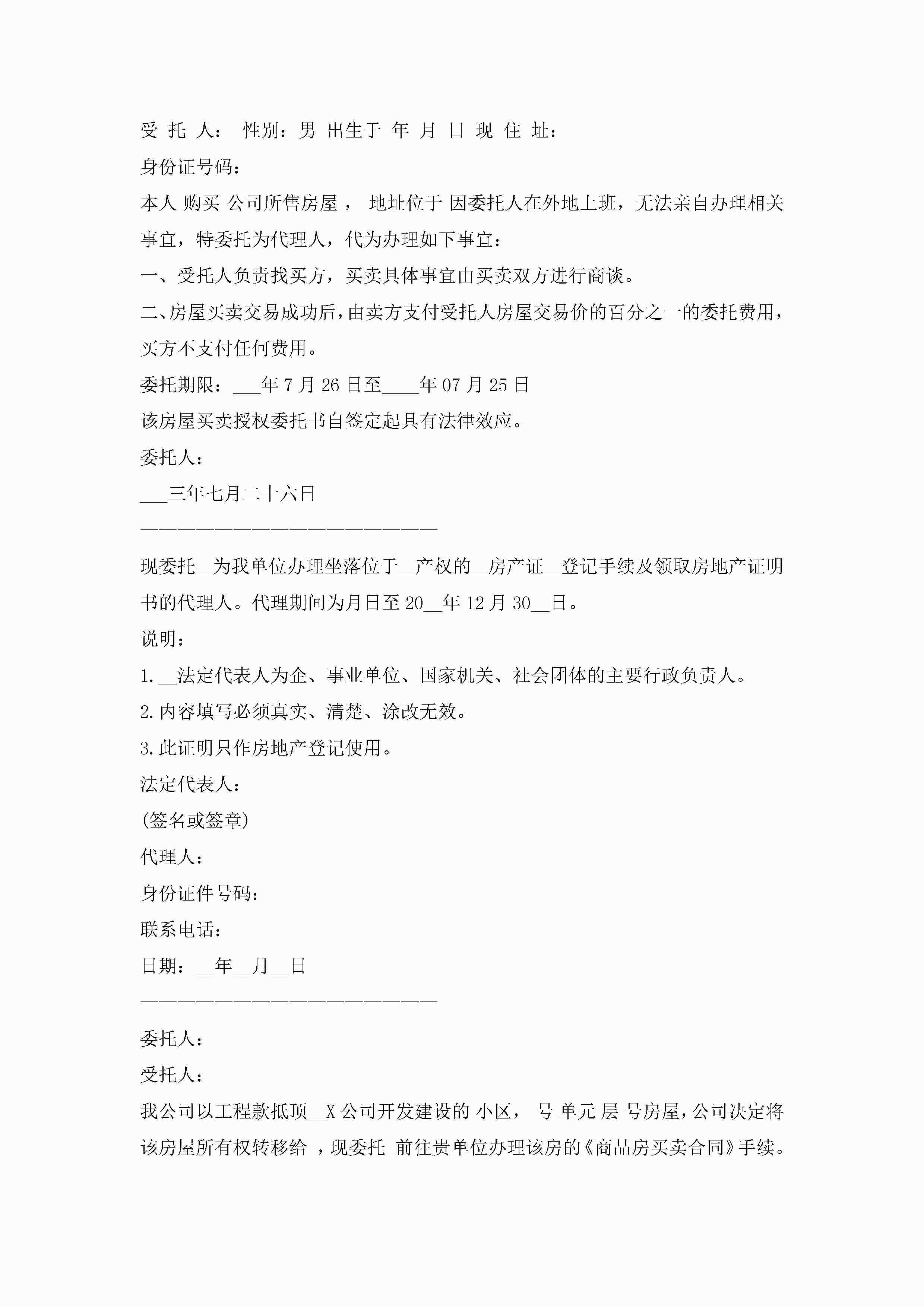 关于房屋授权委托书10篇jugei3月22日 16:24发布关注237 关于房屋授权委托书10篇此内容为付费资源,请付费后查看¥10.9 单篇文档限时特惠¥15个人会员开通企业会员开通立即下载无需登陆!可直接快捷下载单个模板付费资源© 版权声明THE ENDWord模板# 实用文档# 实用模板# 信函模板# 委托书 如有问题,可点击最底部“联系我们”联系客服 分享QQ空间微博QQ好友海报分享复制链接收藏