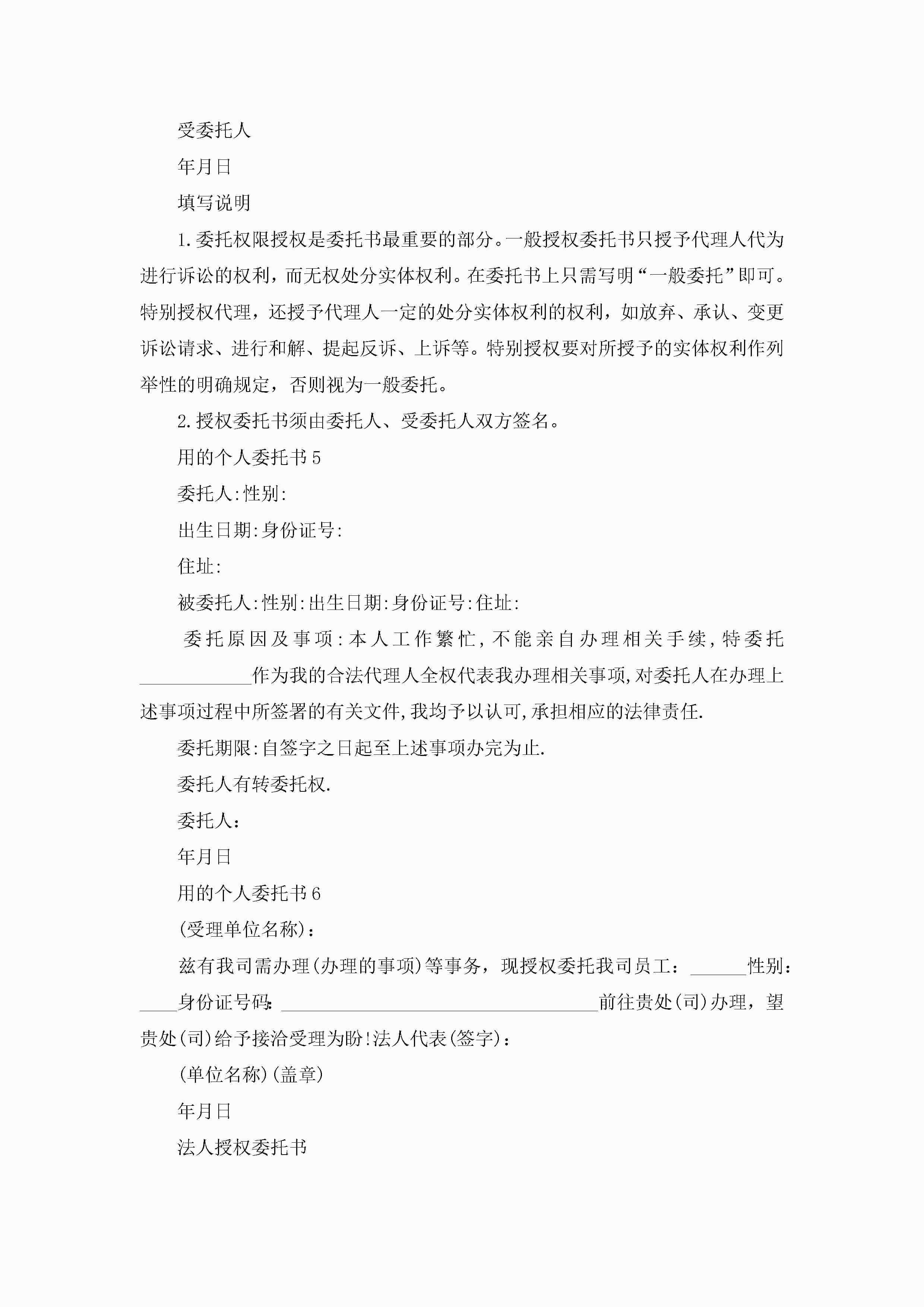 通用的个人委托书范文6篇jugei3月22日 16:24发布关注224 通用的个人委托书范文6篇此内容为付费资源,请付费后查看¥10.9 单篇文档限时特惠¥15个人会员开通企业会员开通立即下载无需登陆!可直接快捷下载单个模板付费资源© 版权声明THE ENDWord模板# 实用文档# 实用模板# 信函模板# 委托书 如有问题,可点击最底部“联系我们”联系客服 分享QQ空间微博QQ好友海报分享复制链接收藏