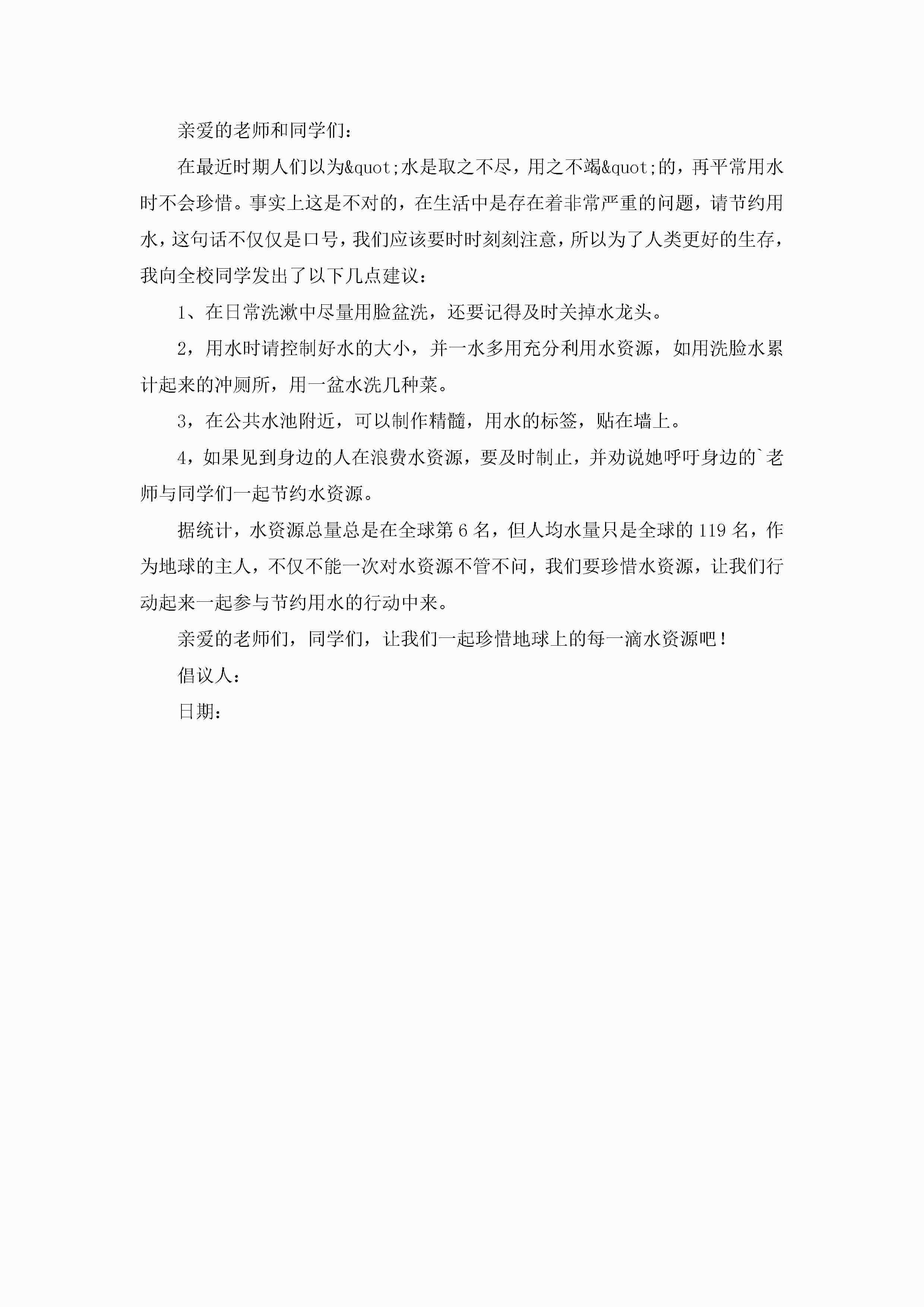 节约用水人人有责倡议书5篇jugei3月22日 16:24发布关注191 节约用水人人有责倡议书5篇此内容为付费资源,请付费后查看¥10.9 单篇文档限时特惠¥15个人会员开通企业会员开通立即下载无需登陆!可直接快捷下载单个模板付费资源© 版权声明THE ENDWord模板# 实用文档# 信函模板# 倡议书# 节约用水人人有责倡议书 如有问题,可点击最底部“联系我们”联系客服 分享QQ空间微博QQ好友海报分享复制链接收藏