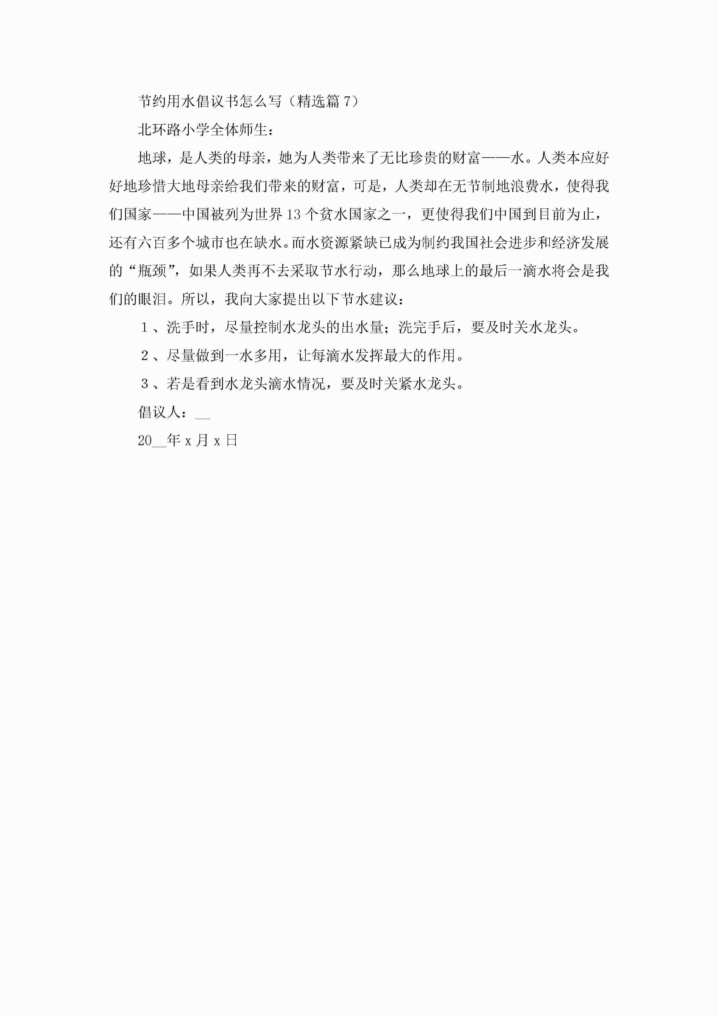 节约用水倡议书怎么写7篇jugei3月22日 16:24发布关注218 节约用水倡议书怎么写7篇此内容为付费资源,请付费后查看¥10.9 单篇文档限时特惠¥15个人会员开通企业会员开通立即下载无需登陆!可直接快捷下载单个模板付费资源© 版权声明THE ENDWord模板# 实用文档# 信函模板# 倡议书# 节约用水倡议书怎么写 如有问题,可点击最底部“联系我们”联系客服 分享QQ空间微博QQ好友海报分享复制链接收藏